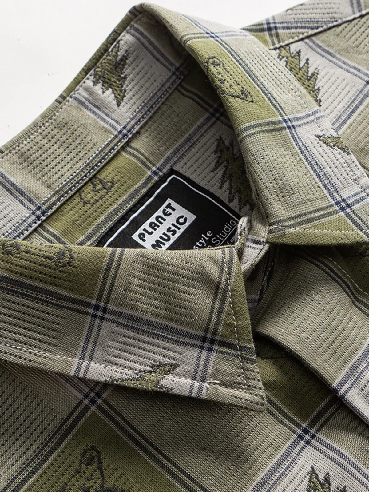 このヴィンテージ風チェック柄花柄シャツは、カジュアルでありながら個性が光るデザインです。100%コットンの生地を使用しており、洗い加工を施すことで、柔らかく快適な着心地を提供します。独自のチェック柄と花柄が組み合わさったデザインが、シンプルでありながら存在感を放ちます。リラックス感のあるゆったりとしたフィット感と五分袖デザインが、カジュアルな日常スタイルに最適です。男女兼用で着用可能で、春夏のカジュアルスタイルにぴったりの一枚です。