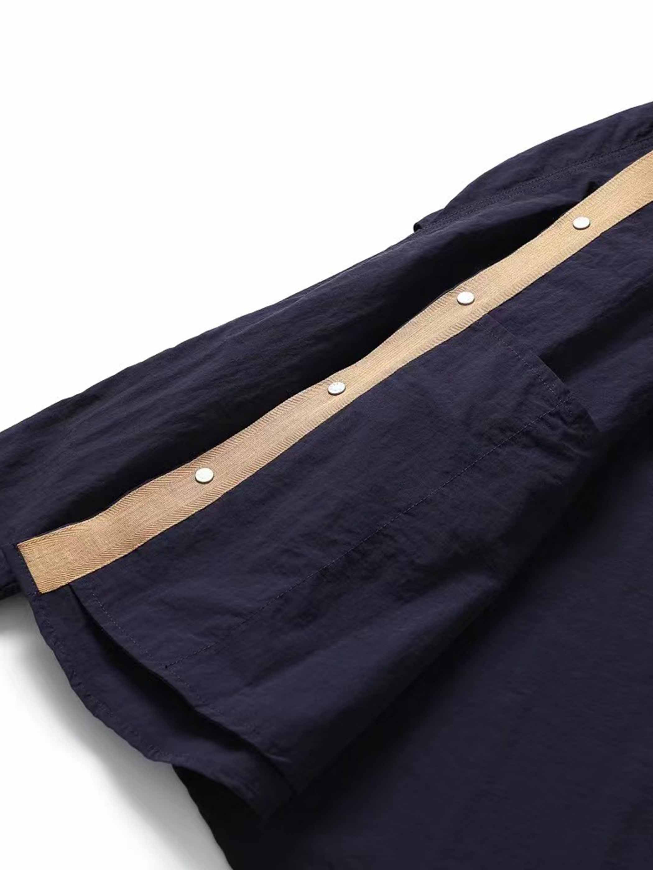 このシャツは、第二次世界大戦後のアメリカンワークウェア文化に着想を得たデザインを体現。防撥水・速乾性に優れる100%ポリエステル素材を使用し、しわになりにくく常にドライな着心地を提供します。落ち感のあるオーバーサイズの落肩カットと、多機能ポケットが収納力と視覚的なアクセントを加え、実用性と洗練されたデザインを両立。シンプルながらも都会的なスタイルを楽しめる一着で、通勤やアウトドア、日常のカジュアルなシーンに最適です。