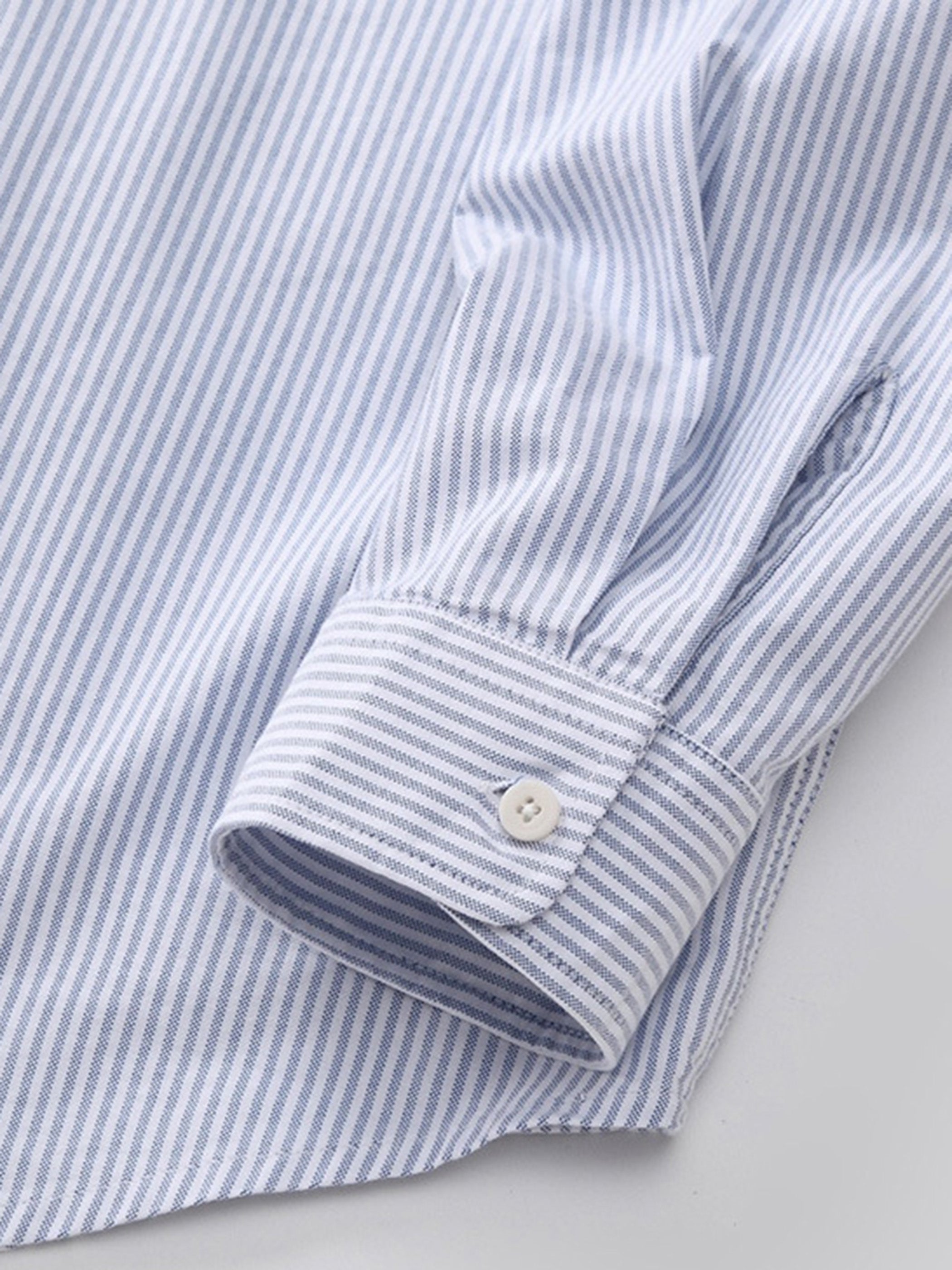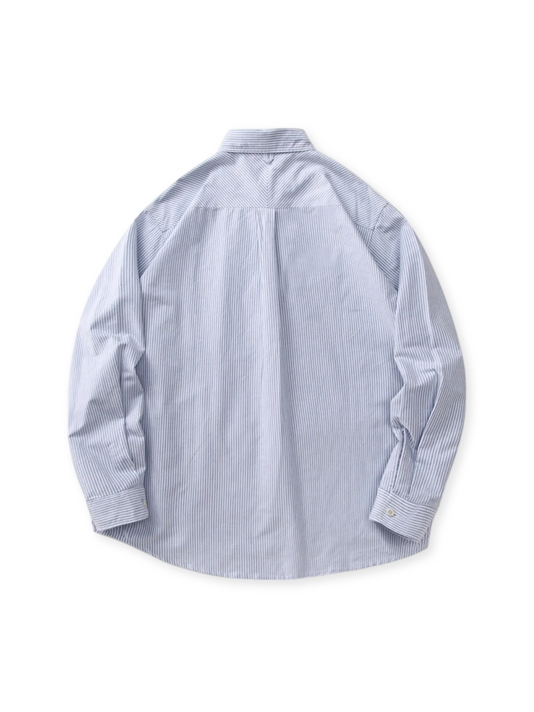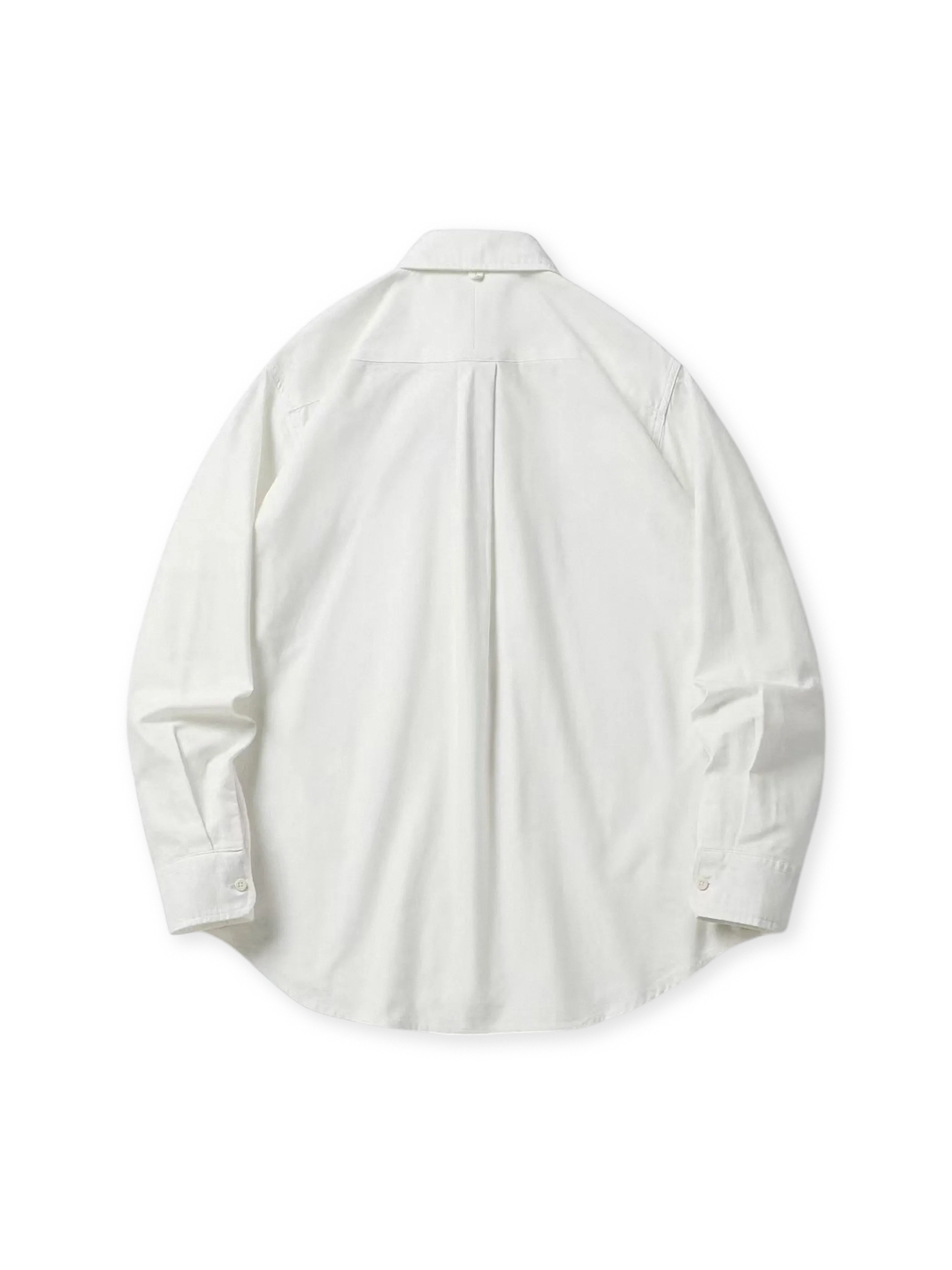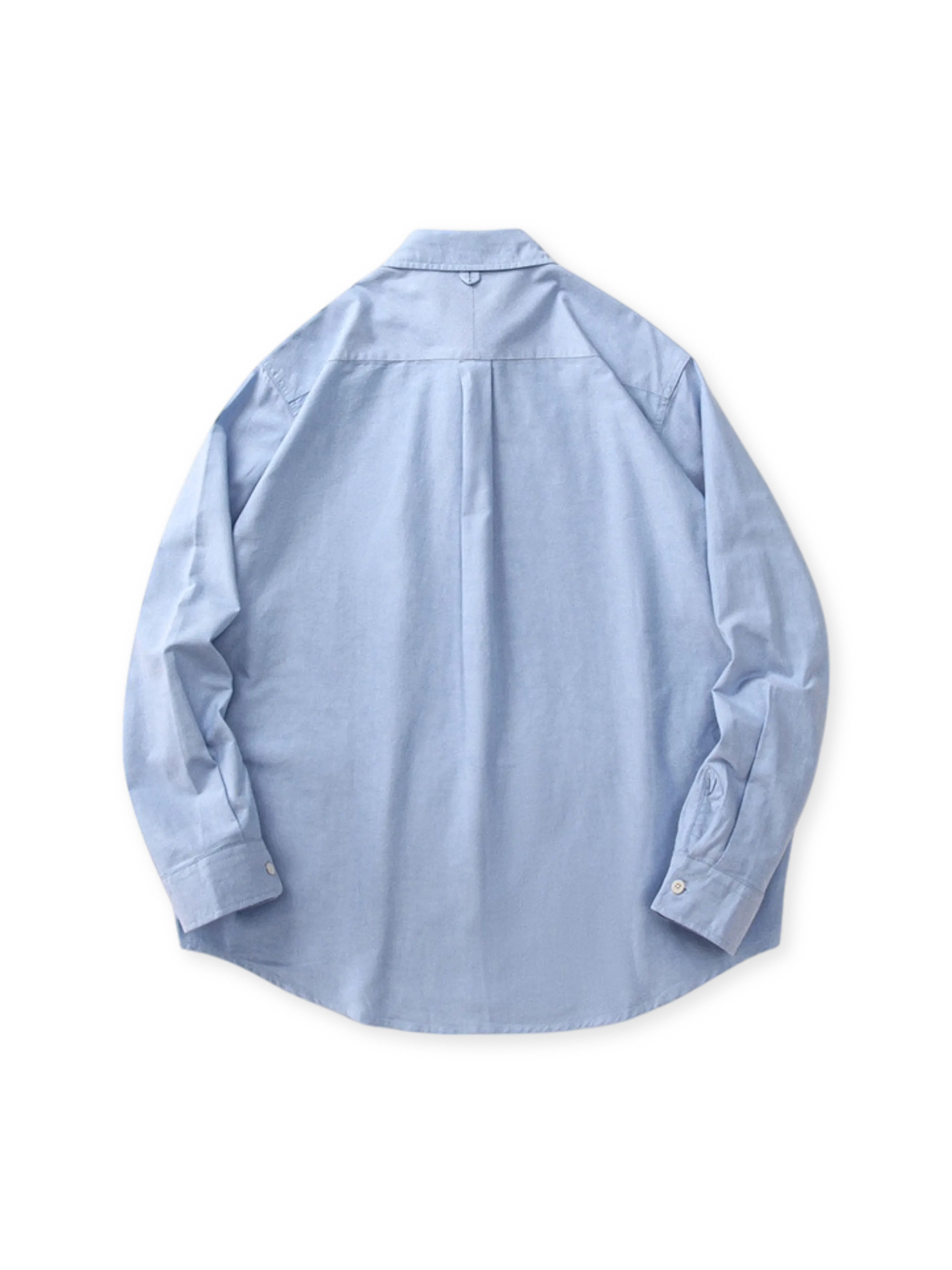 このシャツは、100%コットンのオックスフォード生地を使用し、ウォッシュ加工により柔らかさと適度なハリ感を両立させています。前立てにはシンプルなパールボタンがあしらわれ、さりげない高級感を演出。左胸ポケット脇に配されたパープルタグが、控えめながらもデザインにアクセントを与え、洗練された印象をプラスします。肩を落としたルーズなパターンとラウンド裾が、男女問わずゆったりとした着心地を実現し、通勤やカジュアルなシーン、さらにはストリートファッションにも合わせやすい万能な一着です。