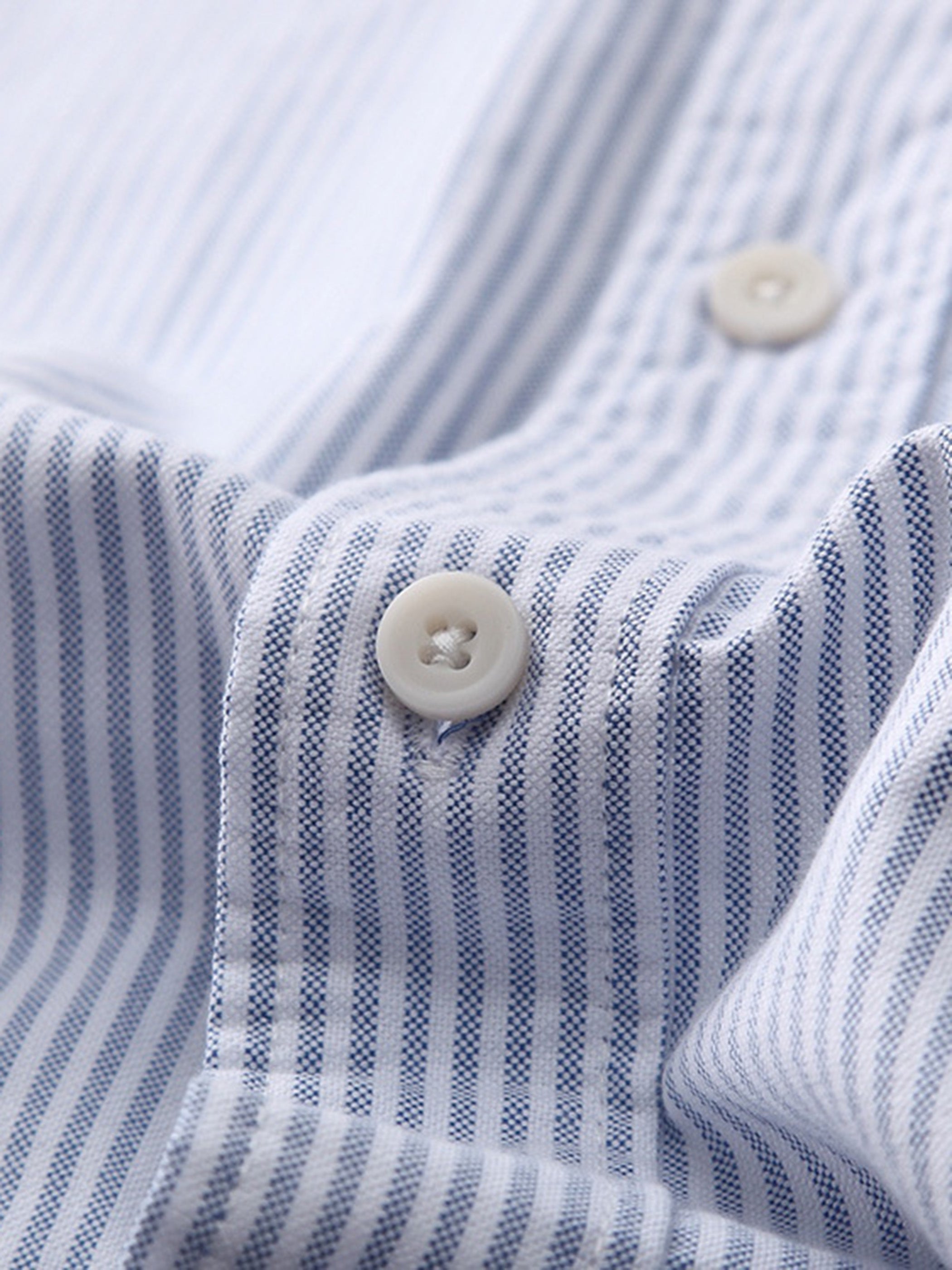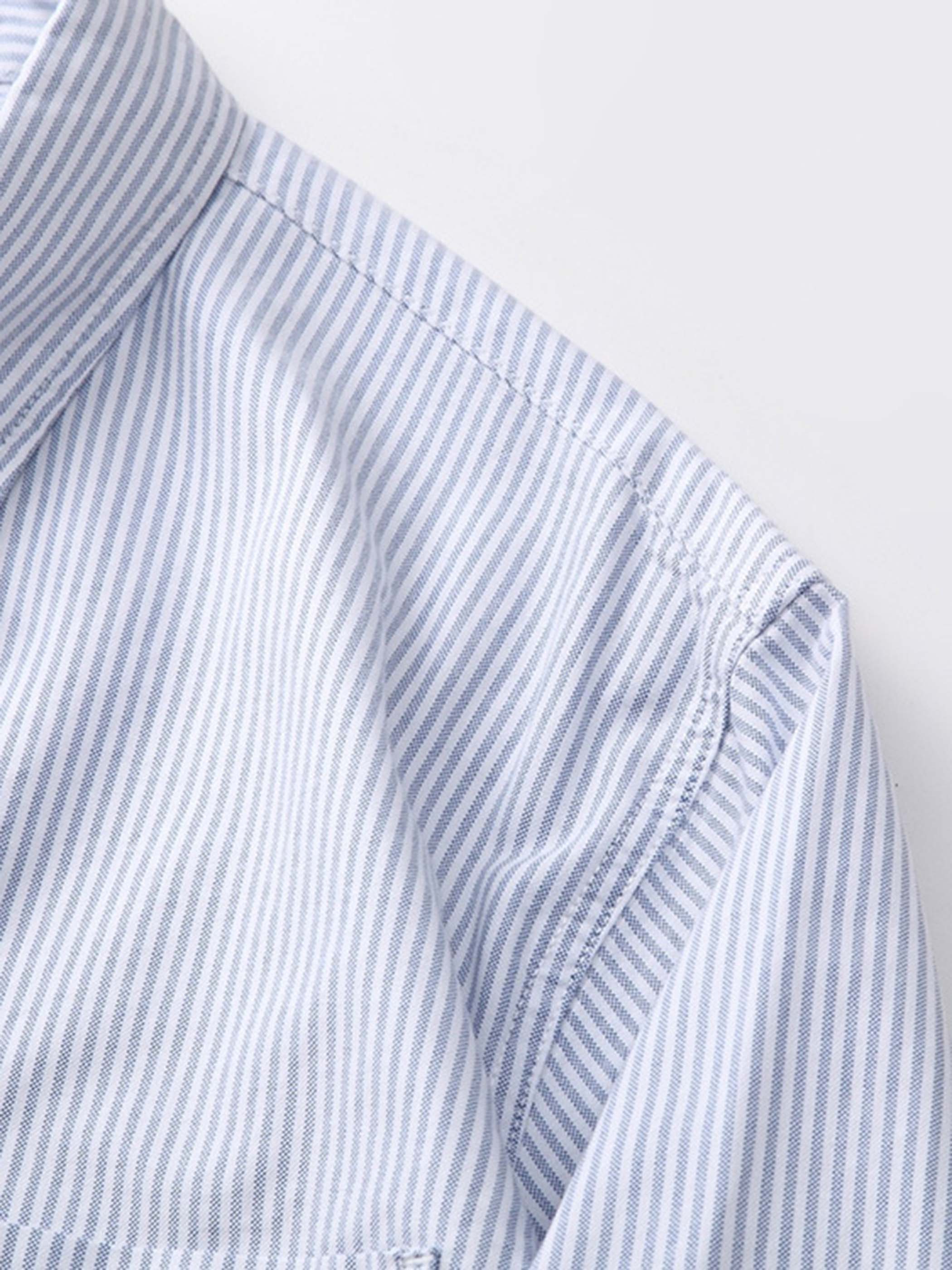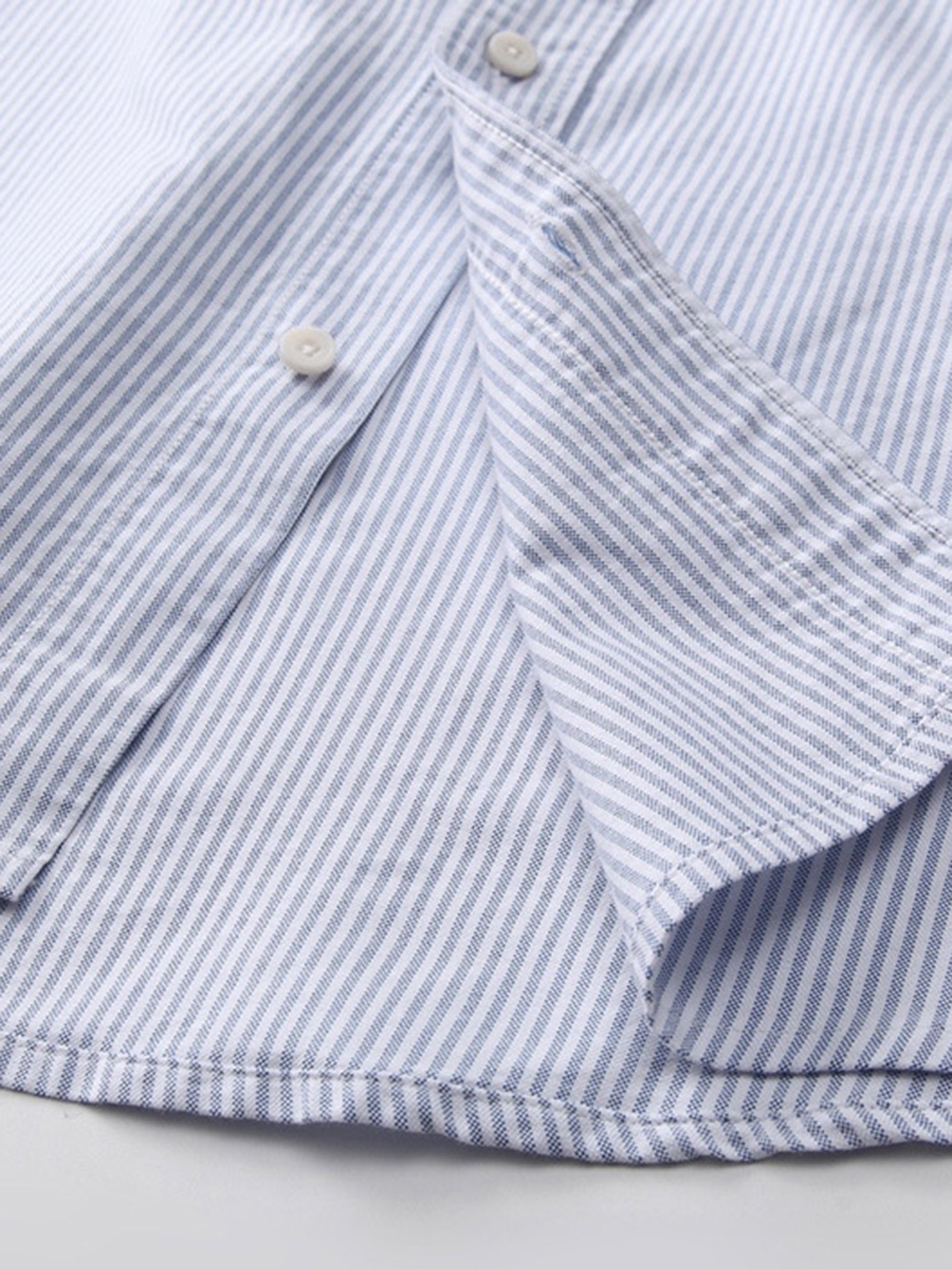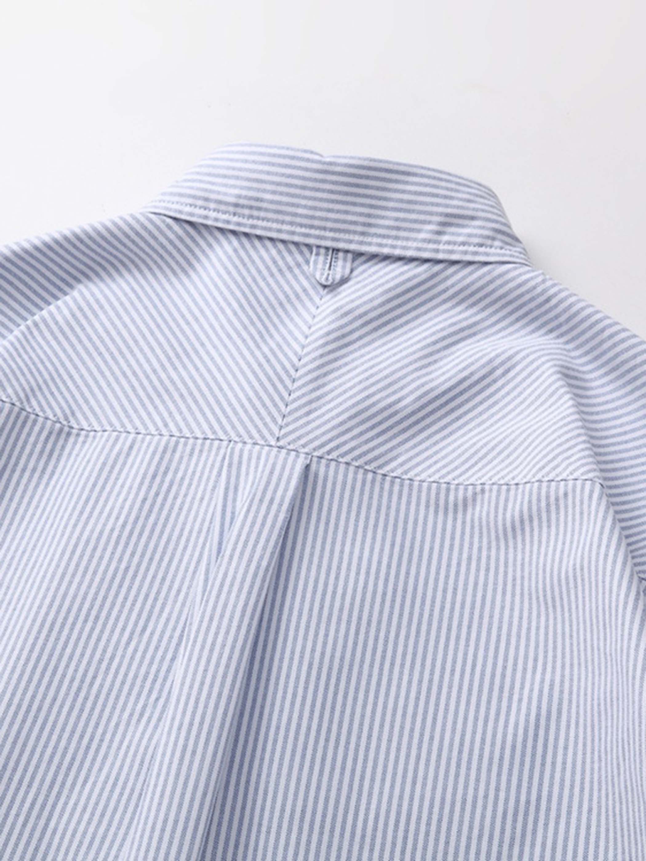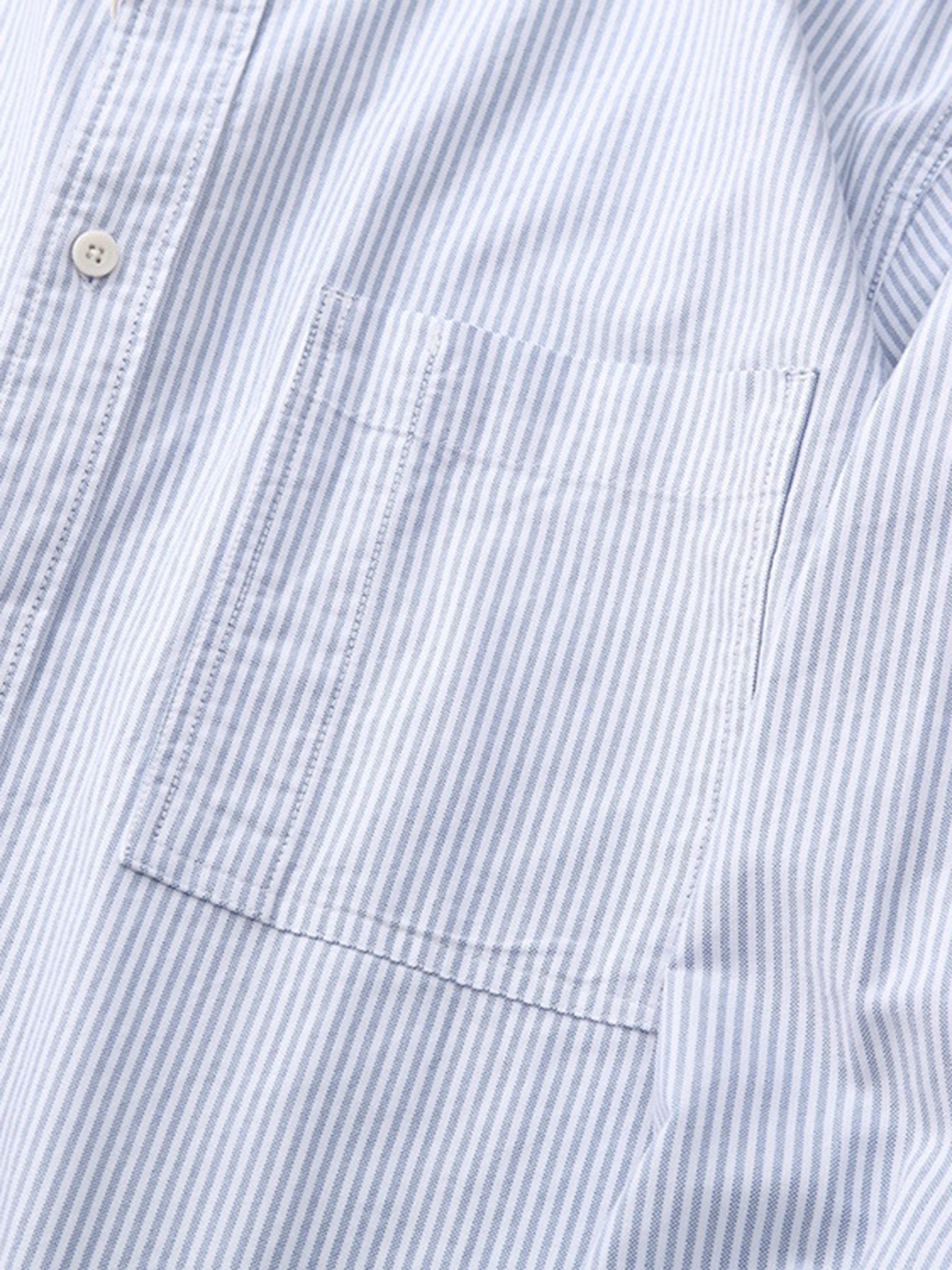 このシャツは、100%コットンのオックスフォード生地を使用し、ウォッシュ加工により柔らかさと適度なハリ感を両立させています。前立てにはシンプルなパールボタンがあしらわれ、さりげない高級感を演出。左胸ポケット脇に配されたパープルタグが、控えめながらもデザインにアクセントを与え、洗練された印象をプラスします。肩を落としたルーズなパターンとラウンド裾が、男女問わずゆったりとした着心地を実現し、通勤やカジュアルなシーン、さらにはストリートファッションにも合わせやすい万能な一着です。