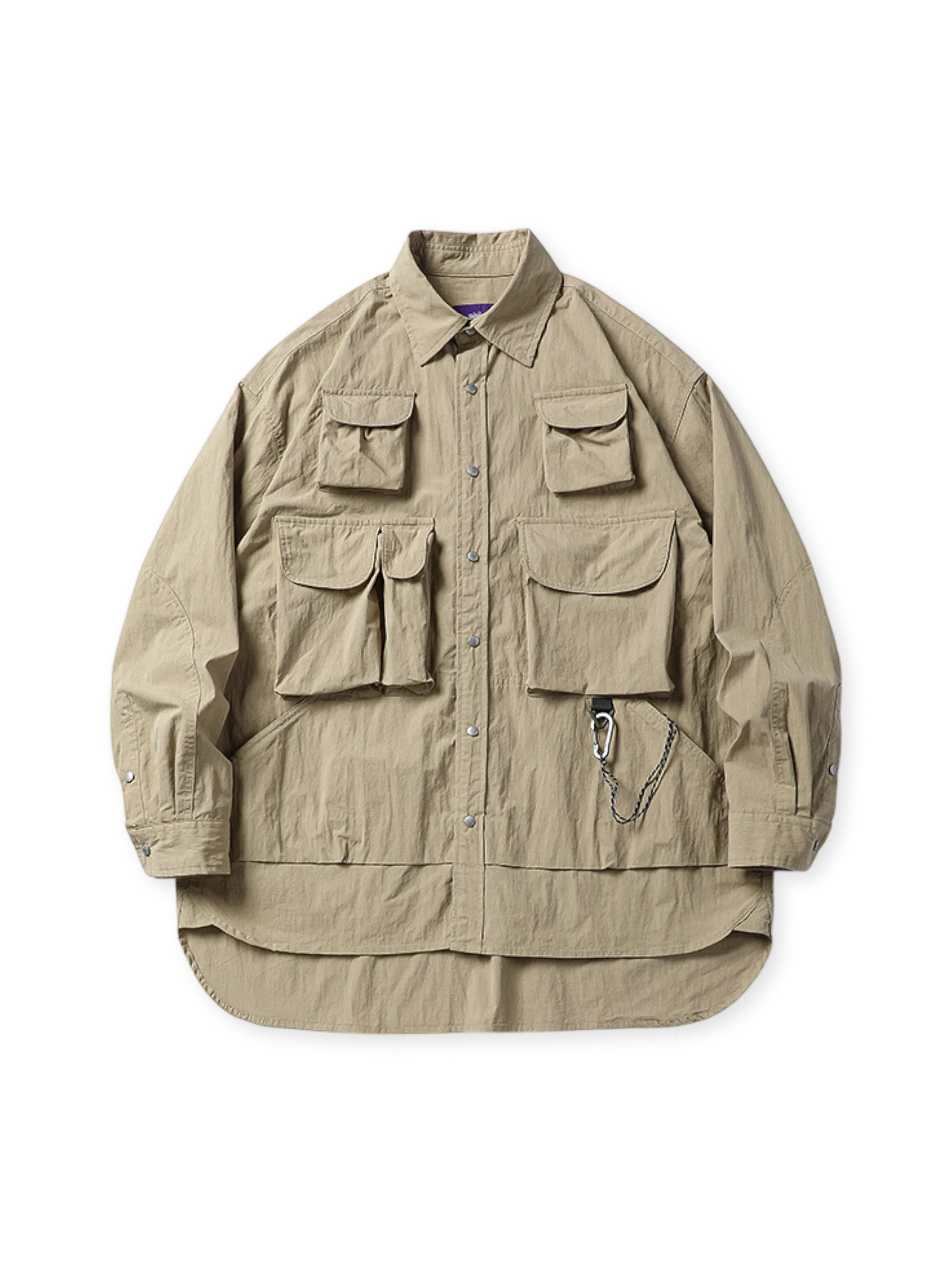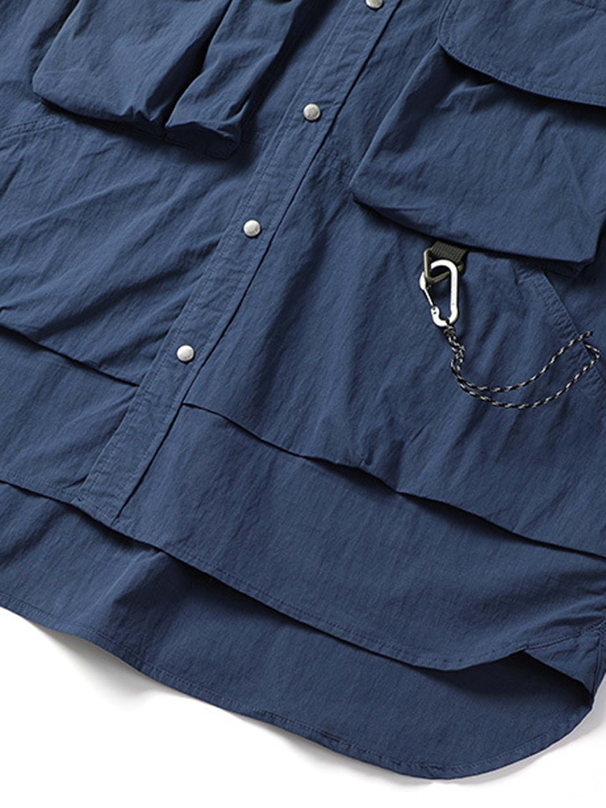 立体的なパターンメイキングと丁寧な縫製が融合した、ゆったりルーズシルエットのマルチポケットワークシャツ。アウトドア機能と日本ストリート風のリラックス感を両立します。