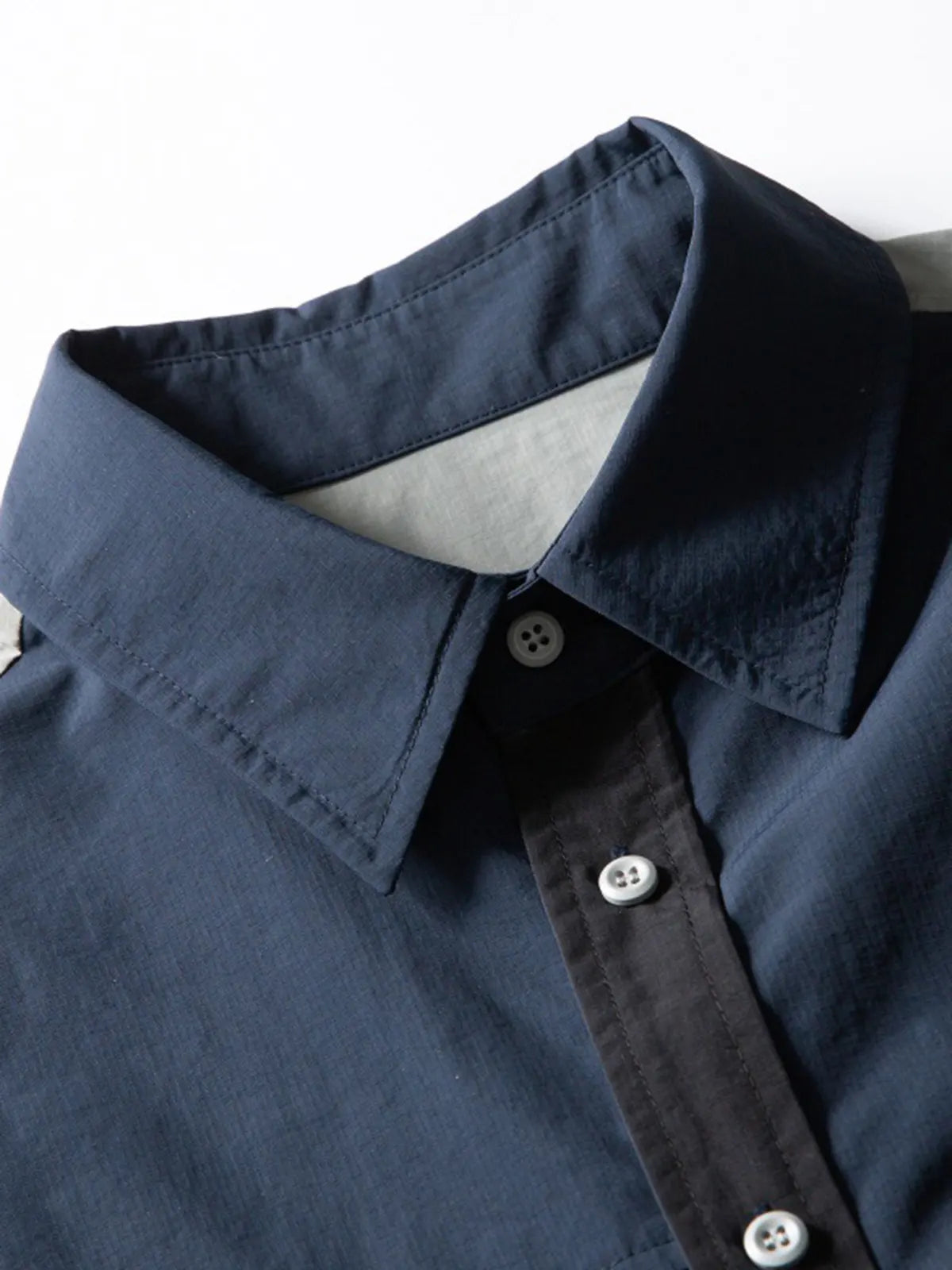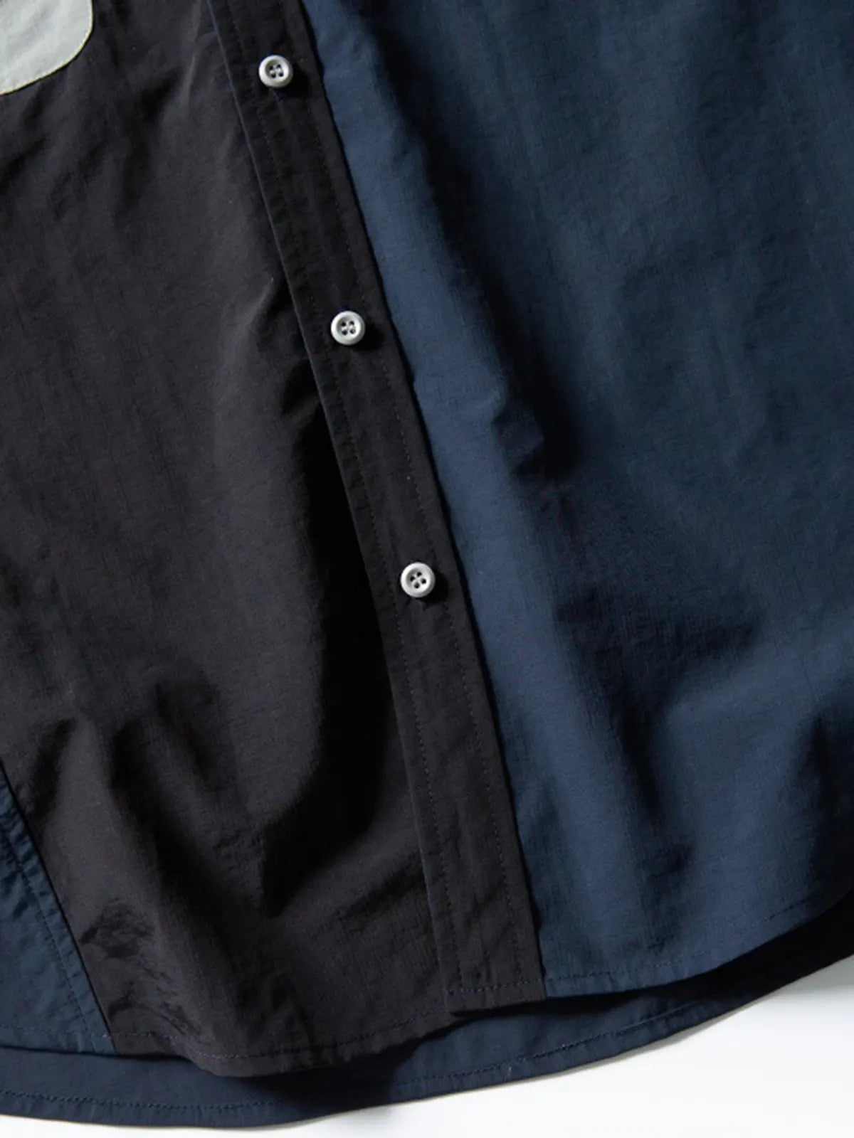 ミリタリーのユーティリティシャツを源流に、異素材カラーを大胆に切り替えたボディと計4つのフラップ付きポケットで実用性を確保。肩のエポレット風切り替えがワークウェアらしさを強調し、ライトウェイトナイロンが軽快な着心地と耐久性を両立。デニムやカーゴパンツと合わせれば、ワークテイストにモダンなアクセントを加えたスタイリングが完成。