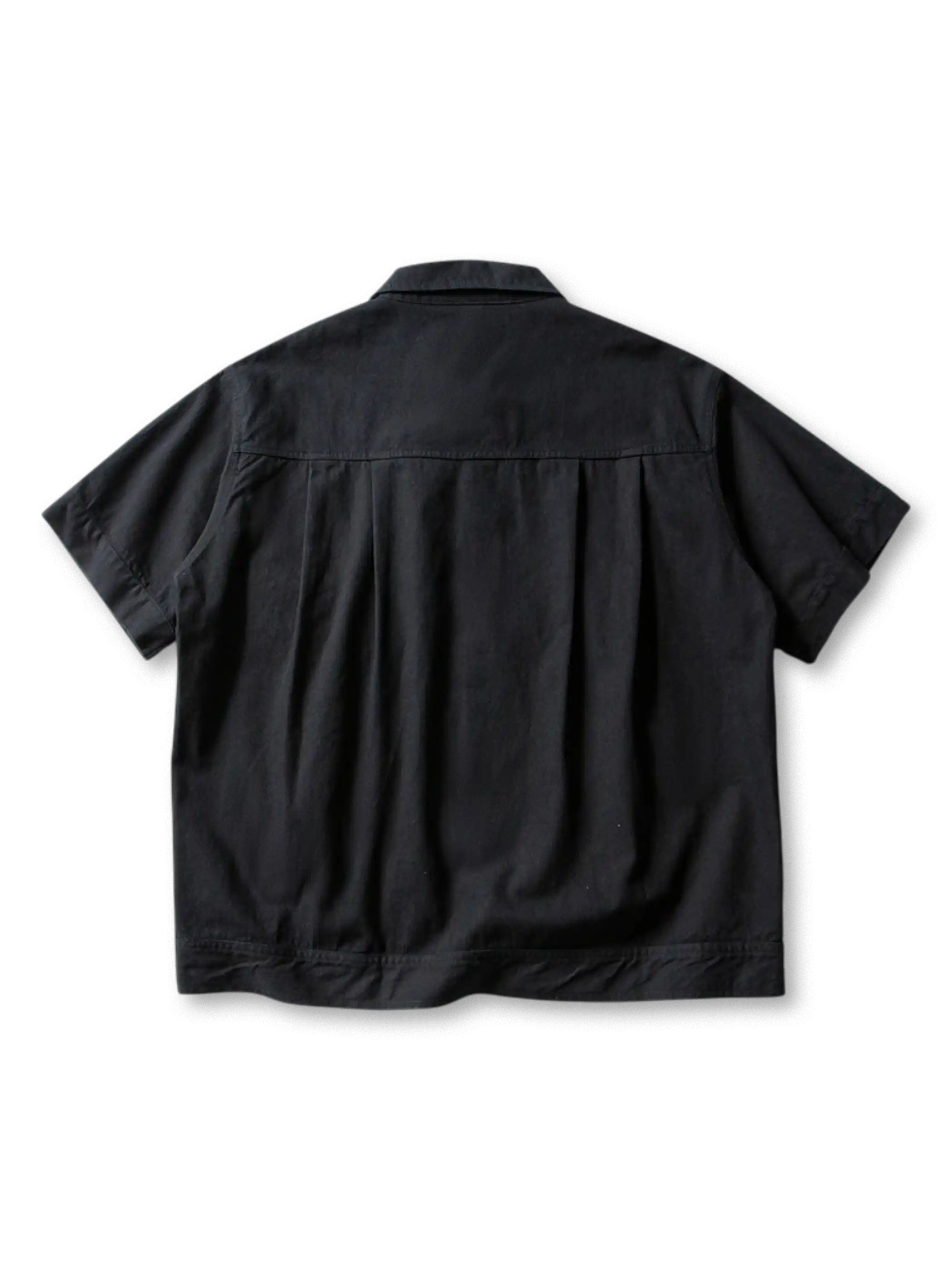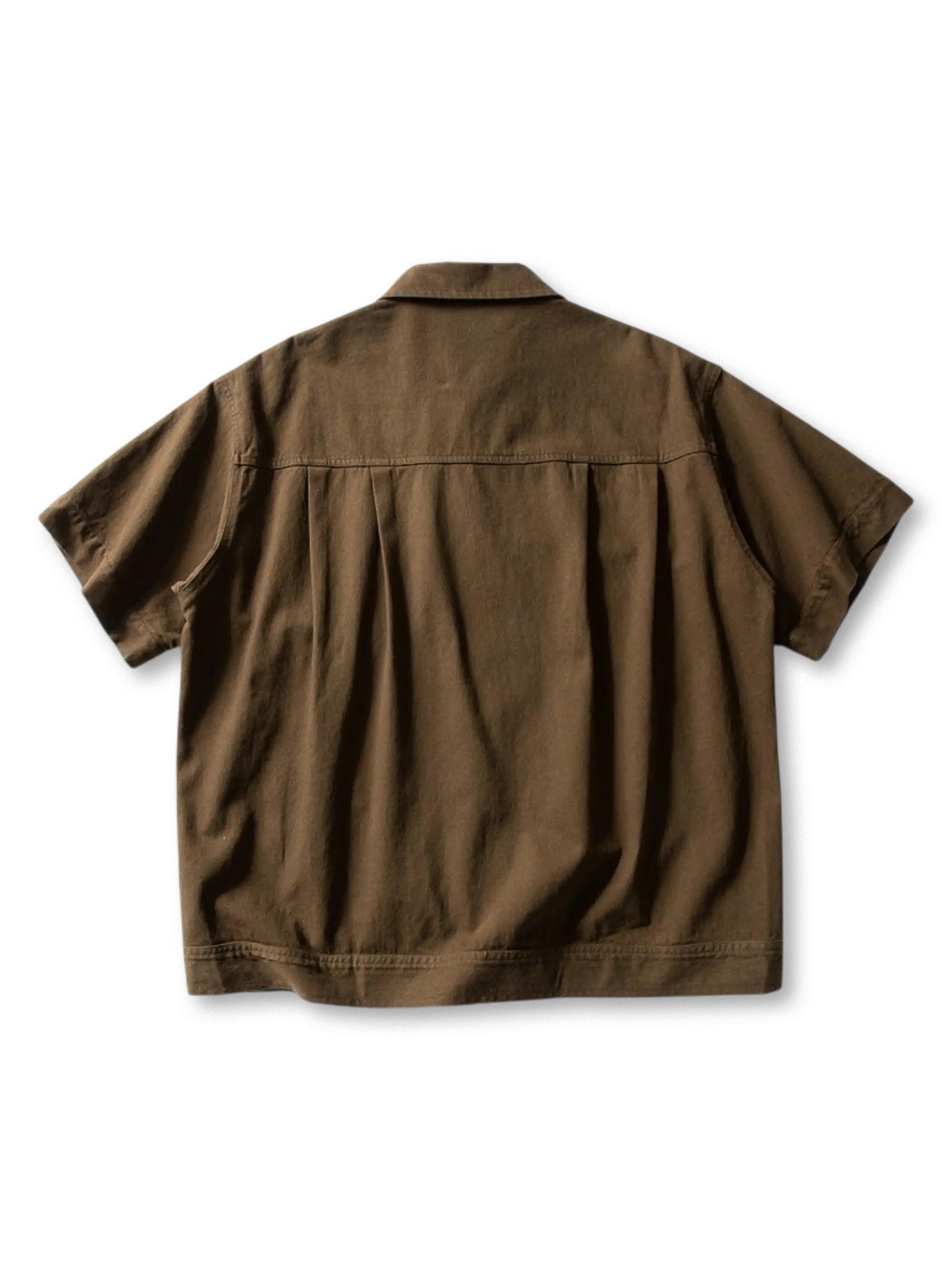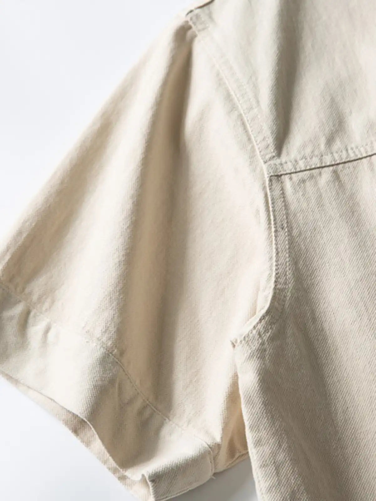 大ぶりポケットとゆったりシルエットが武骨さを醸す、100%コットン製のショートスリーブ工装シャツ。