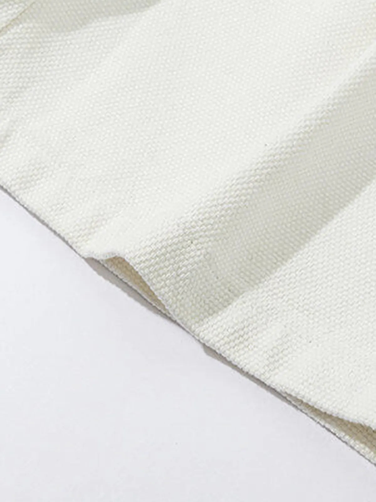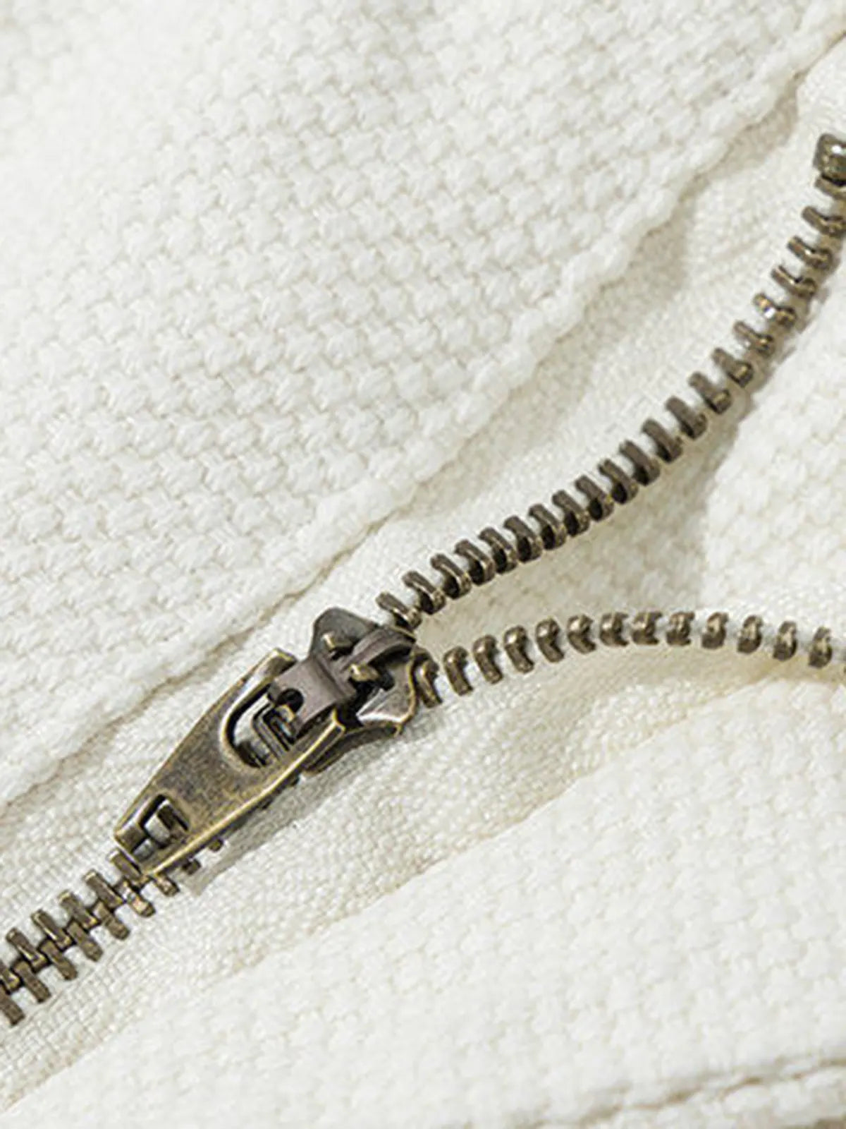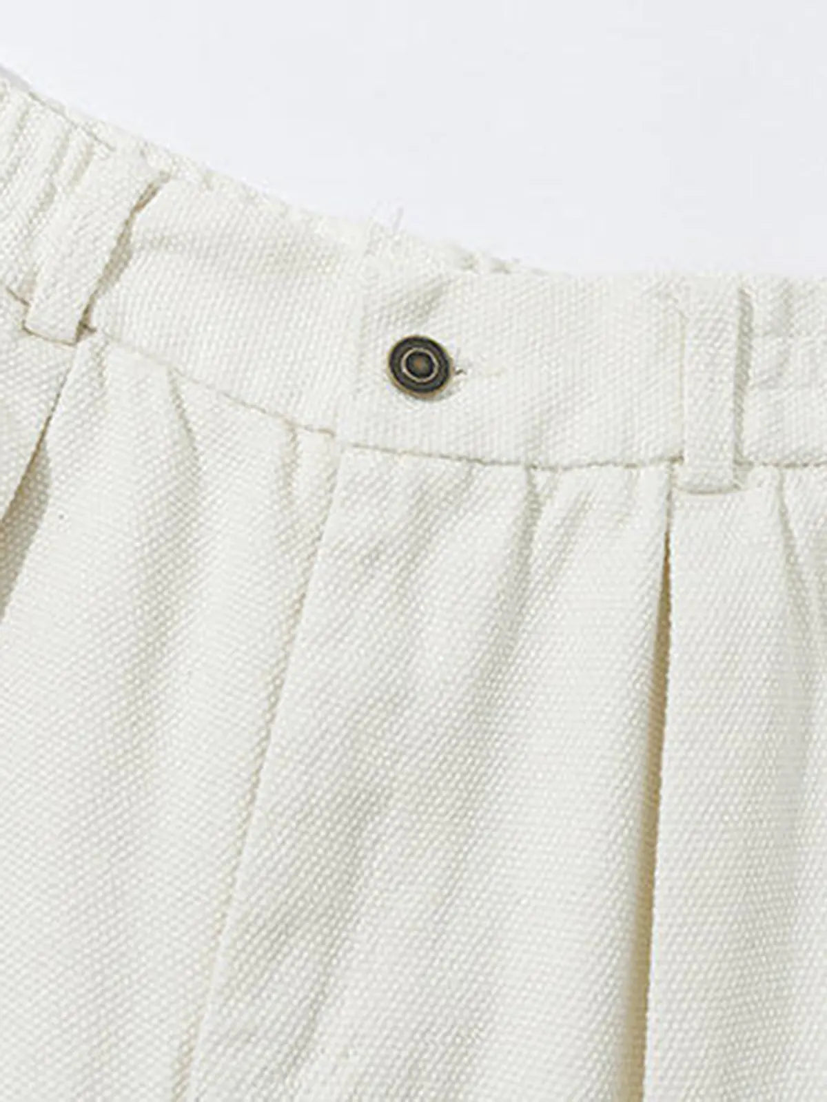 前面のポケット口に配されたホワイトのジグザグ刺繍がアクセントとなり、シンプルながらも遊び心を演出。腰回りはウエストボタンとゴム入りでしっかりフィットしつつ、両サイドに入ったワンタックが腿まわりにゆとりを生み、動きやすさを確保します。丈は膝上で合わせやすく、カットソーからシャツまで幅広いトップスと相性良くコーディネート可能。オールシーズン活躍する丈夫なコットン地を使用し、洗い込むごとに風合いが増すのも魅力です。