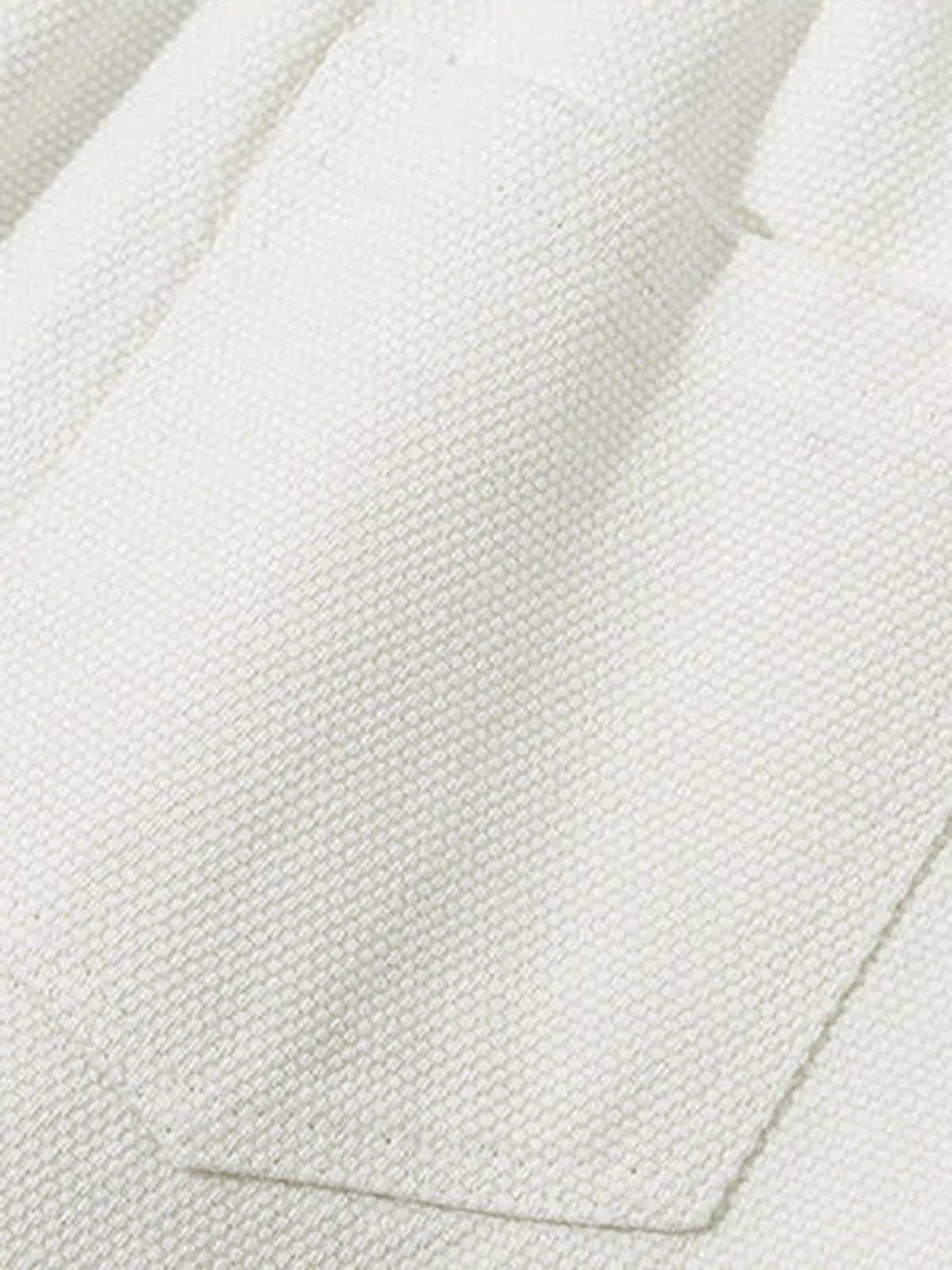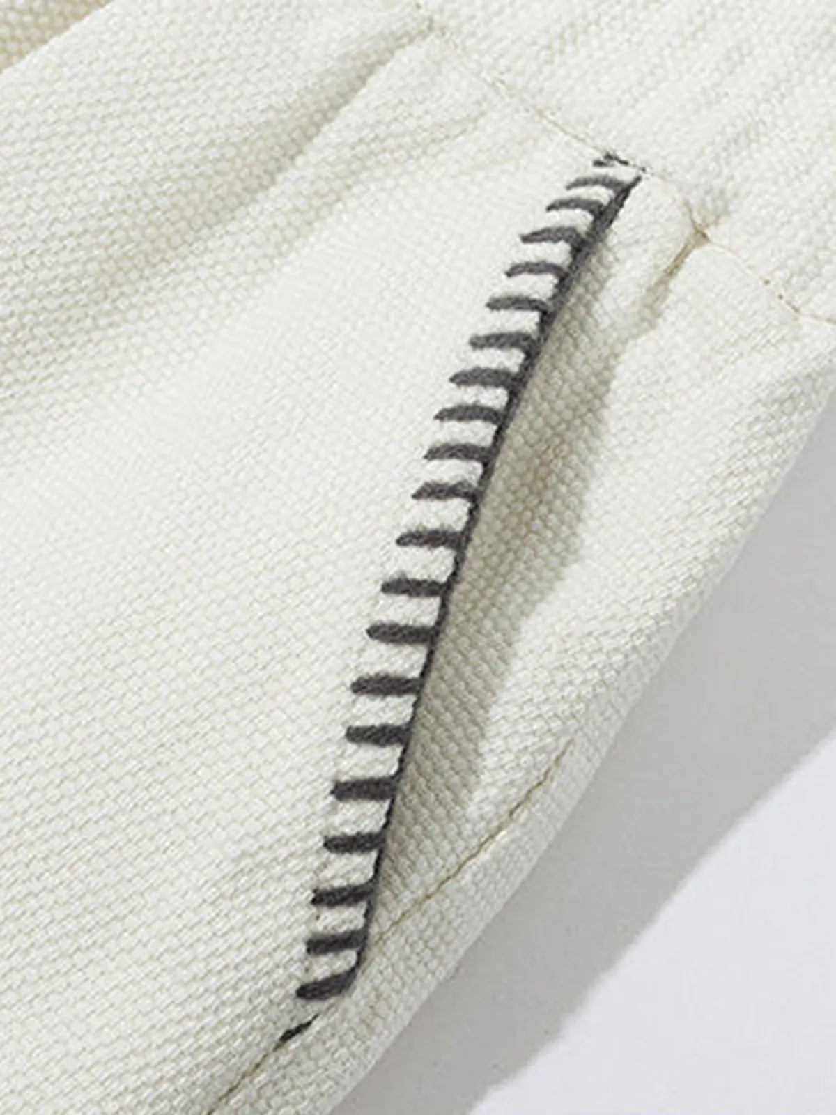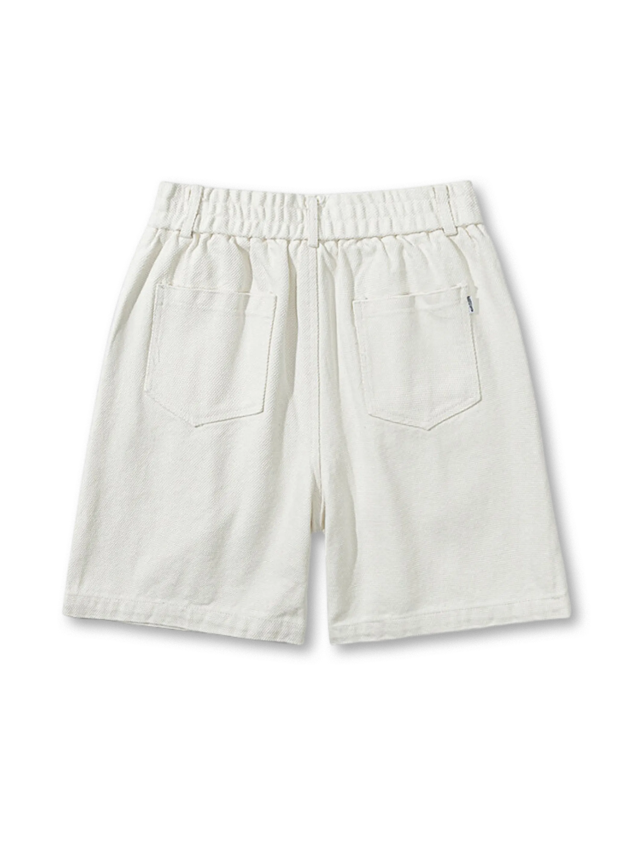 ホワイトのステッチ刺繍が映える、コットン100%のゆったりシルエットショートパンツ。