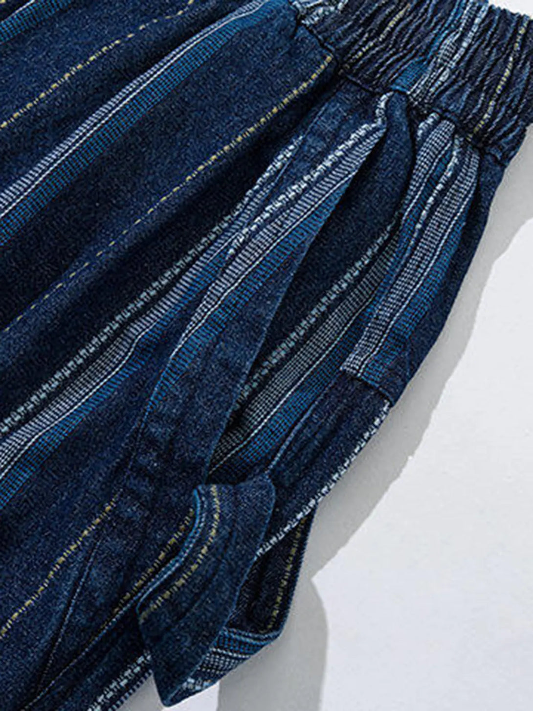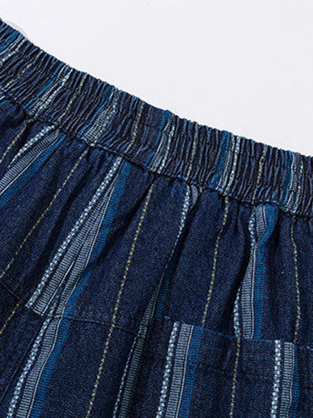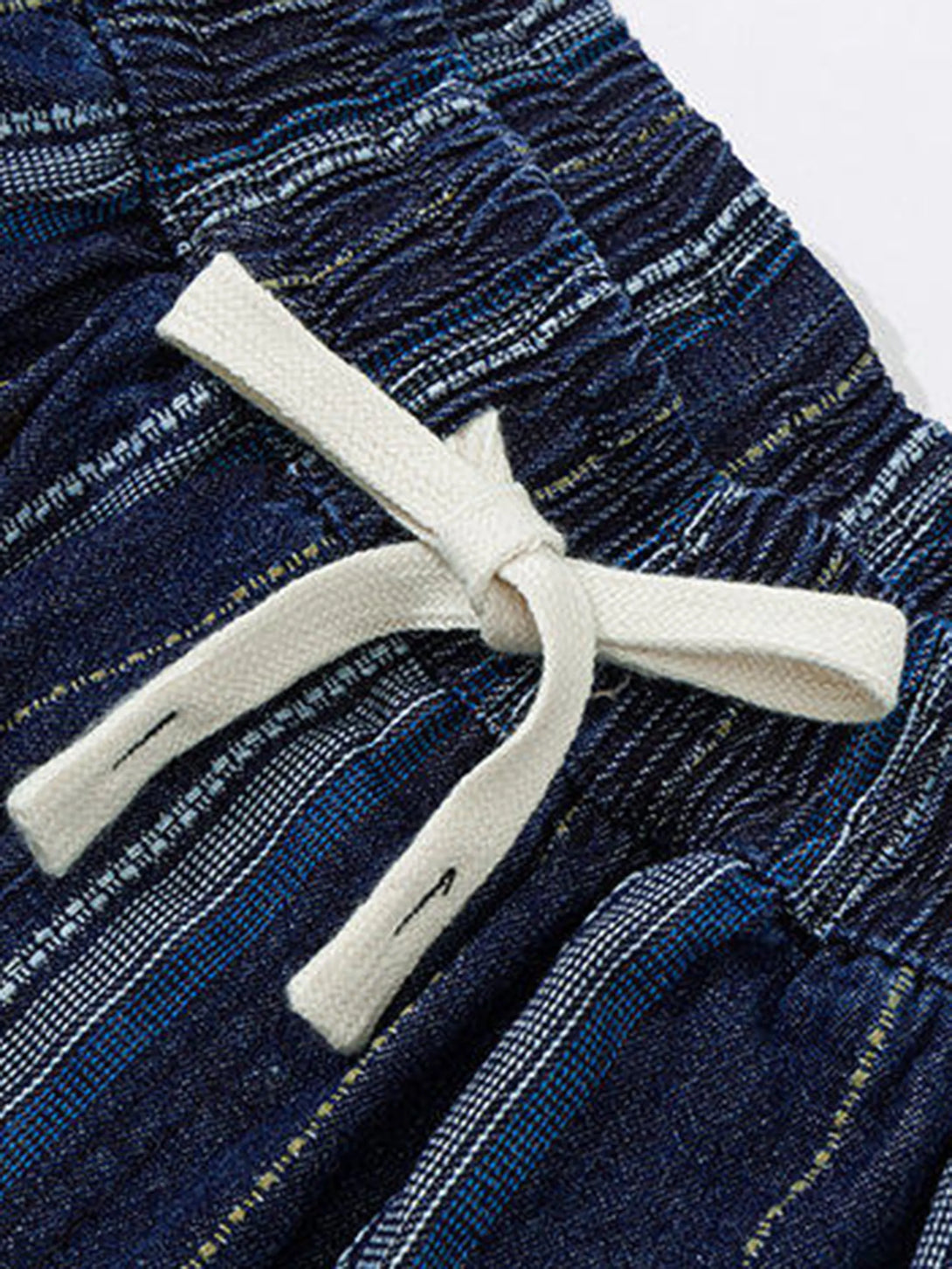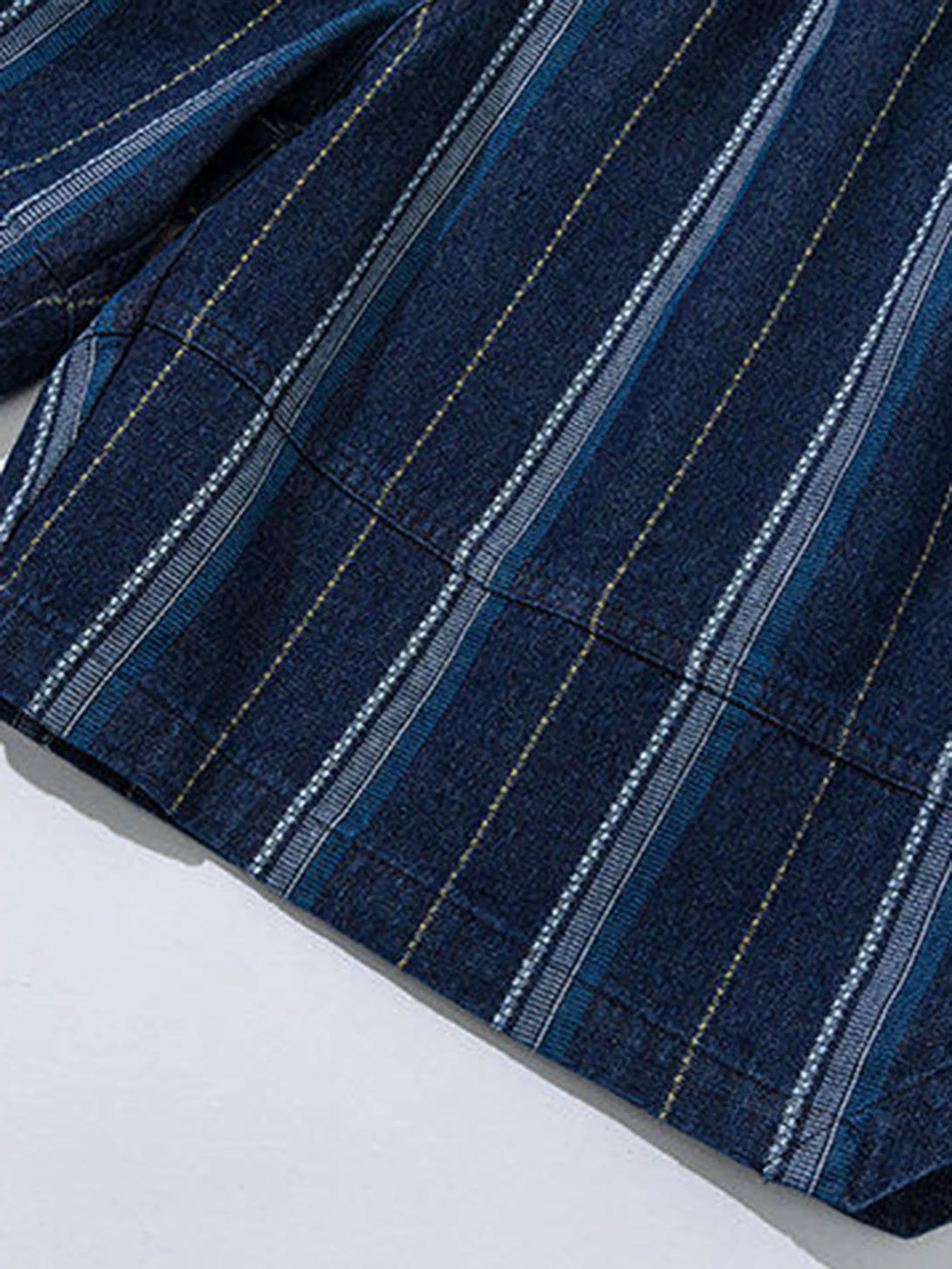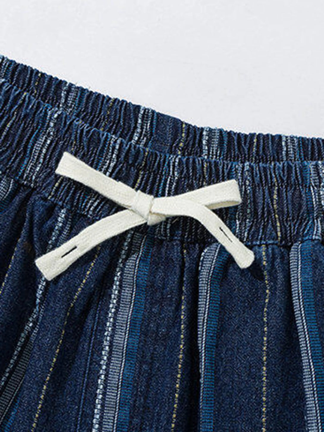 洗い加工を施したストライプ柄が際立つ、ゆったりシルエットのデニムライクショートパンツ。
