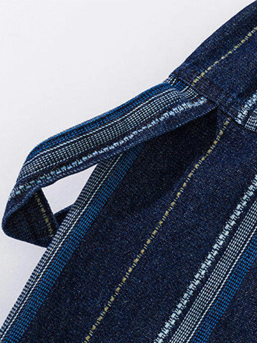 - ヴィンテージ感あるウォッシュストライプ生地が、夏のカジュアルスタイルに抜け感をプラス。