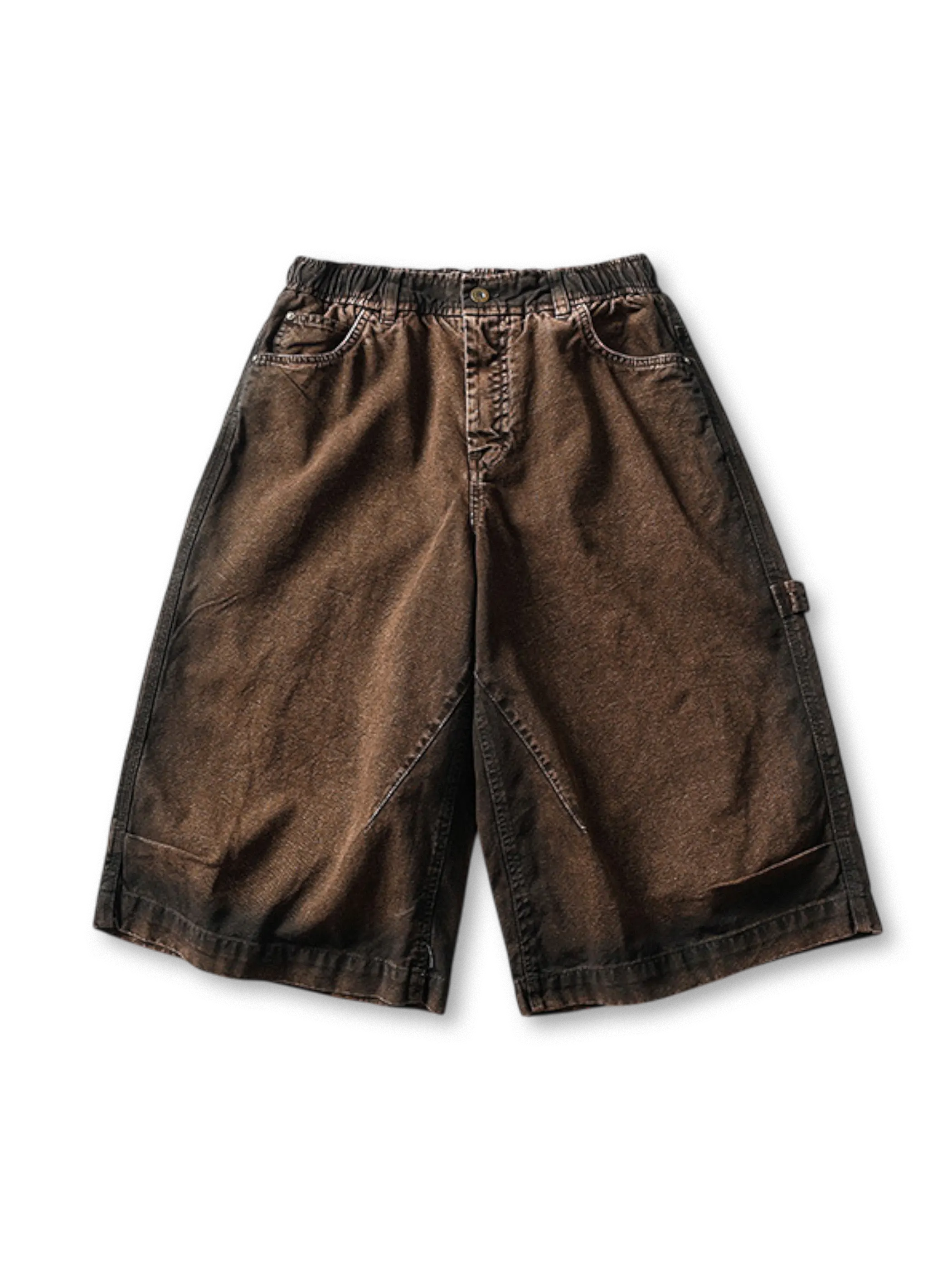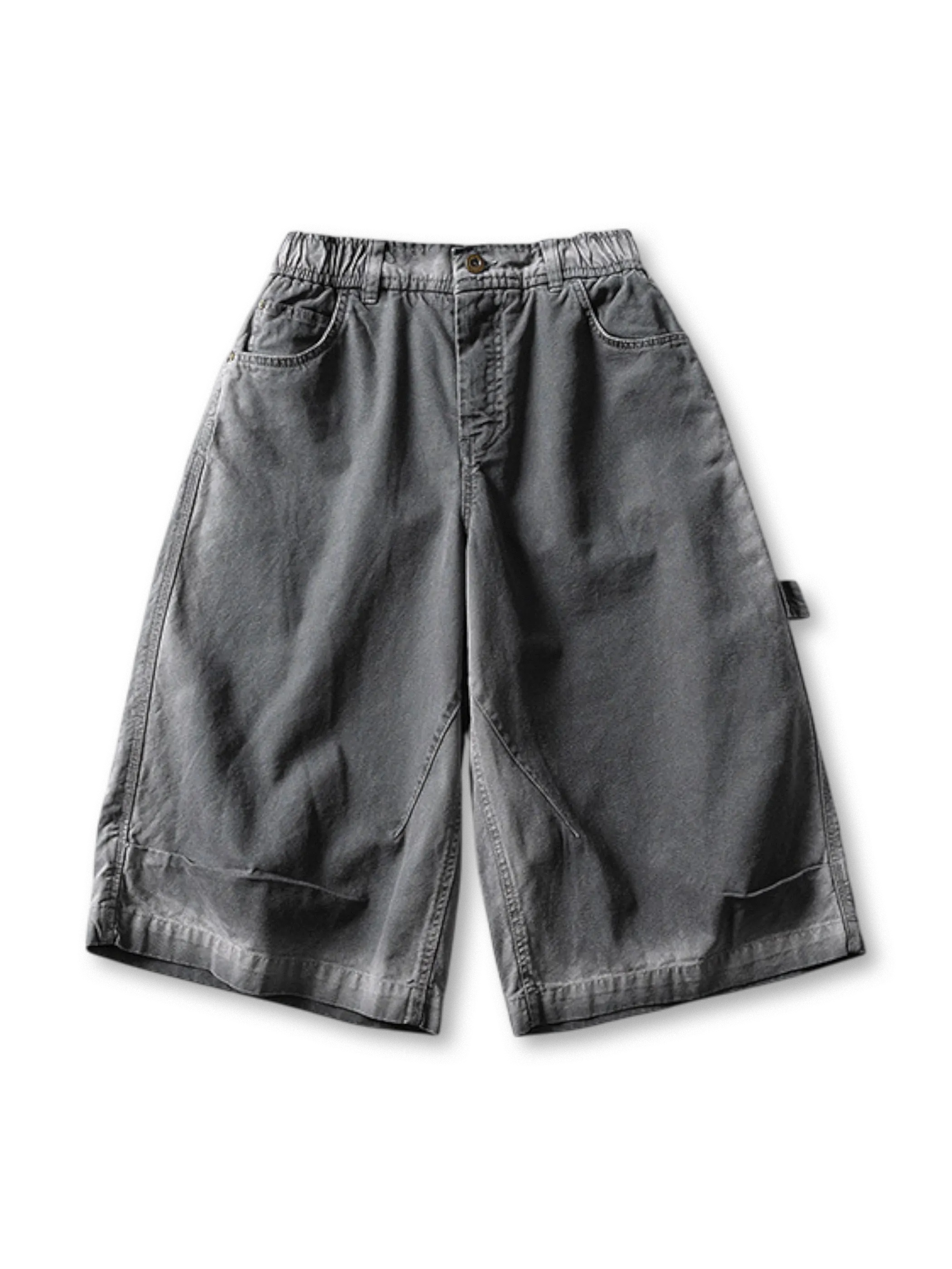 ヴィンテージアメリカンワークウェアを彷彿とさせる、洗い加工を施した厚手コットンの7分丈ショーツ。
