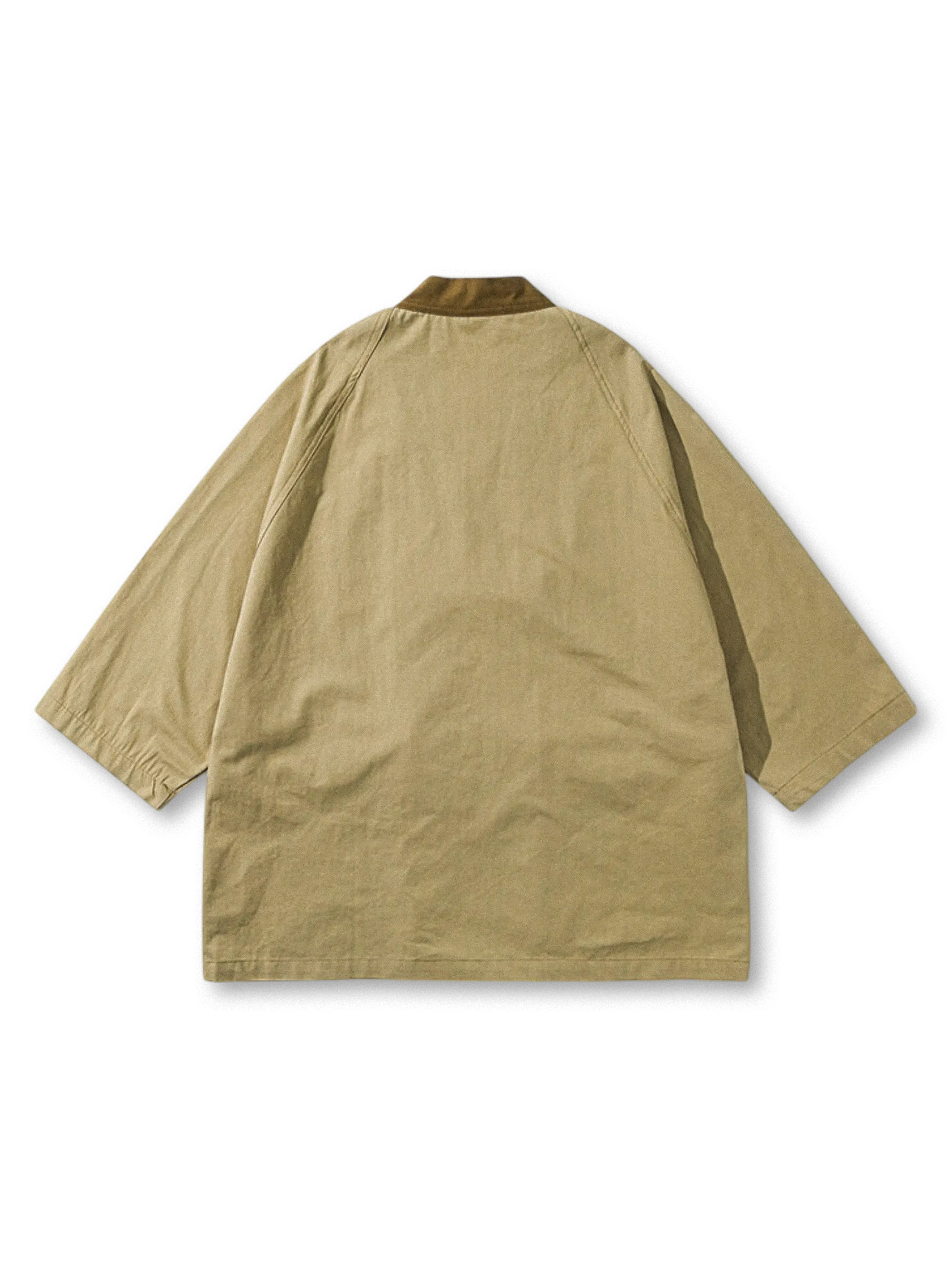 古くから日本の農作業着として愛されてきた“ノラギ”をベースに、フロントの共紐締めと大胆な配色ポケットを配しつつ、ミリタリージャケットの剛性を取り入れた一着。ゆったりとした身幅と裾まで落ちるラグランスリーブがレイヤリングしやすく、撥水コットンの軽やかな着心地がアウトドアからタウンユースまで幅広く活躍。デザインの背景にある日本的作業着文化を着こなしで体現し、日常に遊び心と懐かしさをもたらします。