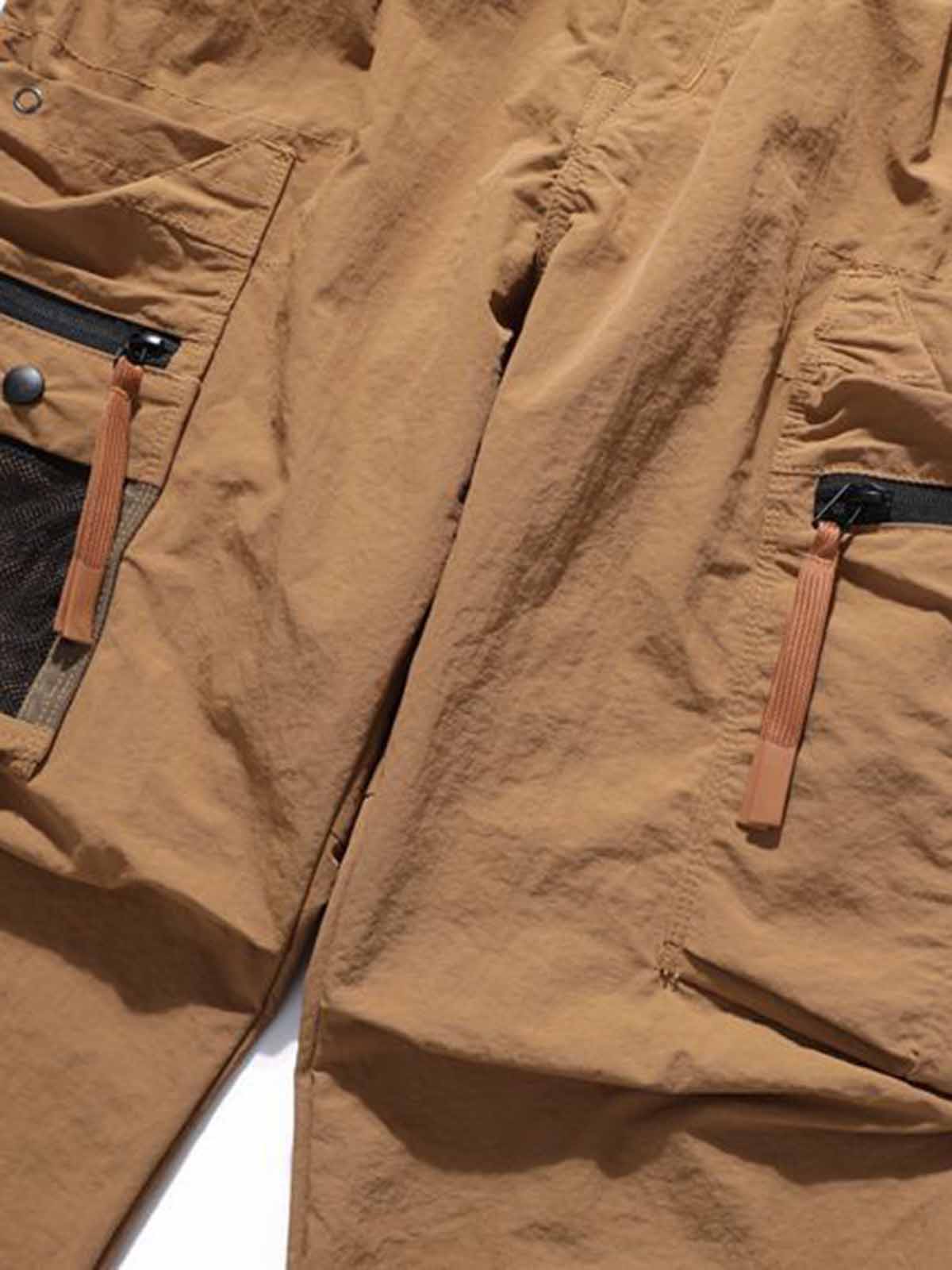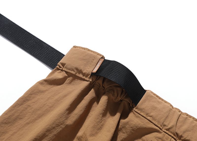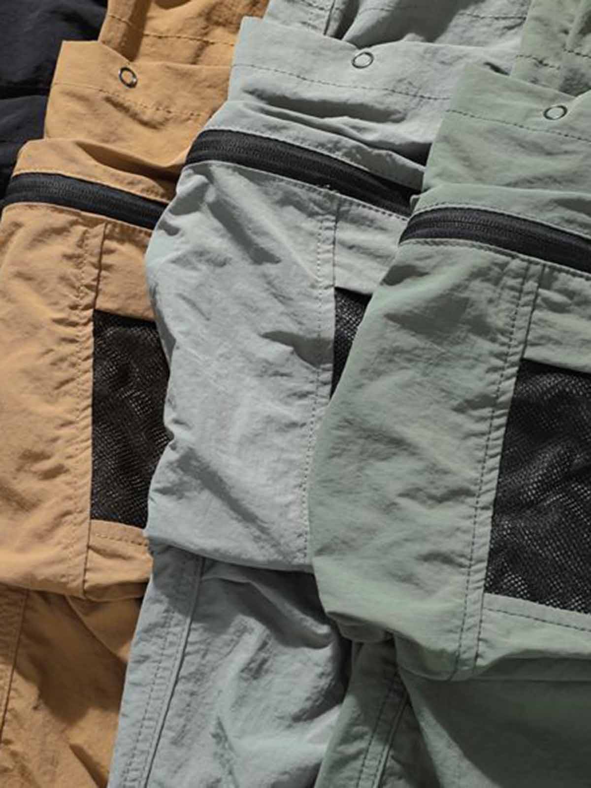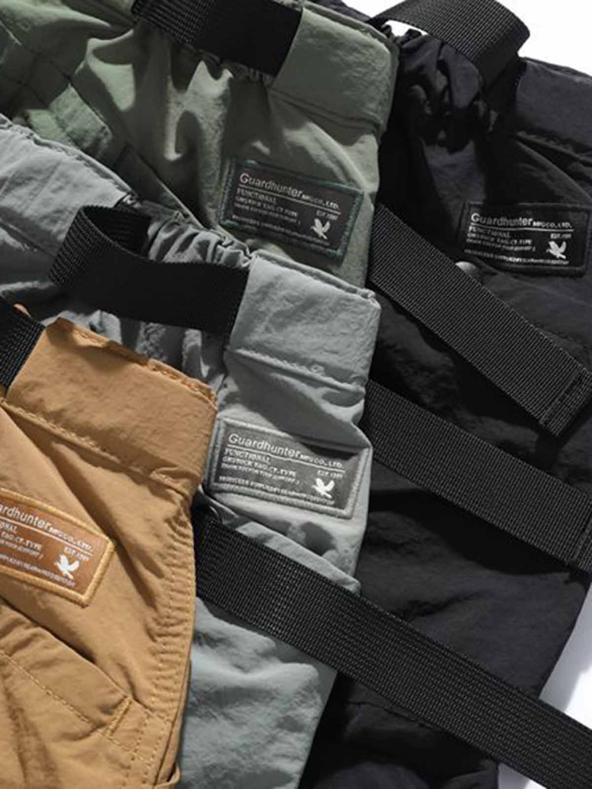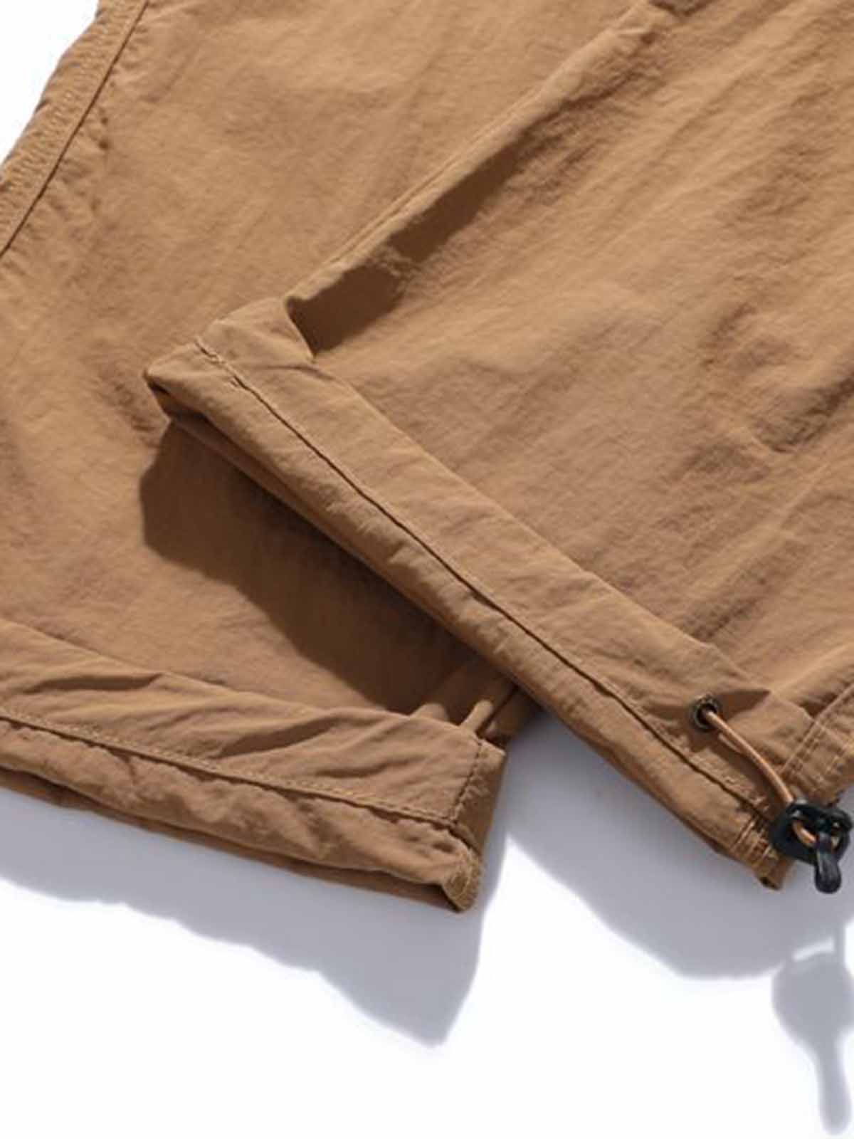 このパンツは、100%ナイロンの速乾生地にメッシュライニングを組み合わせ、アウトドア活動や都市通勤に最適な通気性と快適性を実現しています。多機能ポケットを多数配置しており、スマートフォン、財布、その他小物をしっかり収納可能。ウエストにはゴムバンドとバックルが装備され、フィット感を自由に調整できるため、実用性とスタイリッシュな印象を両立しています。ルーズなストレートシルエットは動きやすさを提供し、4色展開により、様々なコーディネートに合わせやすいデザインとなっています。