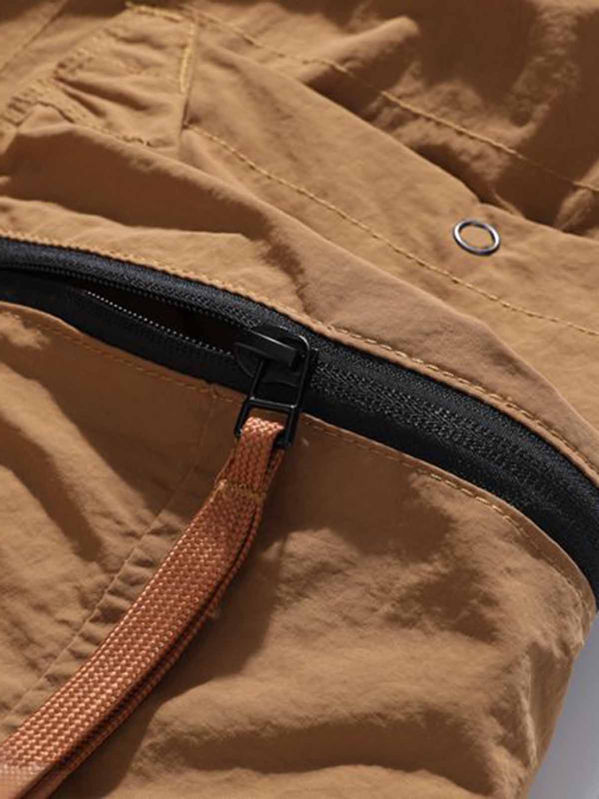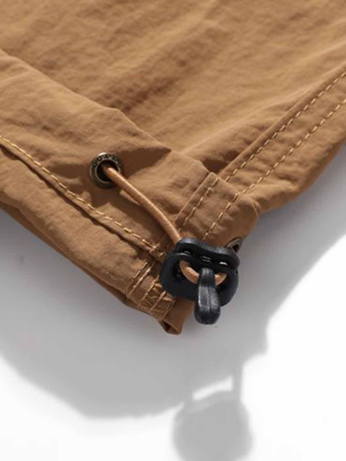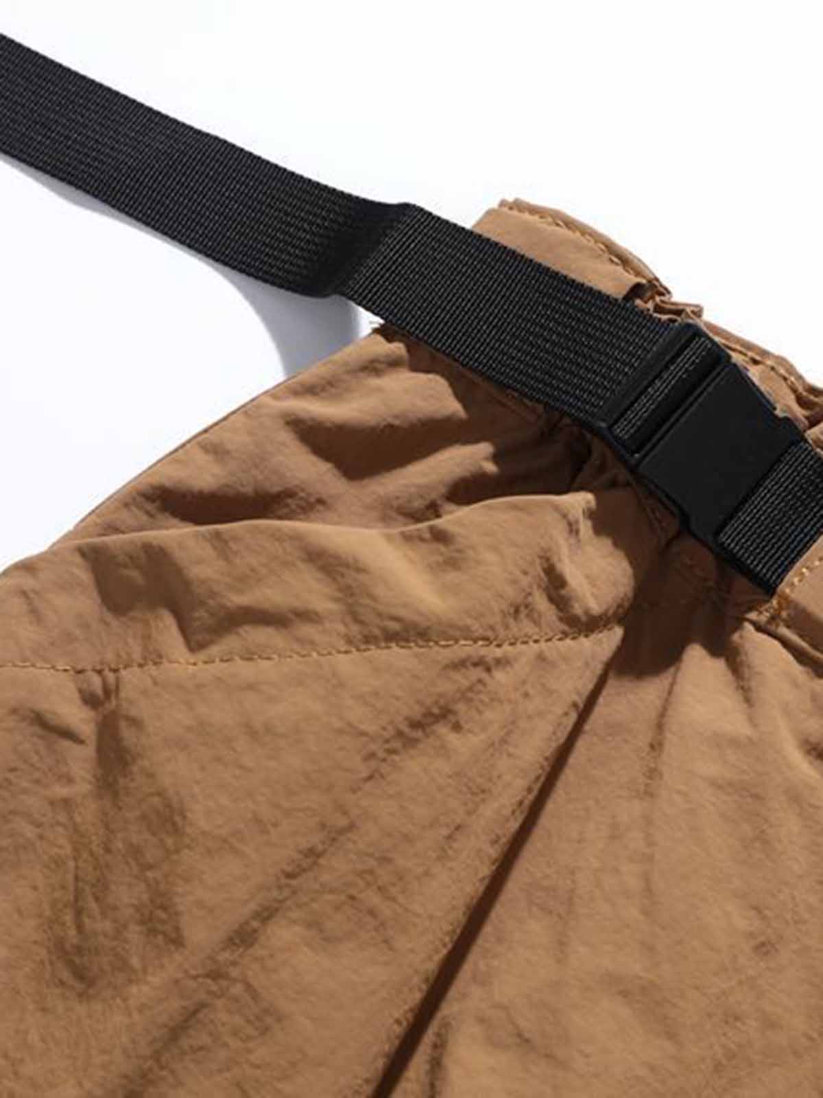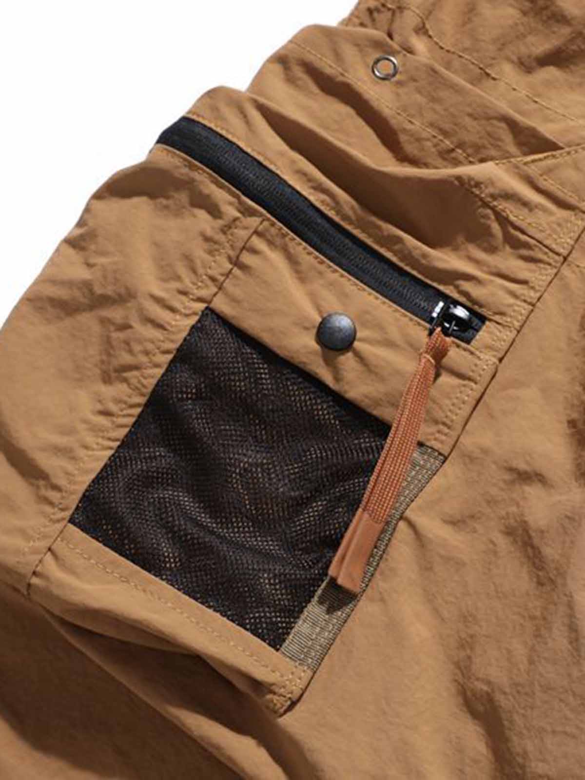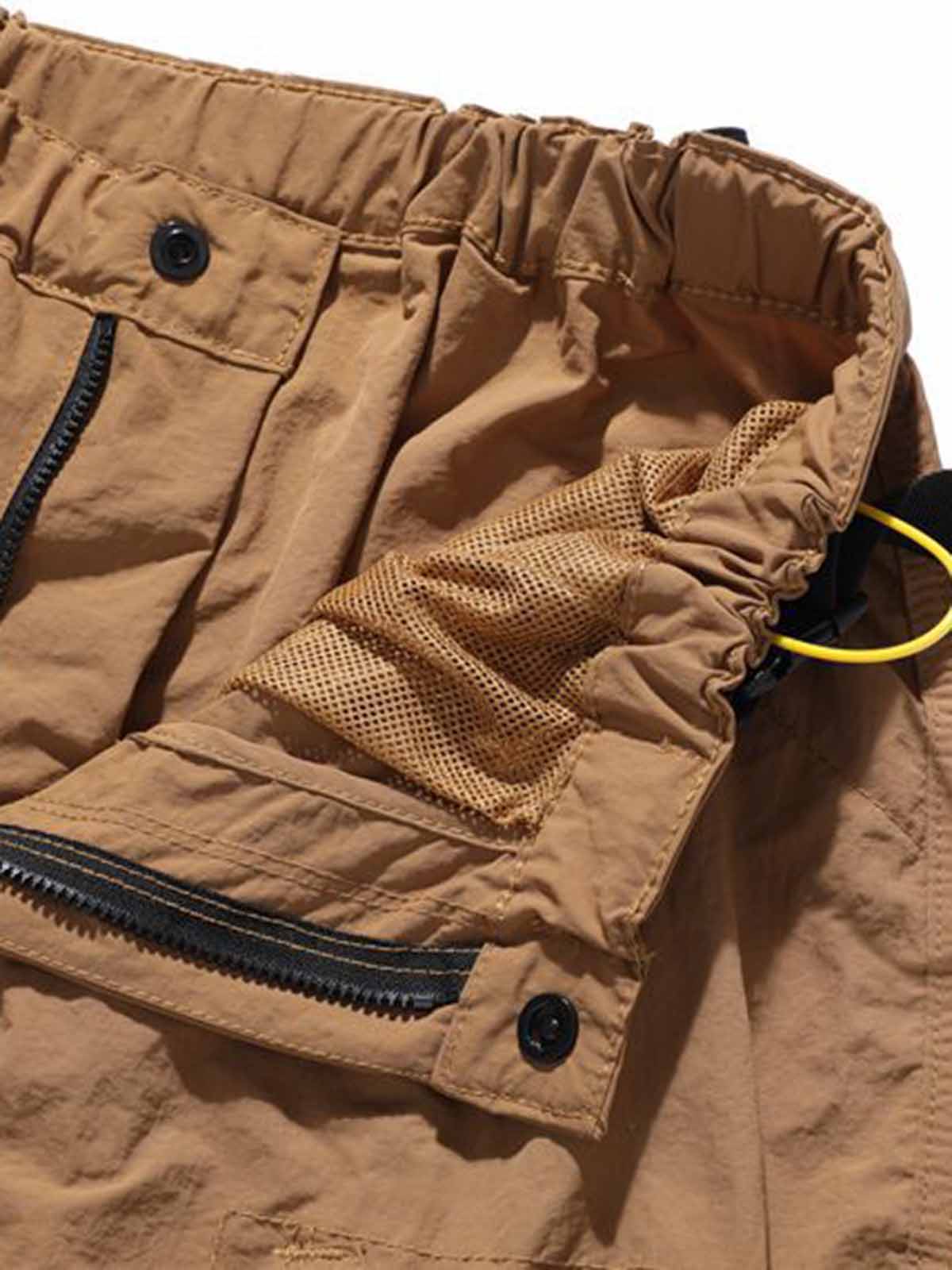 このパンツは、100%ナイロンの速乾生地にメッシュライニングを組み合わせ、アウトドア活動や都市通勤に最適な通気性と快適性を実現しています。多機能ポケットを多数配置しており、スマートフォン、財布、その他小物をしっかり収納可能。ウエストにはゴムバンドとバックルが装備され、フィット感を自由に調整できるため、実用性とスタイリッシュな印象を両立しています。ルーズなストレートシルエットは動きやすさを提供し、4色展開により、様々なコーディネートに合わせやすいデザインとなっています。
