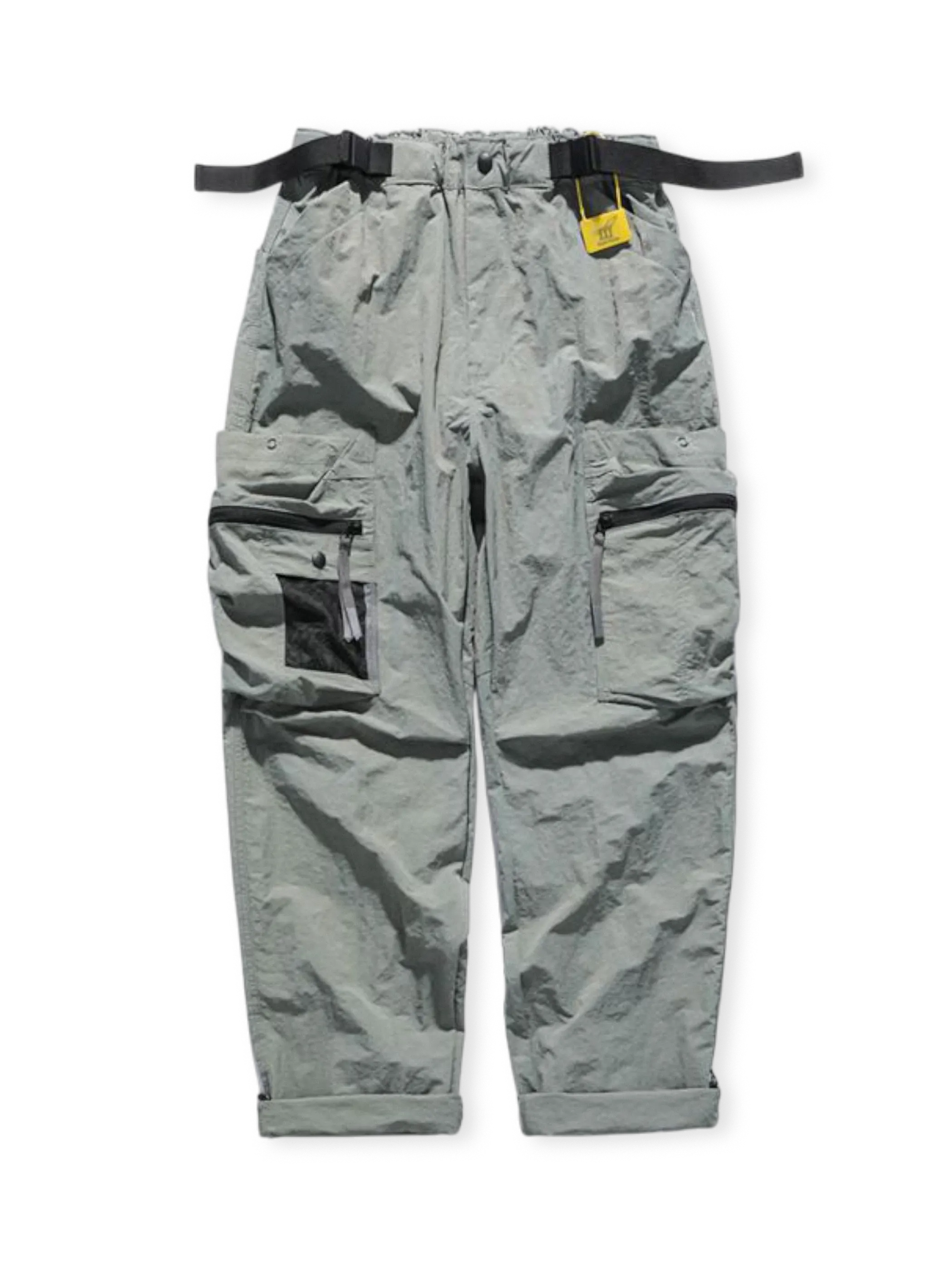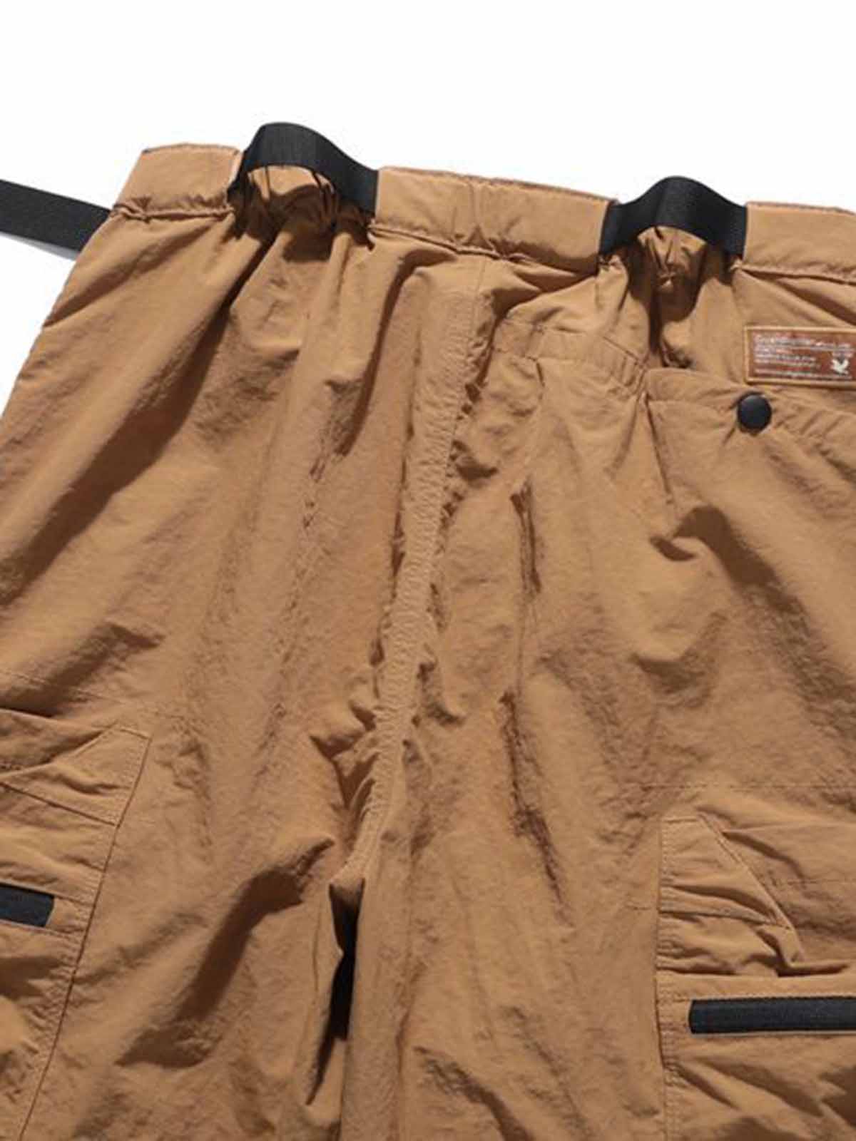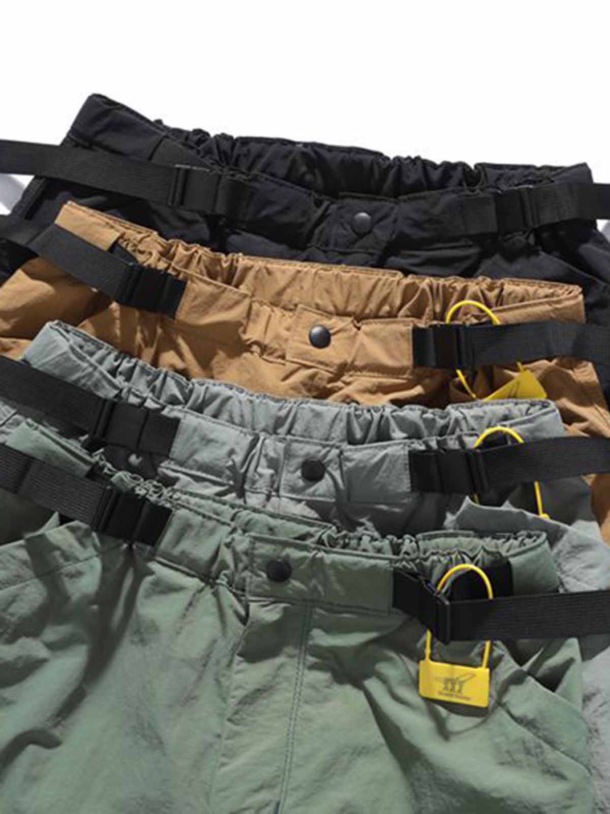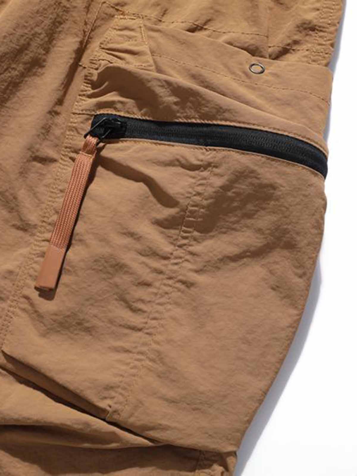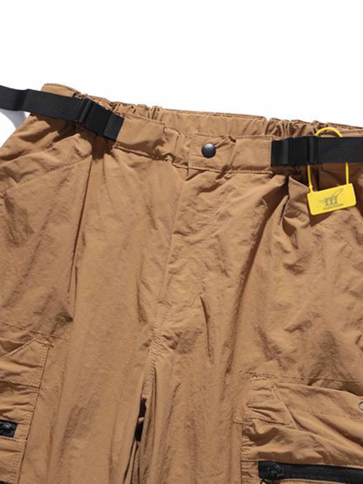 このパンツは、100%ナイロンの速乾生地にメッシュライニングを組み合わせ、アウトドア活動や都市通勤に最適な通気性と快適性を実現しています。多機能ポケットを多数配置しており、スマートフォン、財布、その他小物をしっかり収納可能。ウエストにはゴムバンドとバックルが装備され、フィット感を自由に調整できるため、実用性とスタイリッシュな印象を両立しています。ルーズなストレートシルエットは動きやすさを提供し、4色展開により、様々なコーディネートに合わせやすいデザインとなっています。