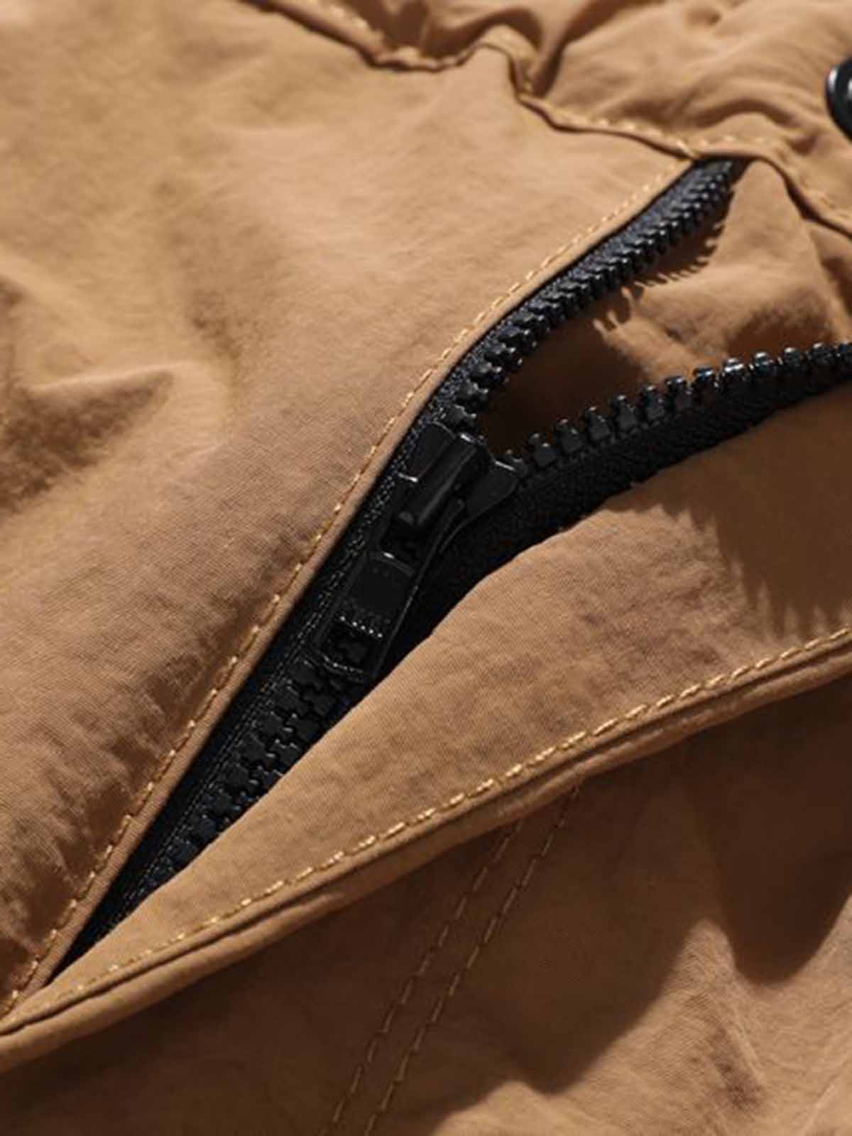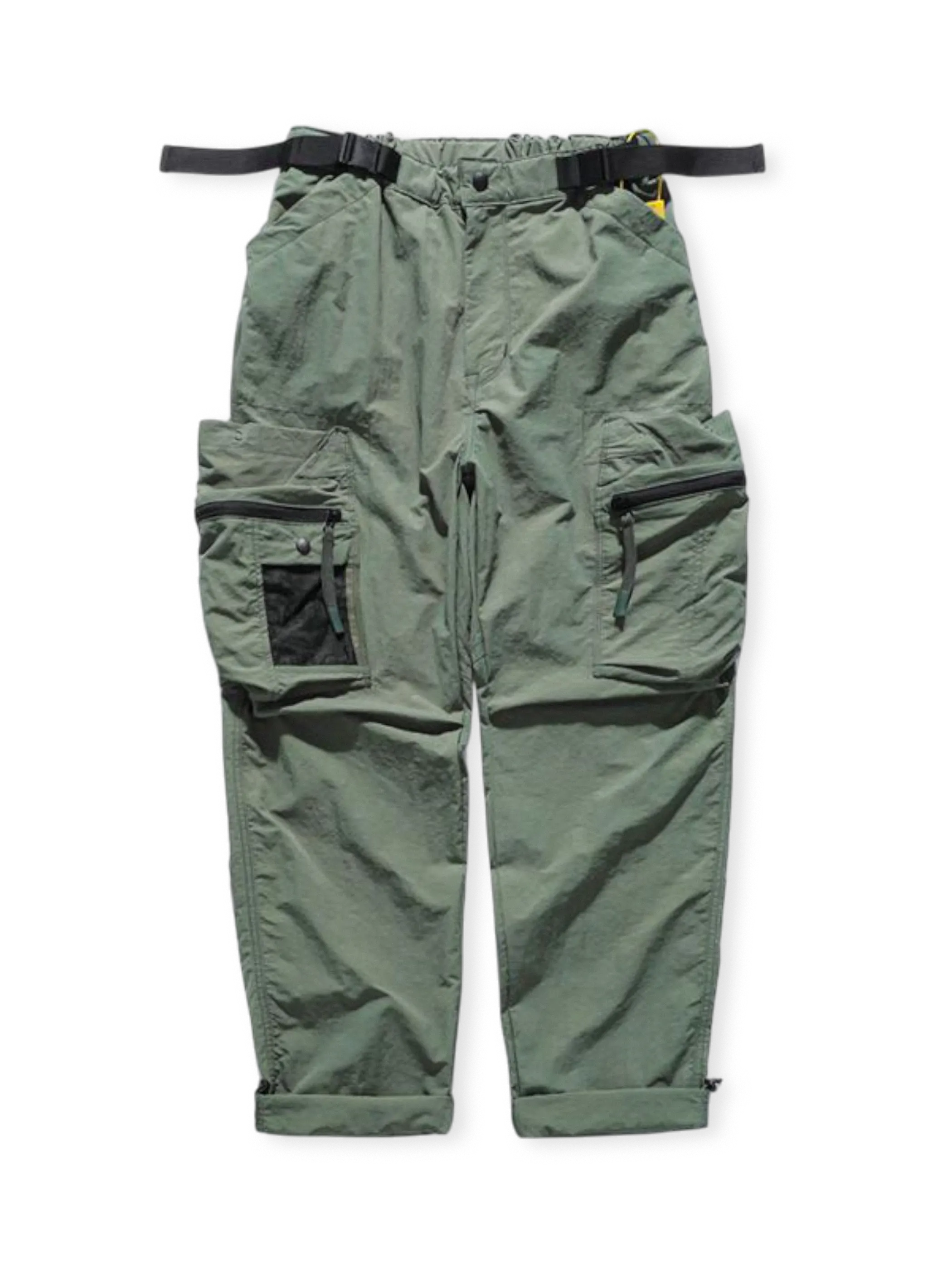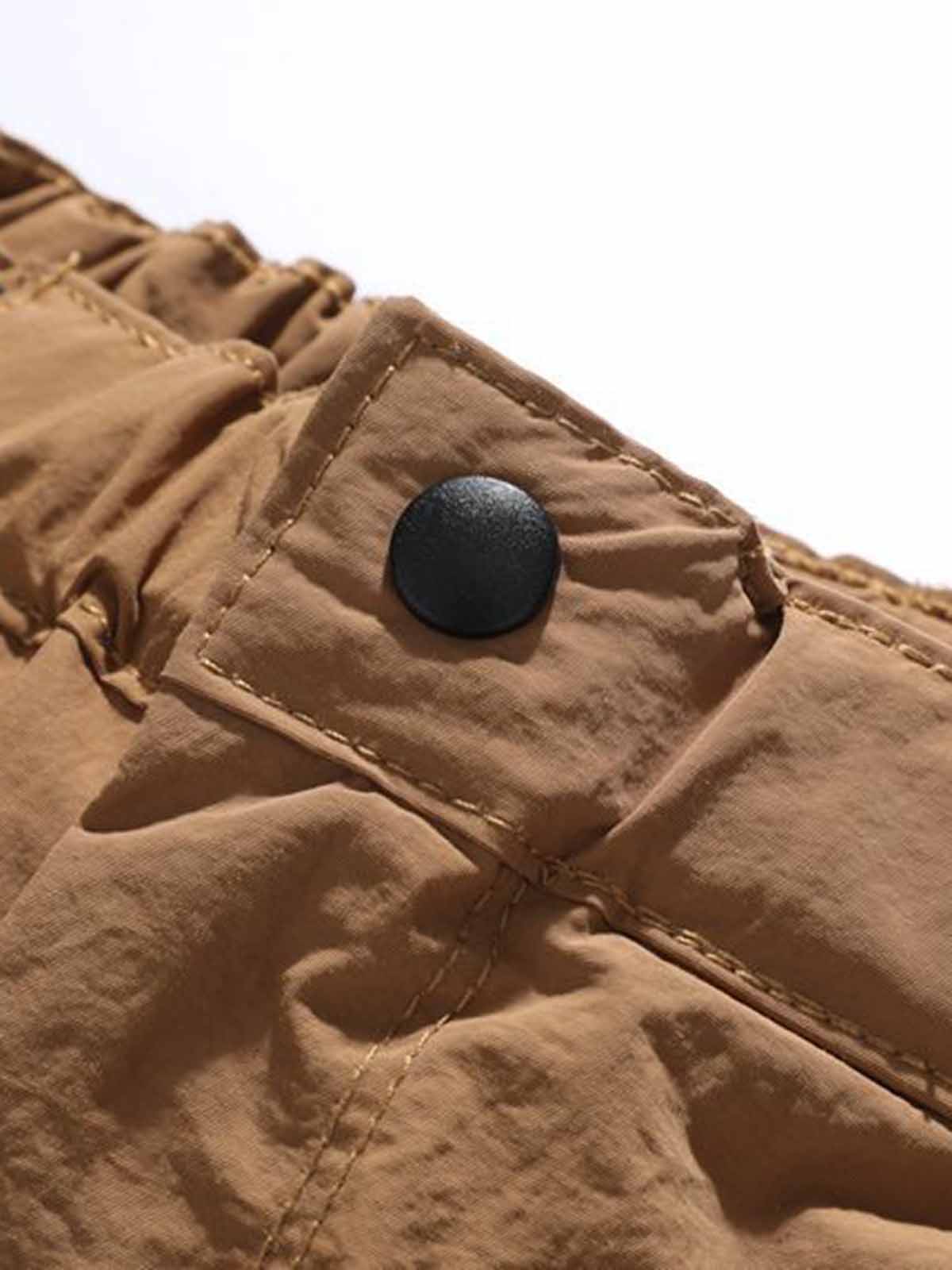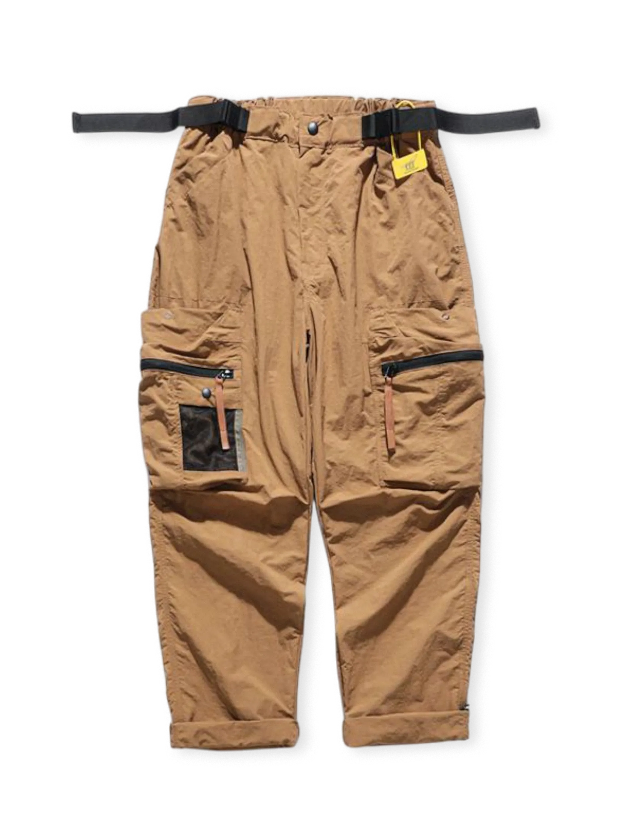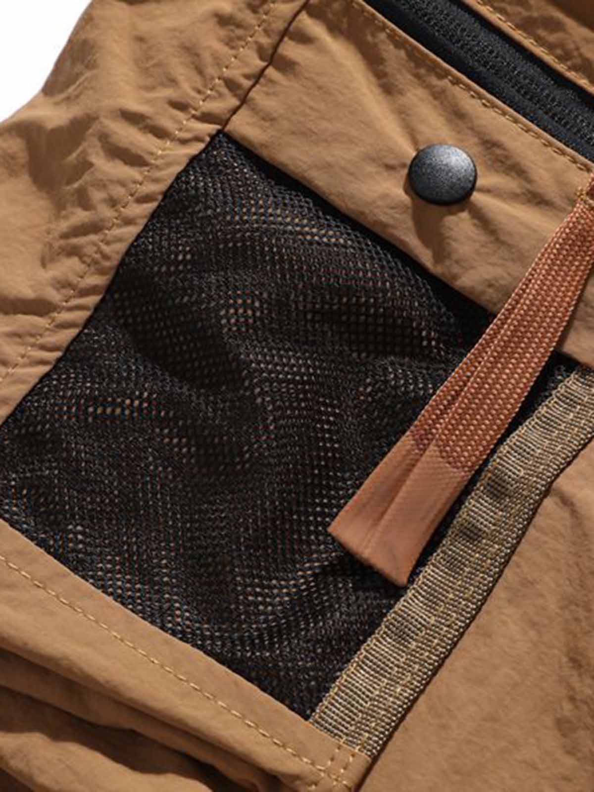 このパンツは、100%ナイロンの速乾生地にメッシュライニングを組み合わせ、アウトドア活動や都市通勤に最適な通気性と快適性を実現しています。多機能ポケットを多数配置しており、スマートフォン、財布、その他小物をしっかり収納可能。ウエストにはゴムバンドとバックルが装備され、フィット感を自由に調整できるため、実用性とスタイリッシュな印象を両立しています。ルーズなストレートシルエットは動きやすさを提供し、4色展開により、様々なコーディネートに合わせやすいデザインとなっています。