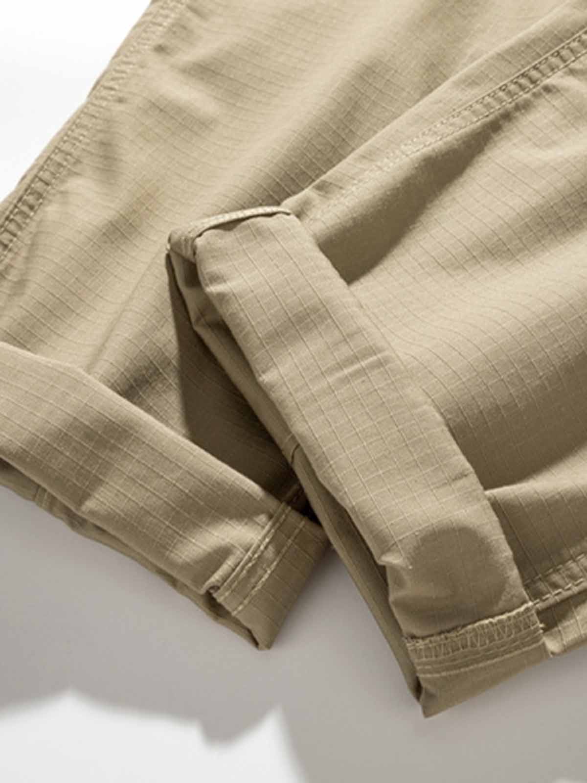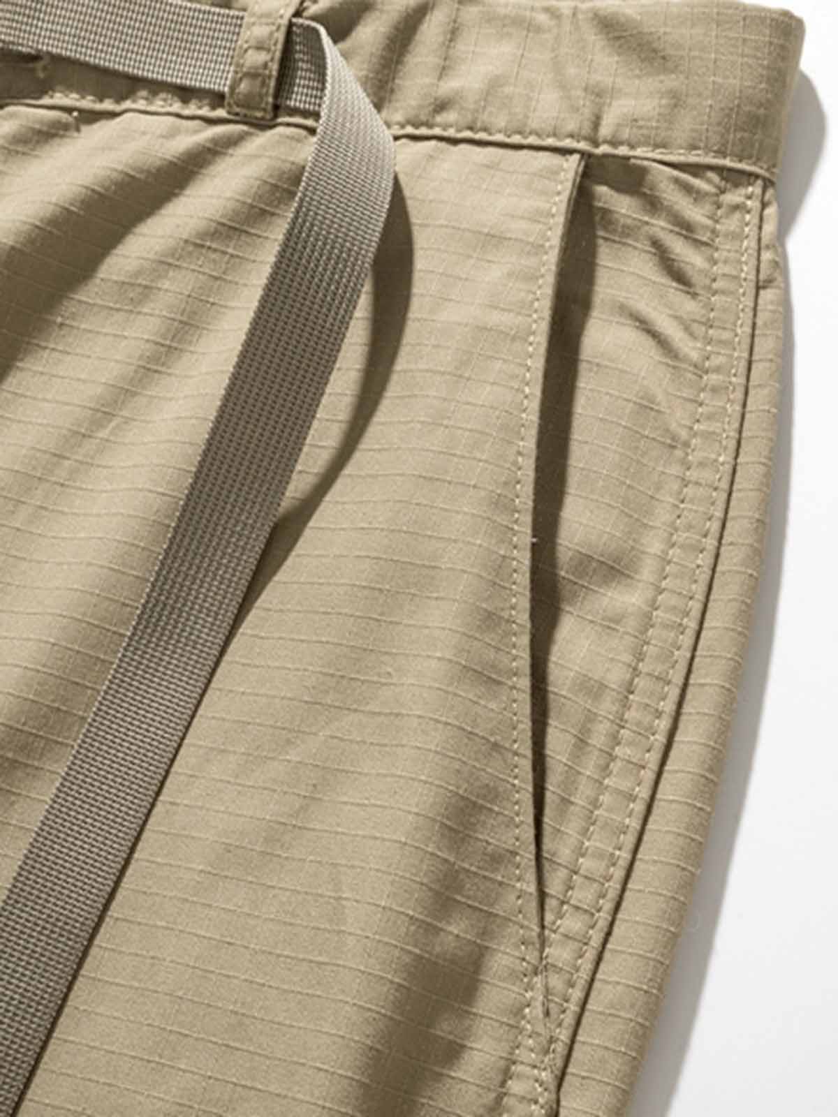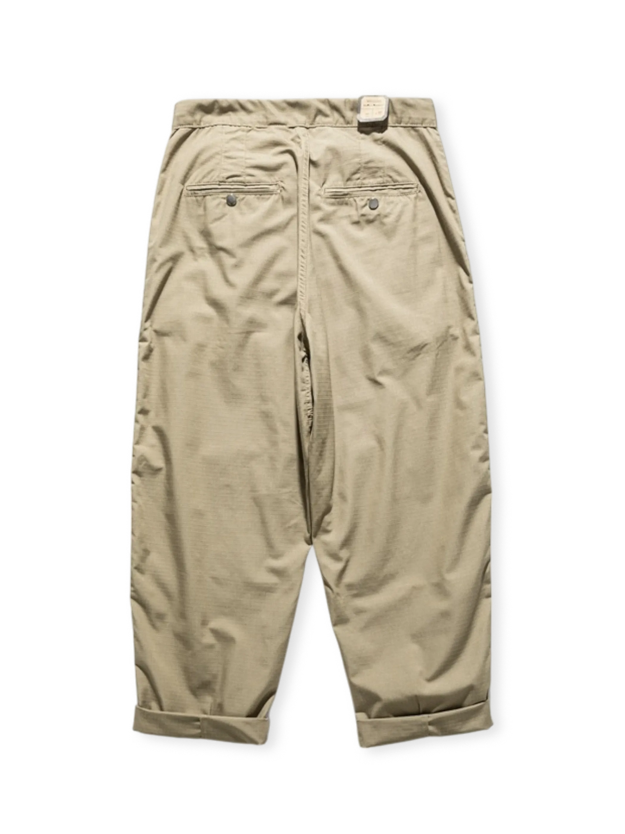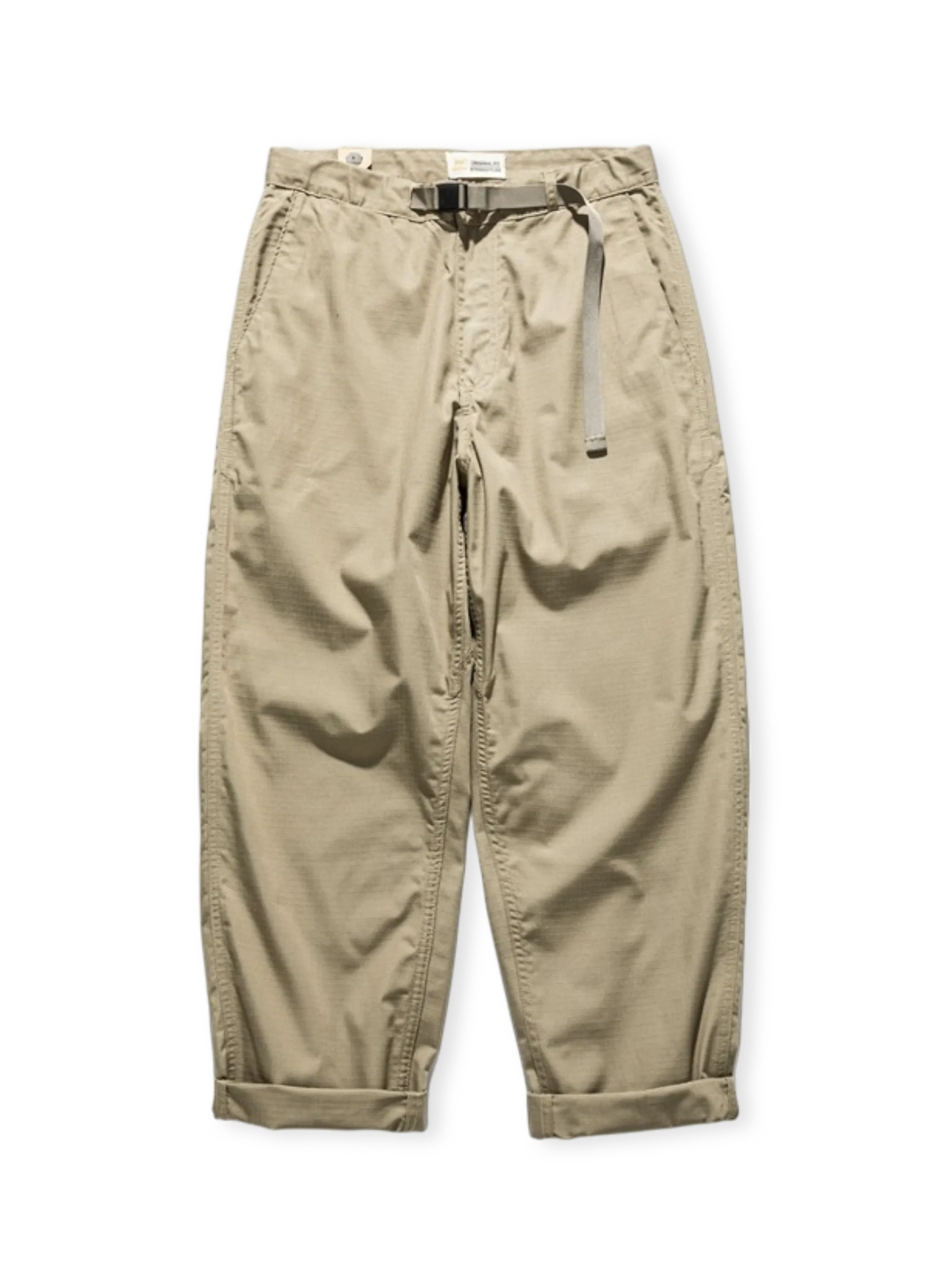 このパンツは、耐摩耗性と防刃性に優れる高密度のヘリンボーン生地(100% コットン)を使用し、軽酵洗加工により柔らかく快適な肌触りに仕上げています。膝部分には立体的なダブルタック加工が施され、上部はゆったり、下部はタイトなシルエットが、日本のシティボーイスタイルの洗練されたリラックス感を引き出します。ウエストはゴムバンドとドローコード、またはボタンで調整可能なため、さまざまな体型にフィット。多機能ポケットが日常の必需品をしっかり収納し、折り返し着こなしにも対応可能です。通勤、アウトドア、ストリートファッションなど、幅広いシーンで活躍する万能なアイテムです。