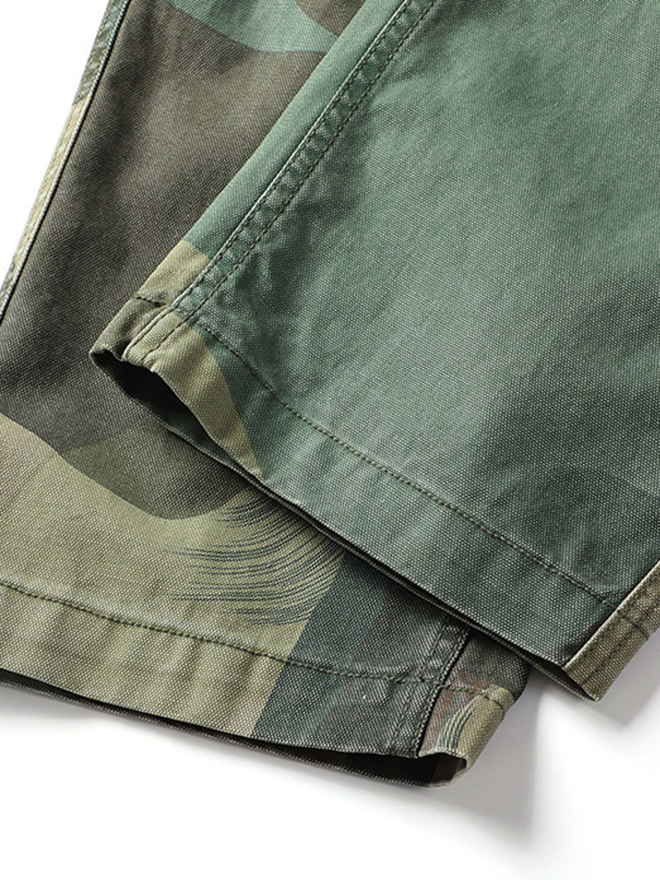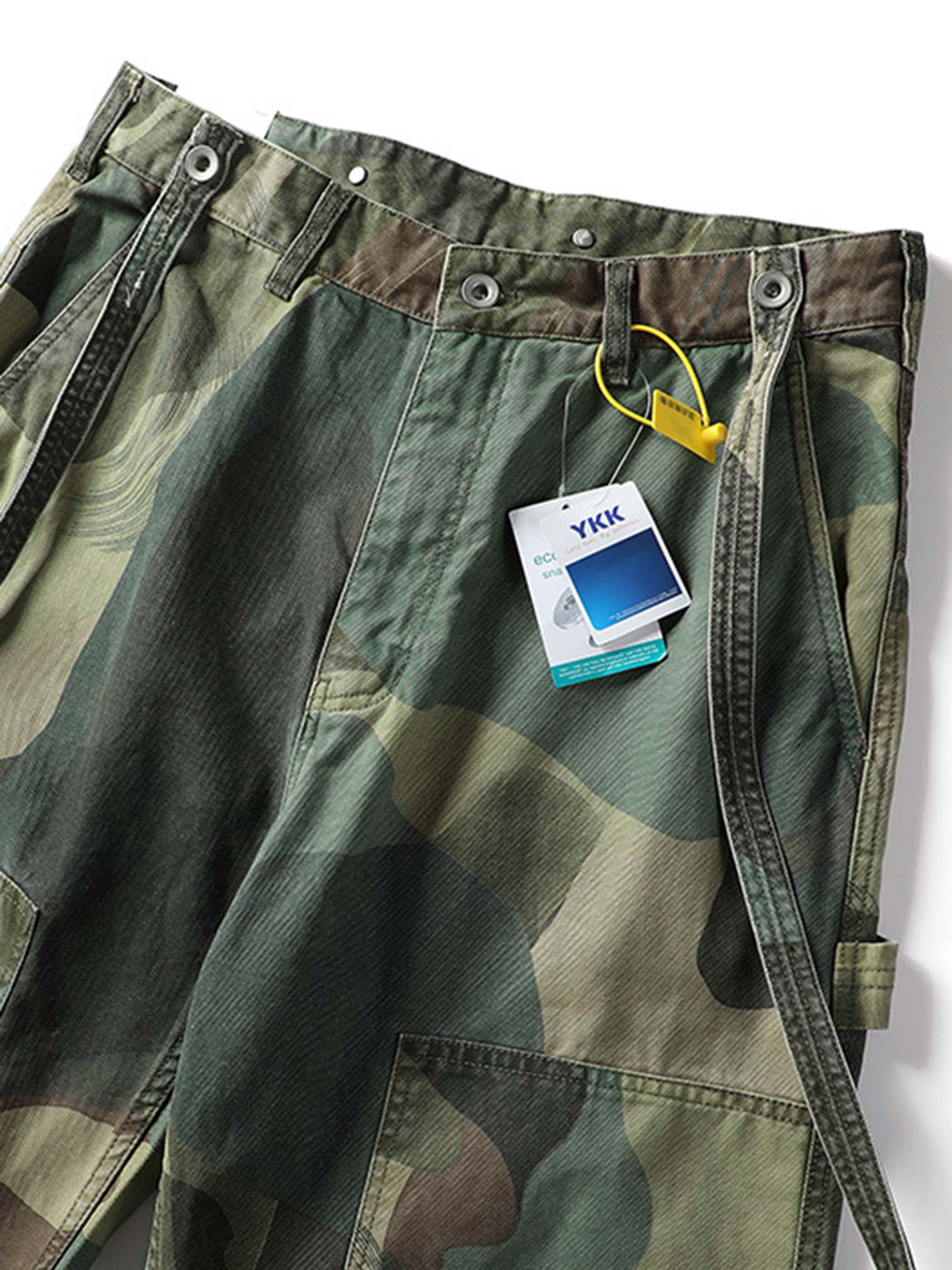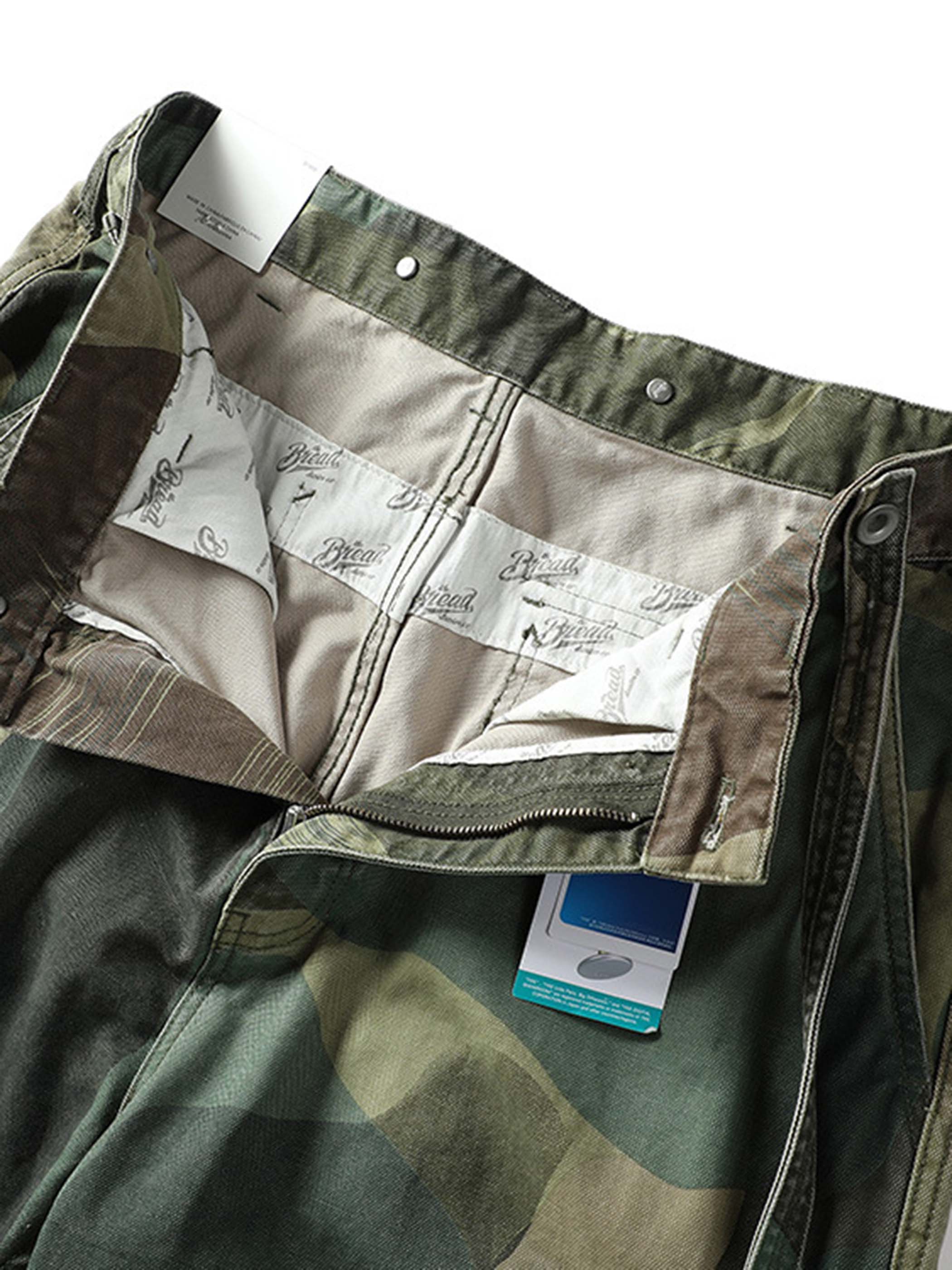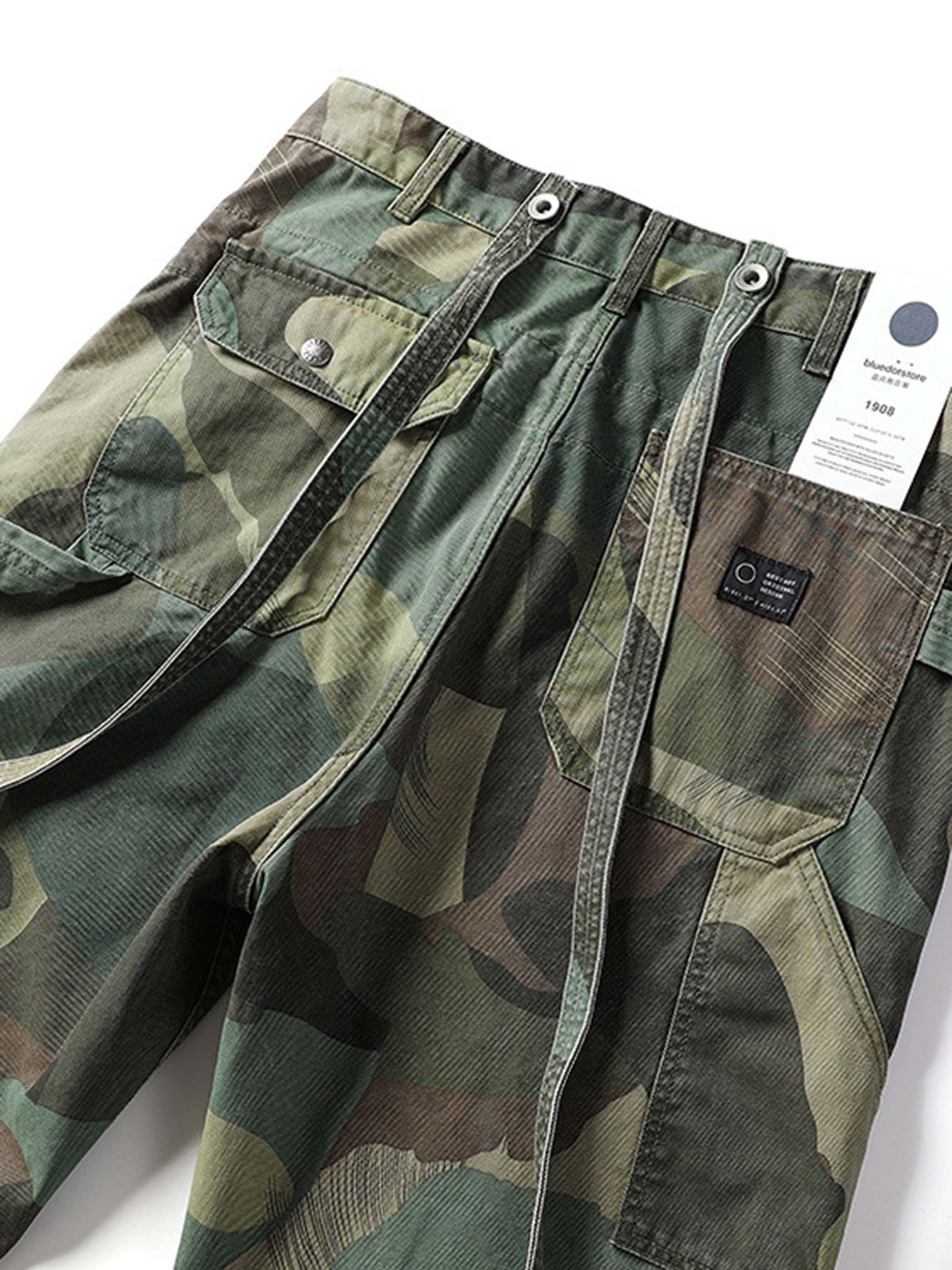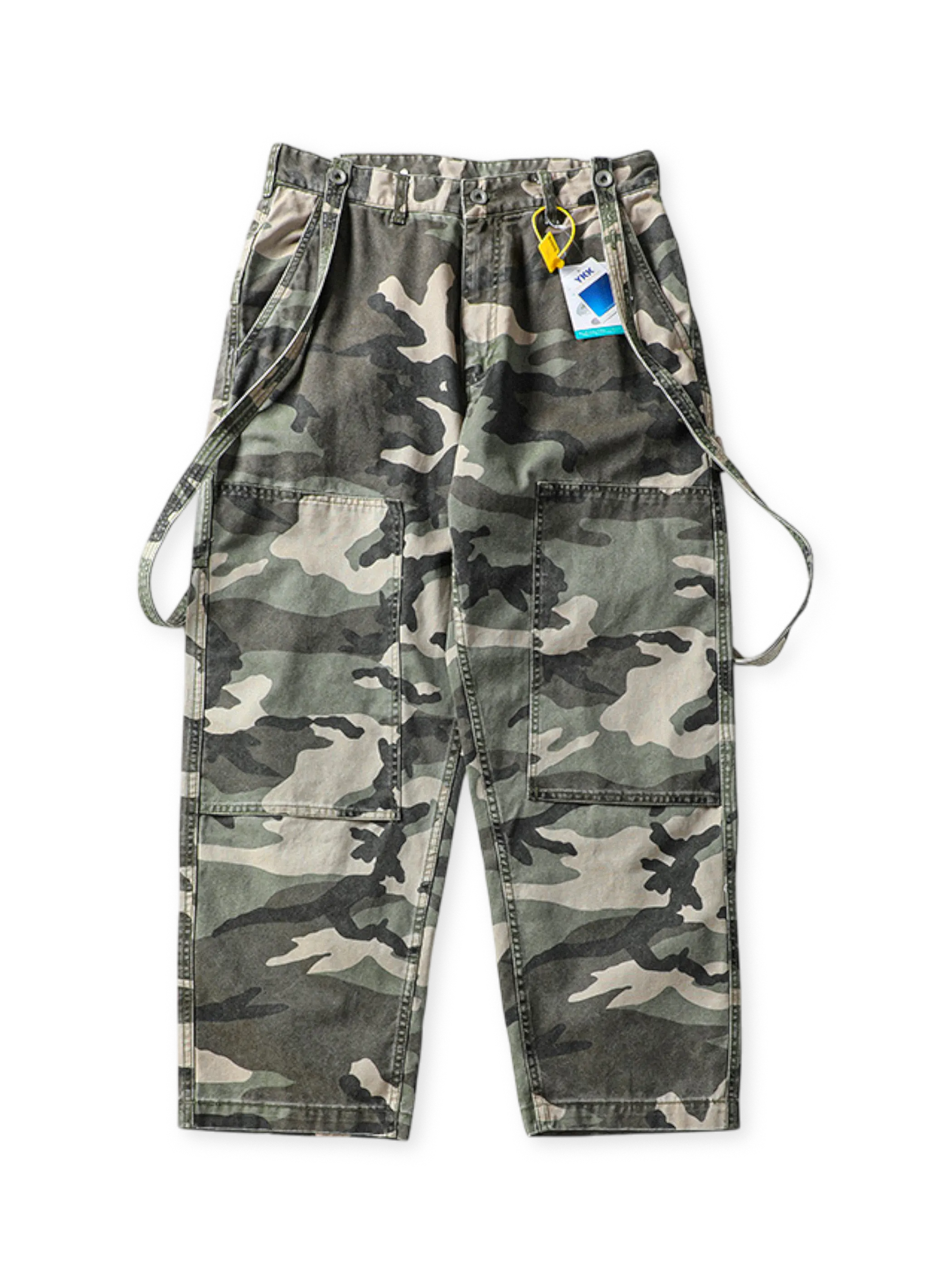 このワークパンツは、高密度で重量感のあるコットン素材を使用し、耐久性と快適な着心地を実現しています。背面とフロントをつなぐサスペンダーデザインが目を引き、アメカジ風のカーキテイストと日系ヴィンテージの雰囲気が同時に楽しめるデザインです。ルーズなストレートシルエットが脚まわりをしっかりカバーしつつ、動きやすさを確保。大きなパッチポケットや複数のポケット配置により、スマートフォンや財布などの日常必需品をまとめて収納可能です。カラーはブラック、ヴィンテージグリーン、ライトカモ、ダークカモの4色展開で、色ごとに異なる雰囲気を楽しむことができ、アウトドアからストリートまで幅広いシーンに対応する一着です。