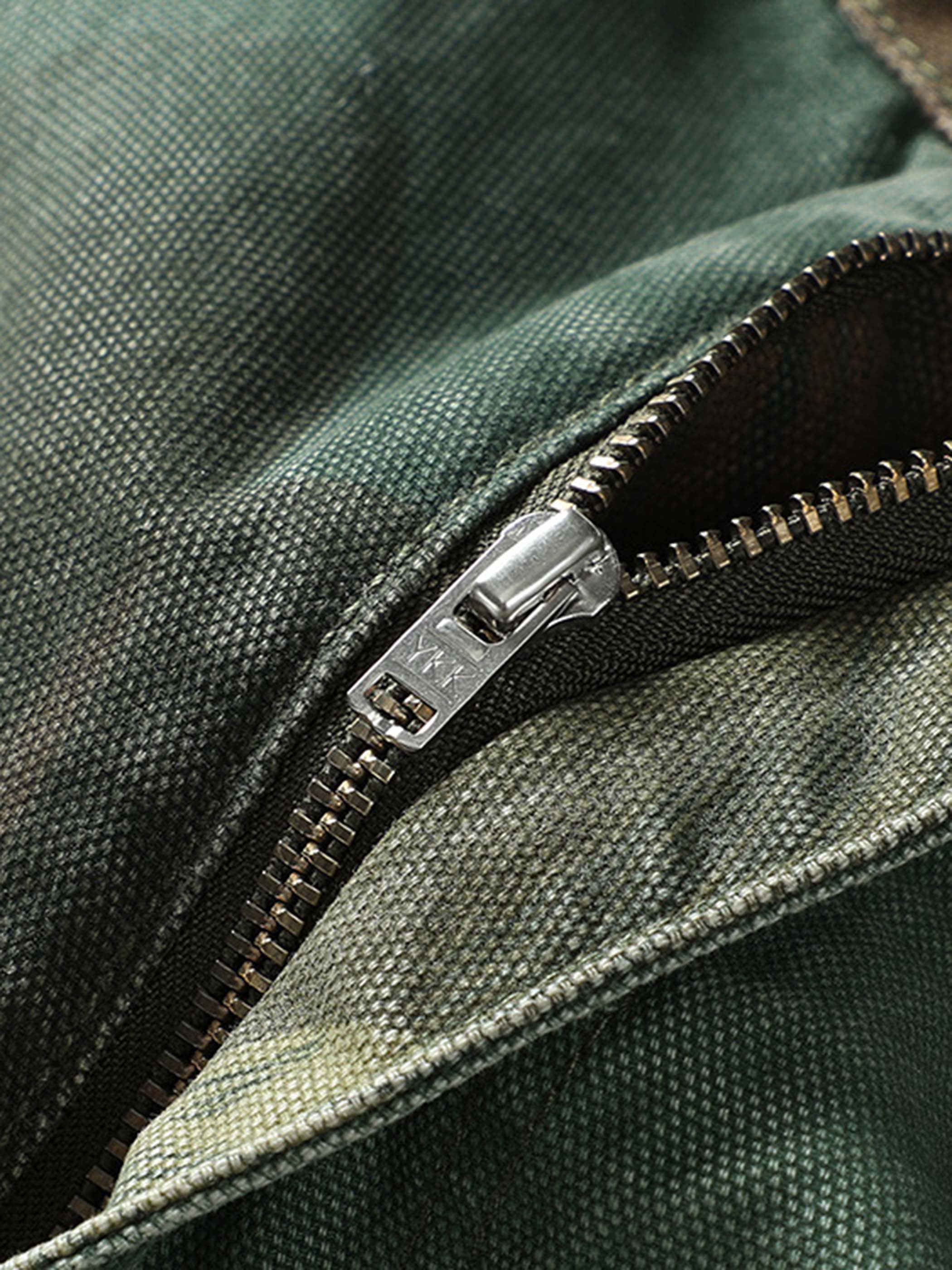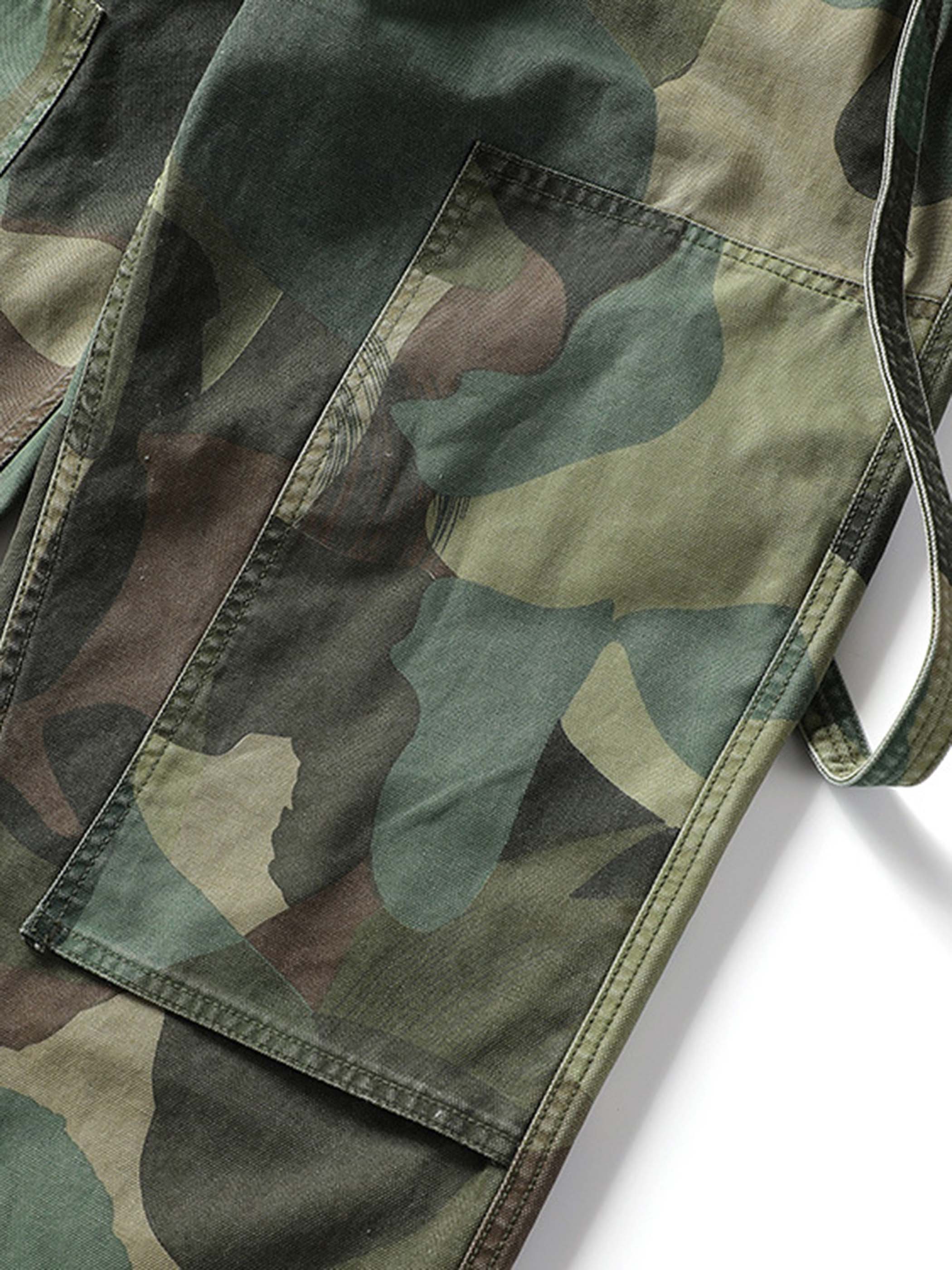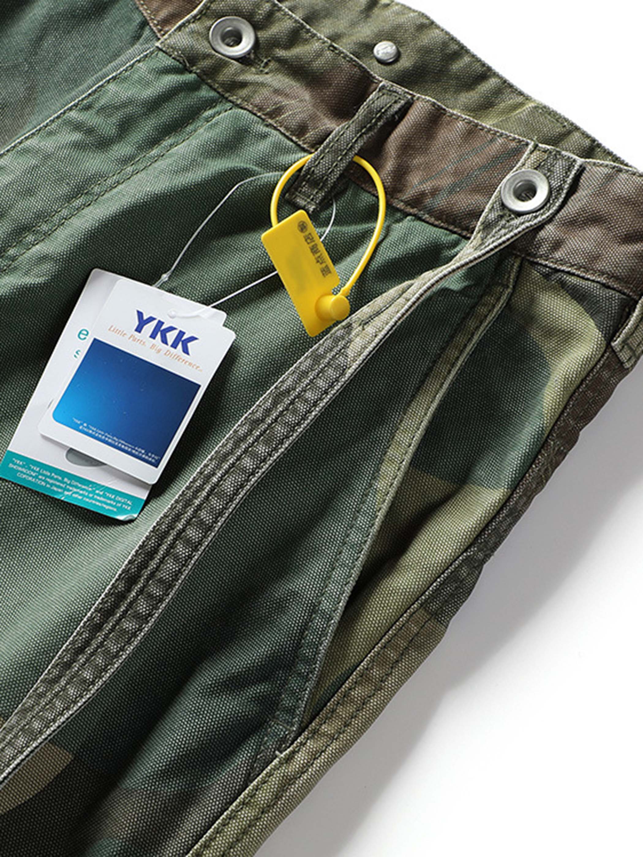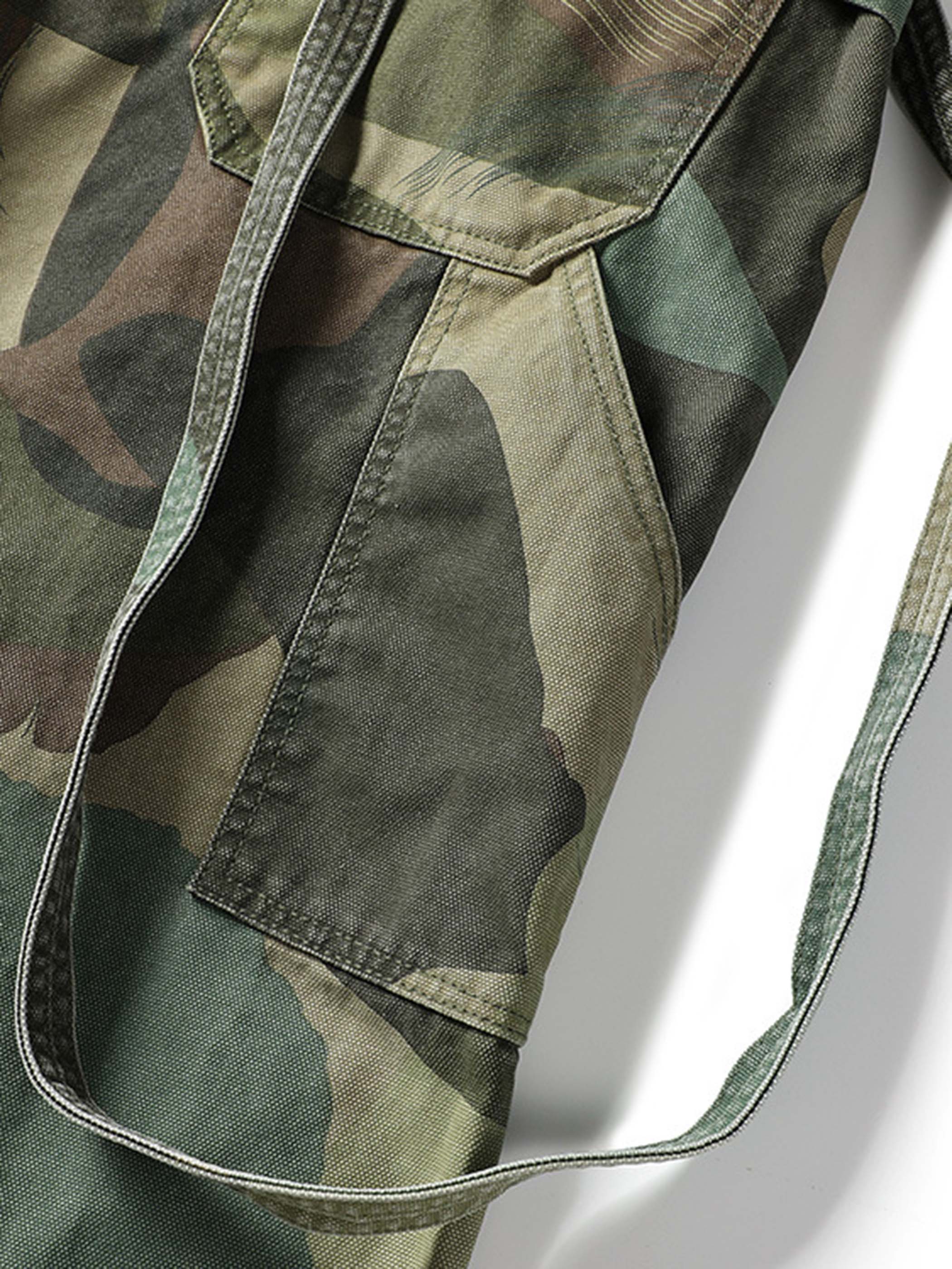このワークパンツは、高密度で重量感のあるコットン素材を使用し、耐久性と快適な着心地を実現しています。背面とフロントをつなぐサスペンダーデザインが目を引き、アメカジ風のカーキテイストと日系ヴィンテージの雰囲気が同時に楽しめるデザインです。ルーズなストレートシルエットが脚まわりをしっかりカバーしつつ、動きやすさを確保。大きなパッチポケットや複数のポケット配置により、スマートフォンや財布などの日常必需品をまとめて収納可能です。カラーはブラック、ヴィンテージグリーン、ライトカモ、ダークカモの4色展開で、色ごとに異なる雰囲気を楽しむことができ、アウトドアからストリートまで幅広いシーンに対応する一着です。