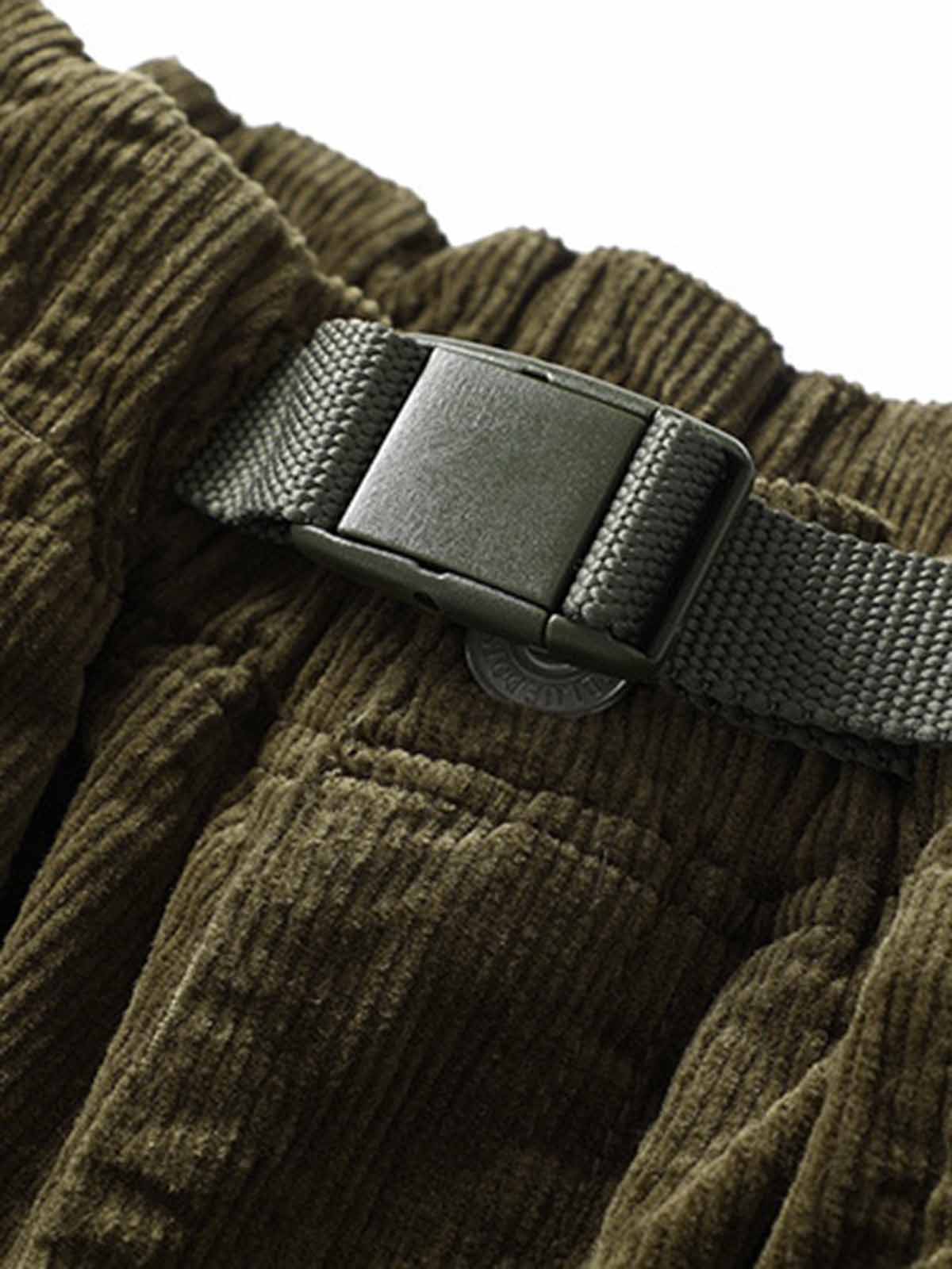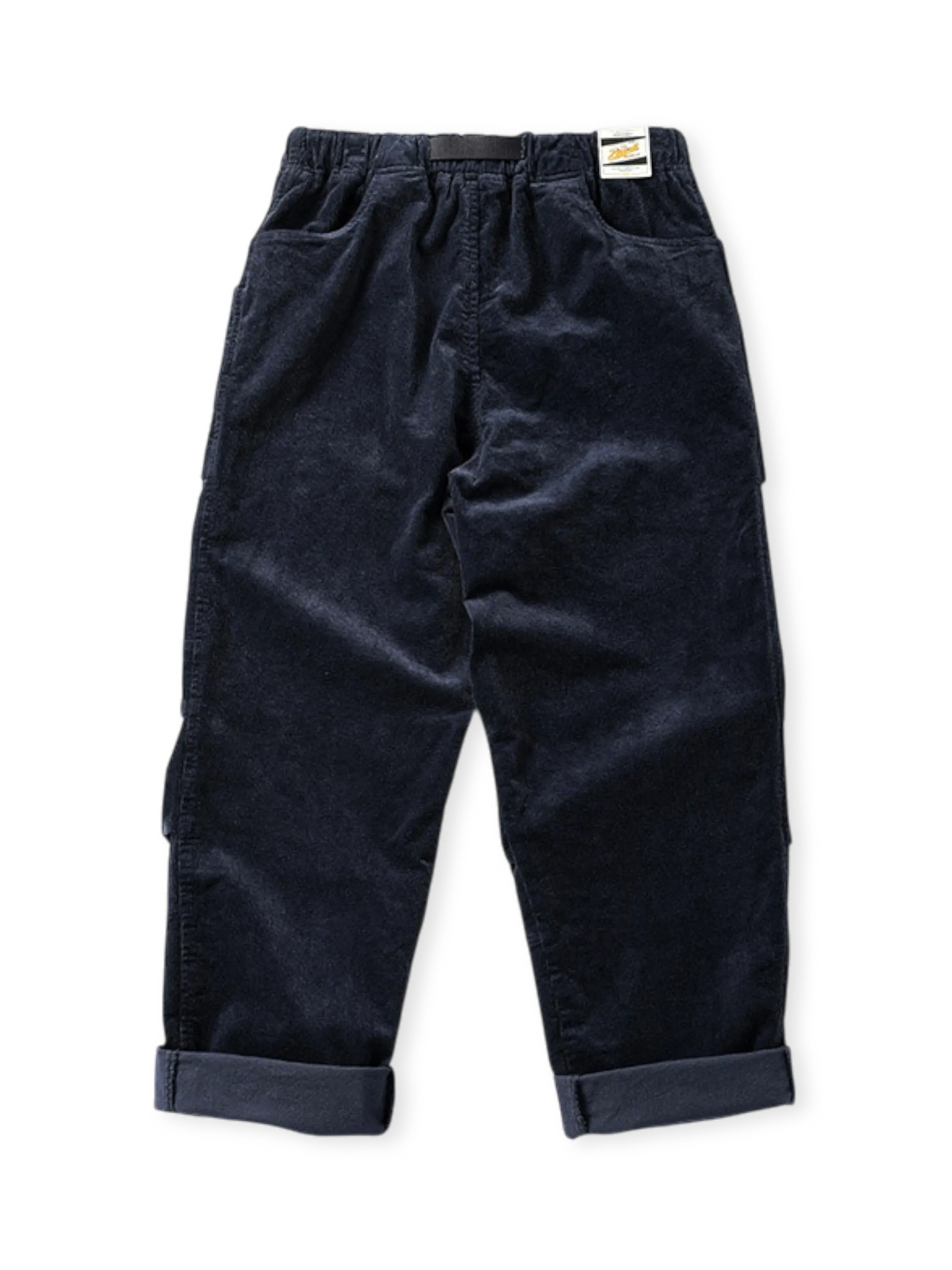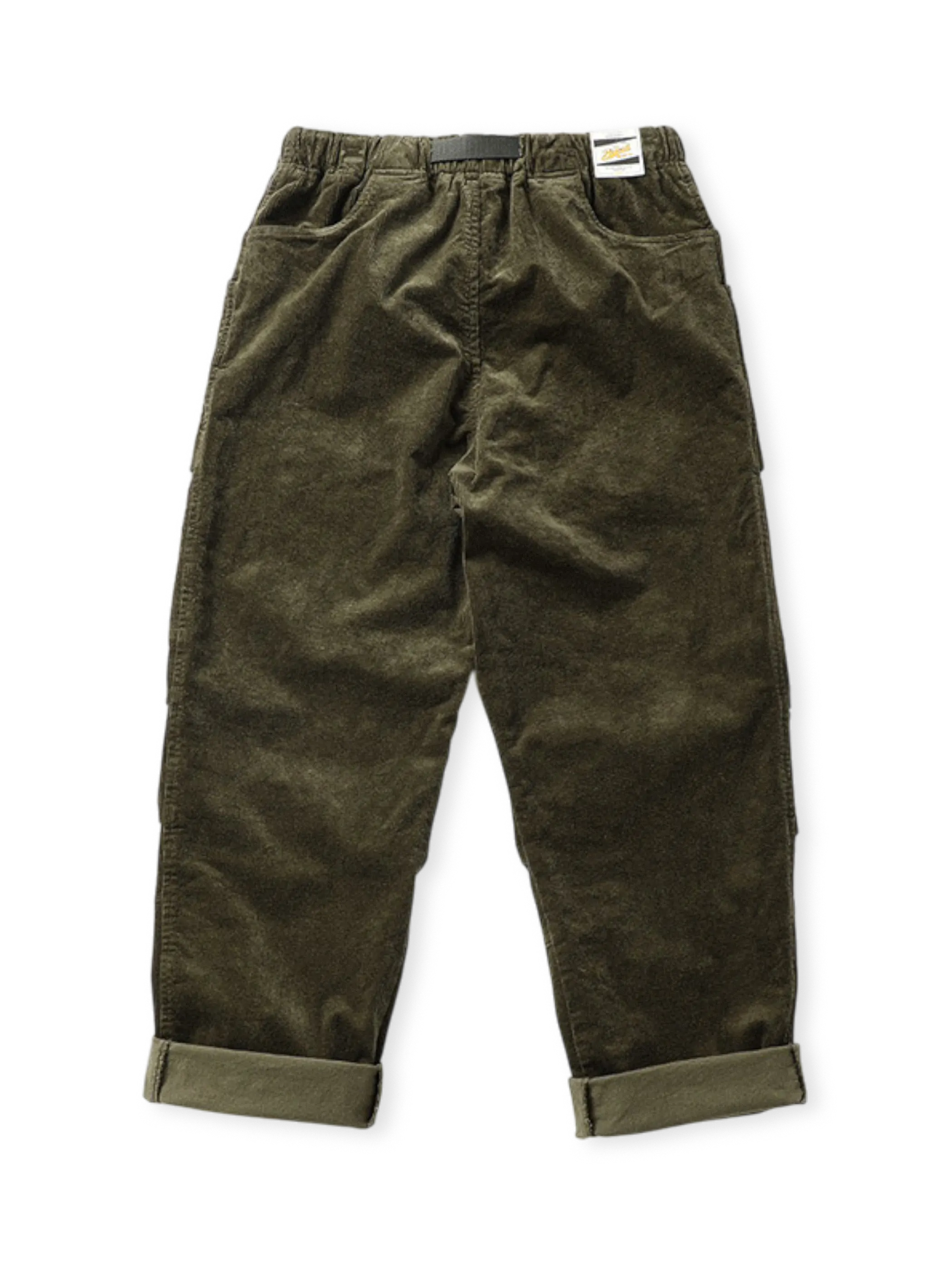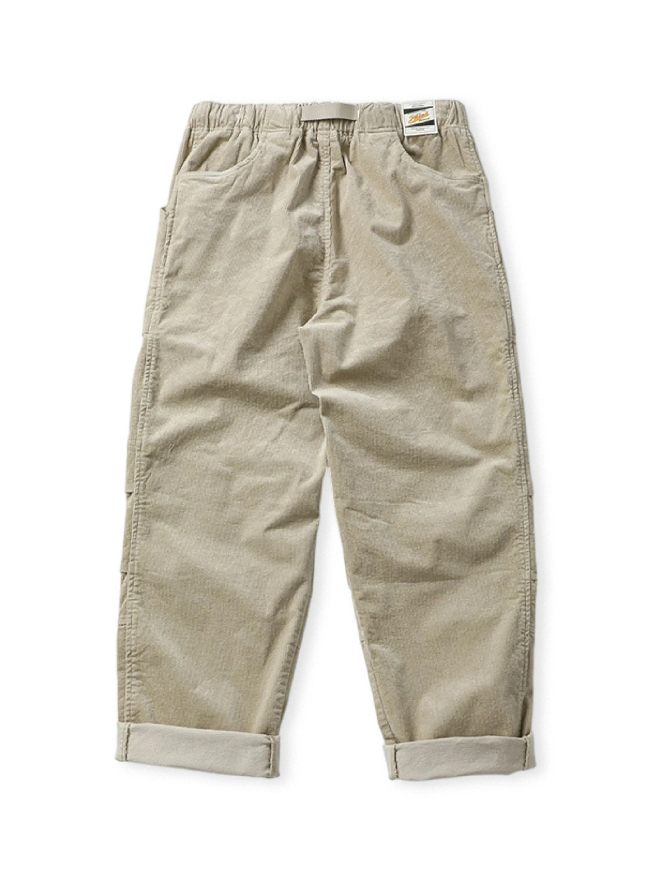 着心地と機能性を兼ね備えたルーズフィットのパンツ。高密度コードロイ生地のヴィンテージ風ワークテイストと、膝のダブルタック・調節可能ウエストがアウトドアやストリートスタイルに最適です。