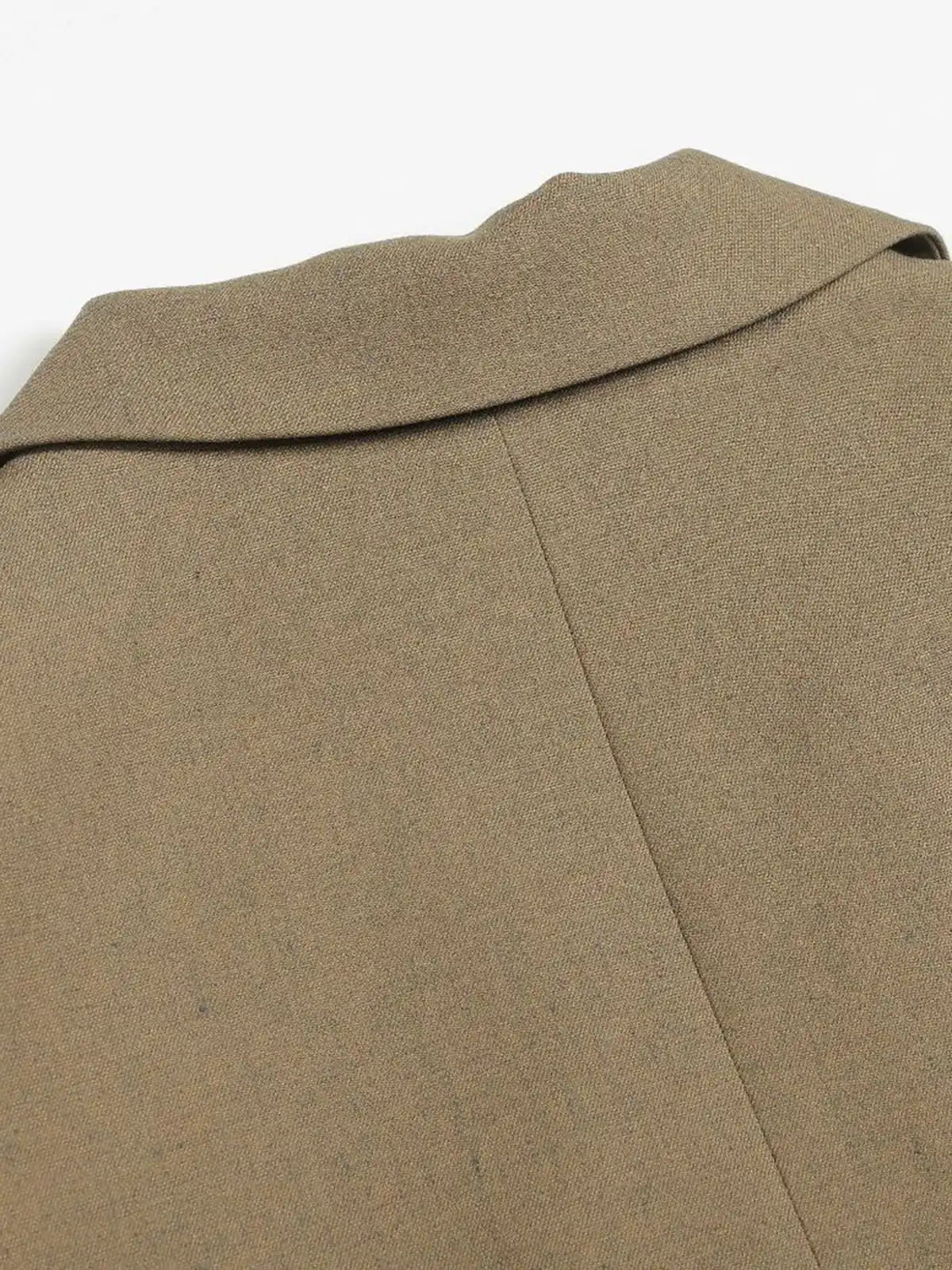 ダブルブレストの起源は19世紀の海軍ジャケットにあり、その端正な前立てと計算されたボタン位置は今も男性の品格を高めます。本作は歴史的ディテールをそのままに、全身を覆わないショート丈とドロップショルダーで軽快に仕立て、100%ポリエステル生地は撥水・防シワ性を発揮。ラフなTシャツとスリムデニムに合わせるだけで、程よいフォーマル感とカジュアル感を両立します。