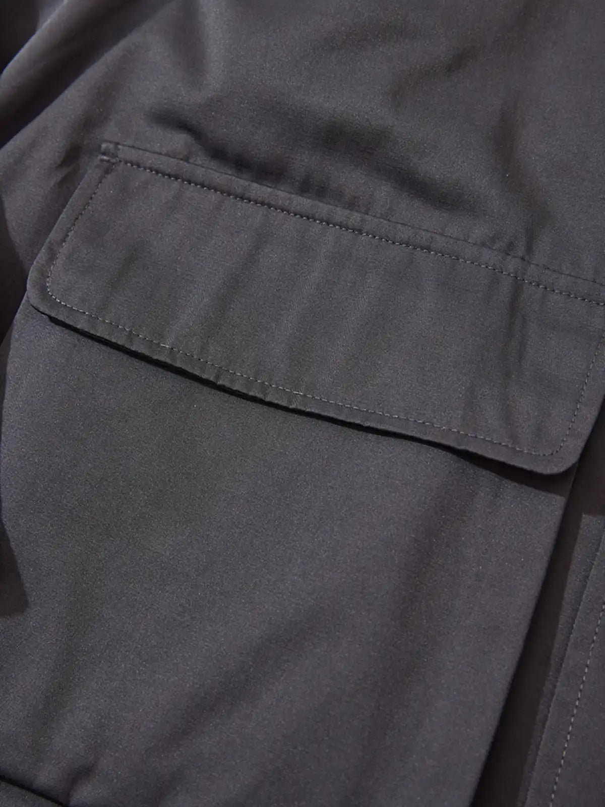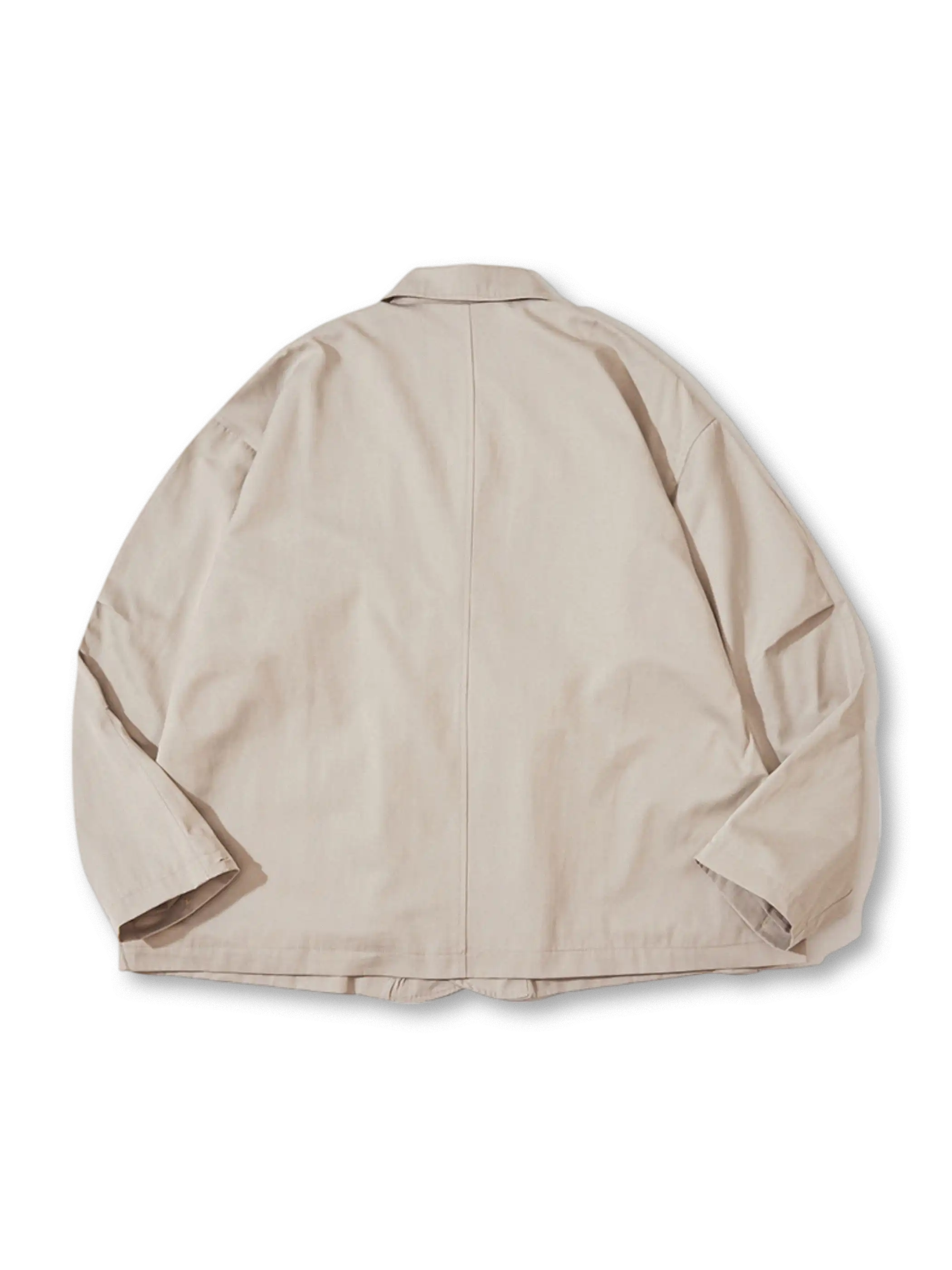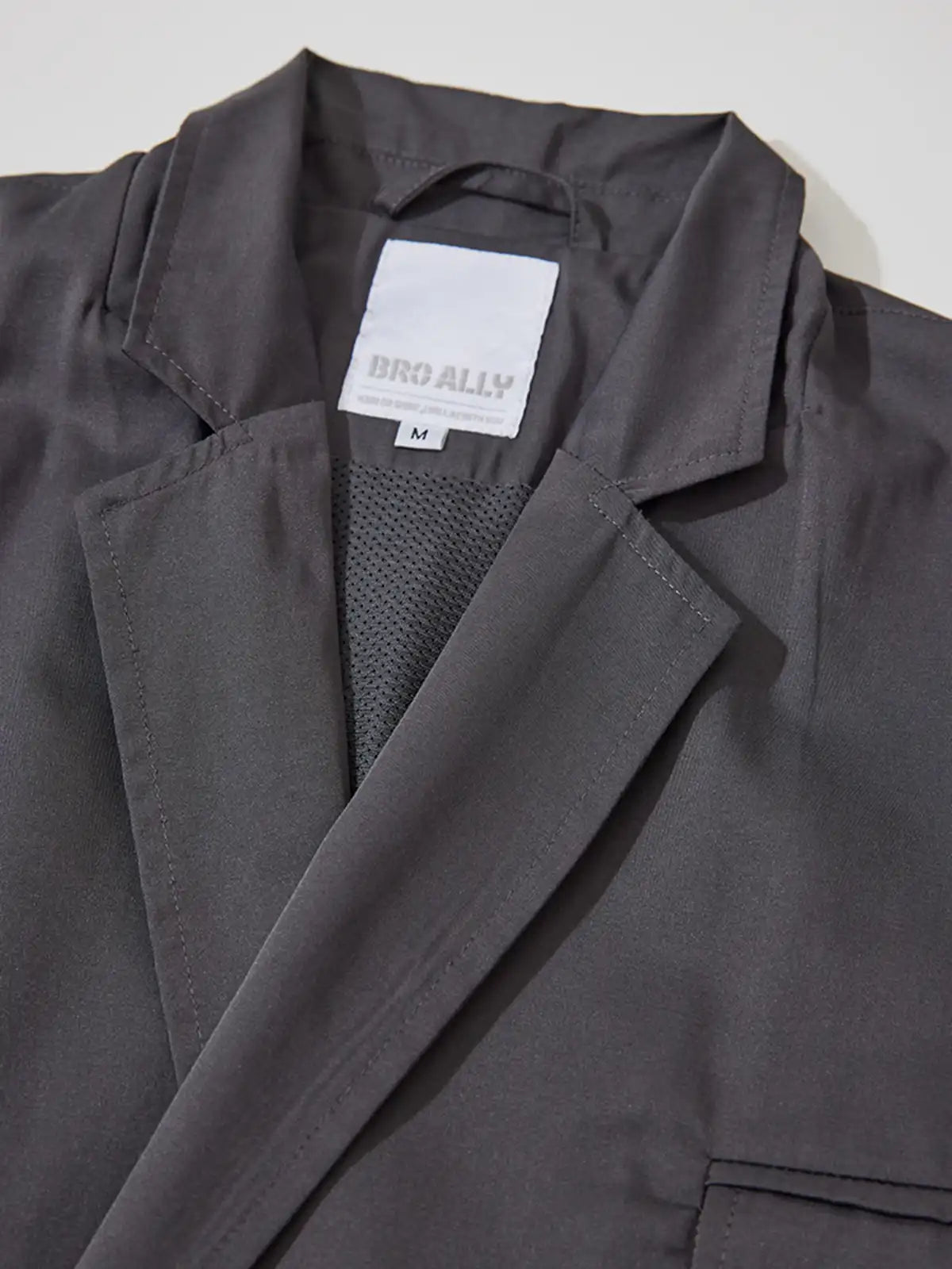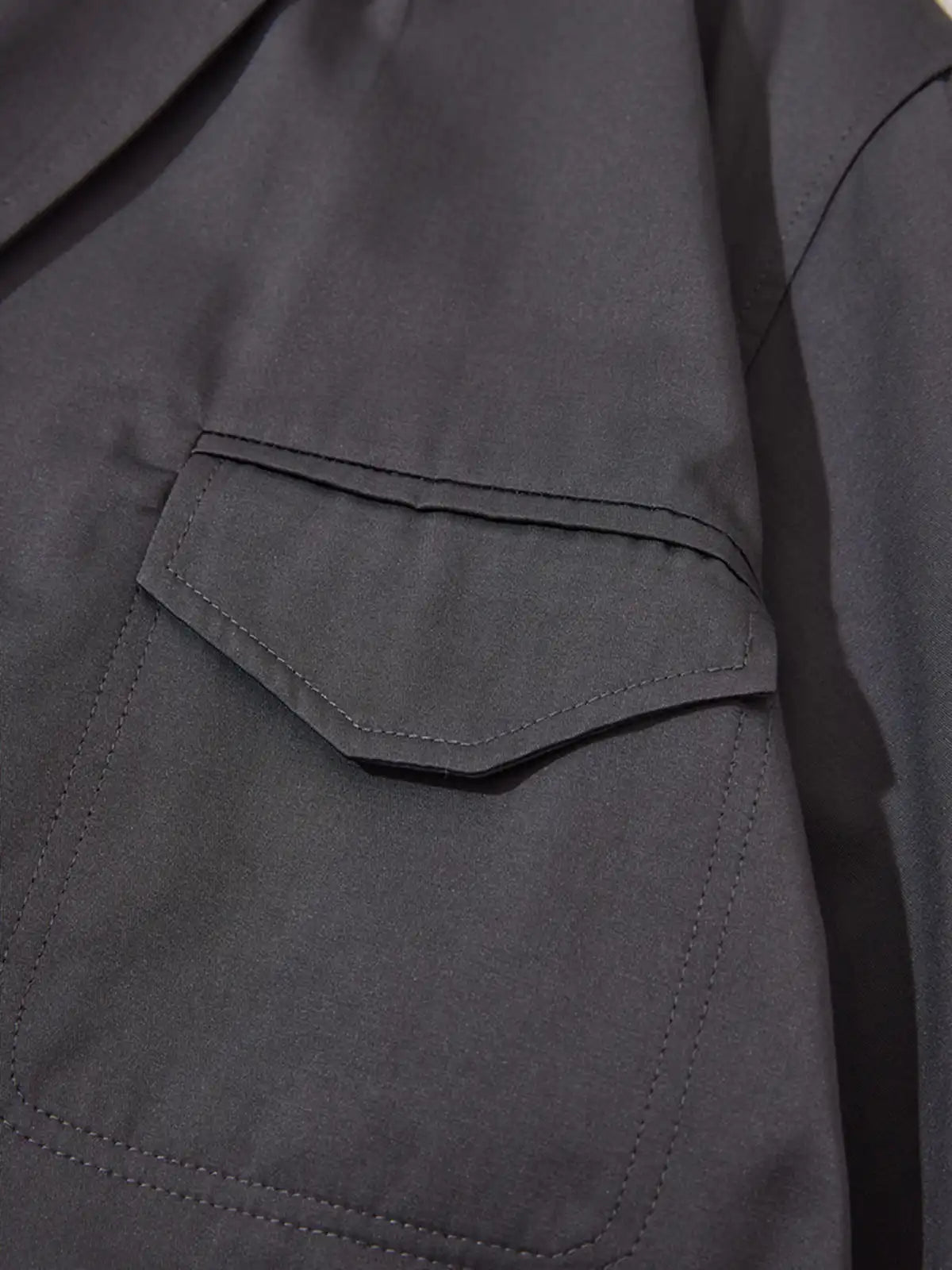 ミリタリー由来の多ポケットディテールを持つ綿ポリ混紡リップストップ素材で仕立てた、上品さと実用性を両立するテーラードジャケットです。