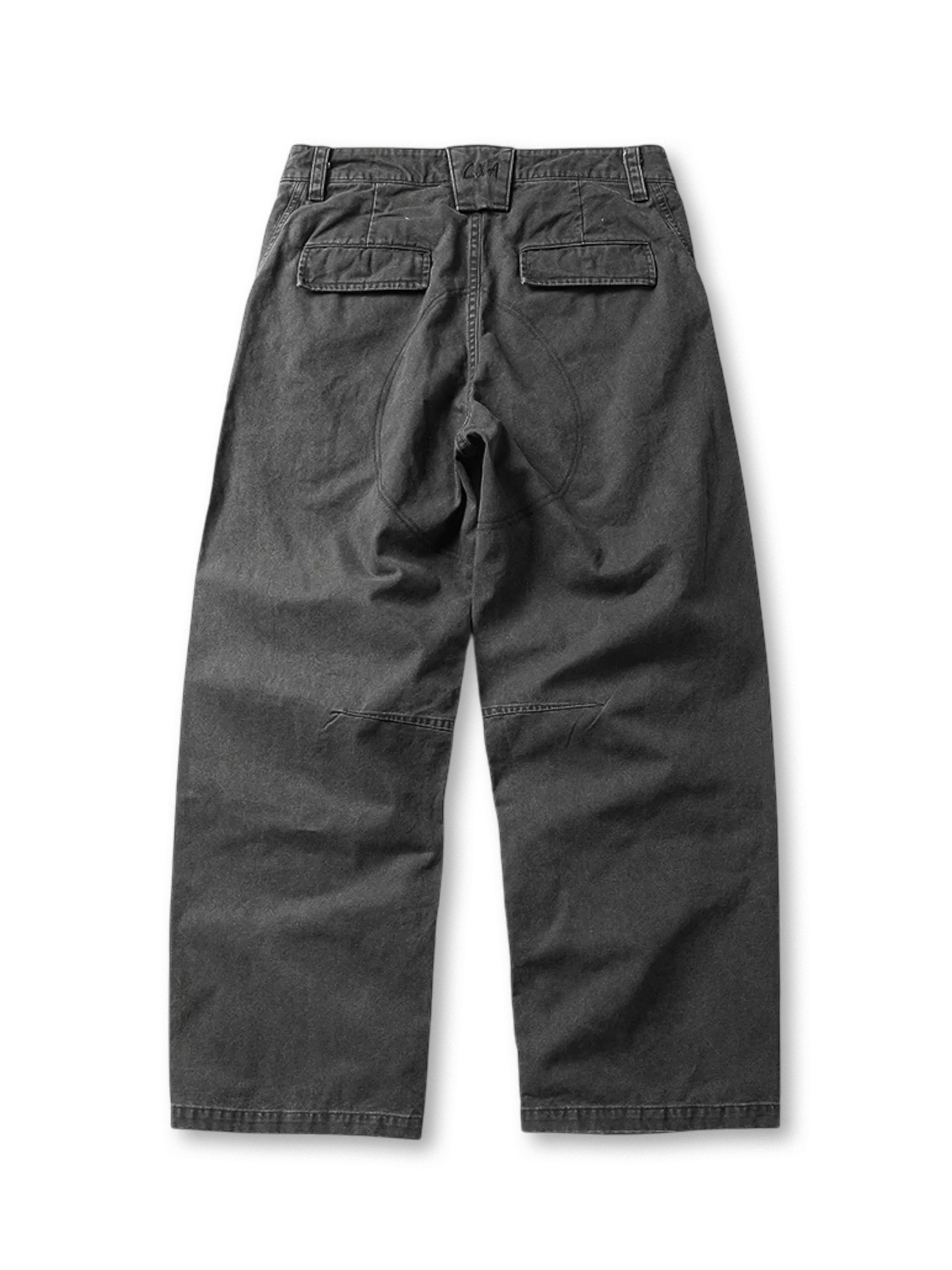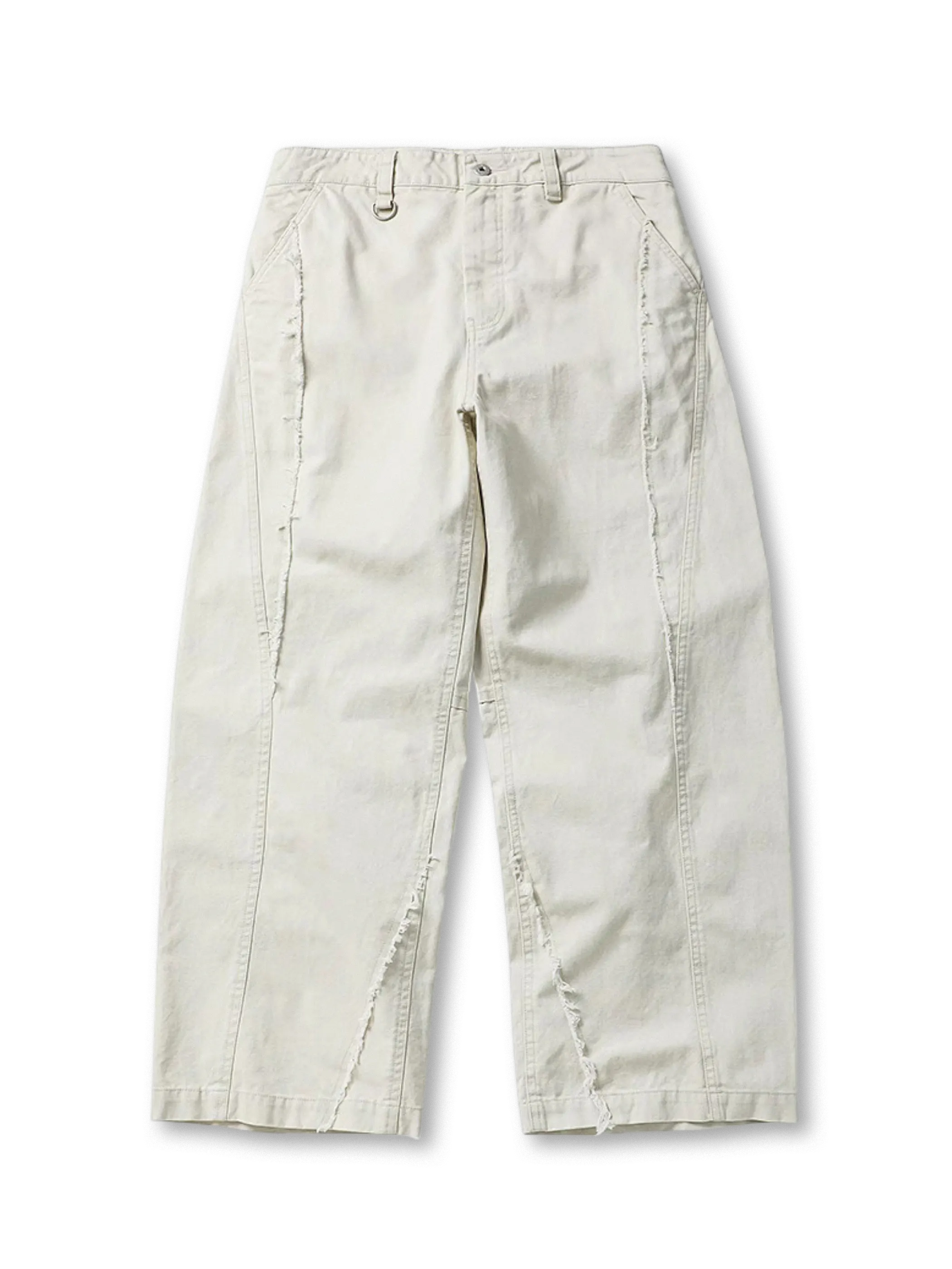 美しいサンドウォッシュ仕上げとカットオフデザインが特徴のヴィンテージ風長ズボン。
