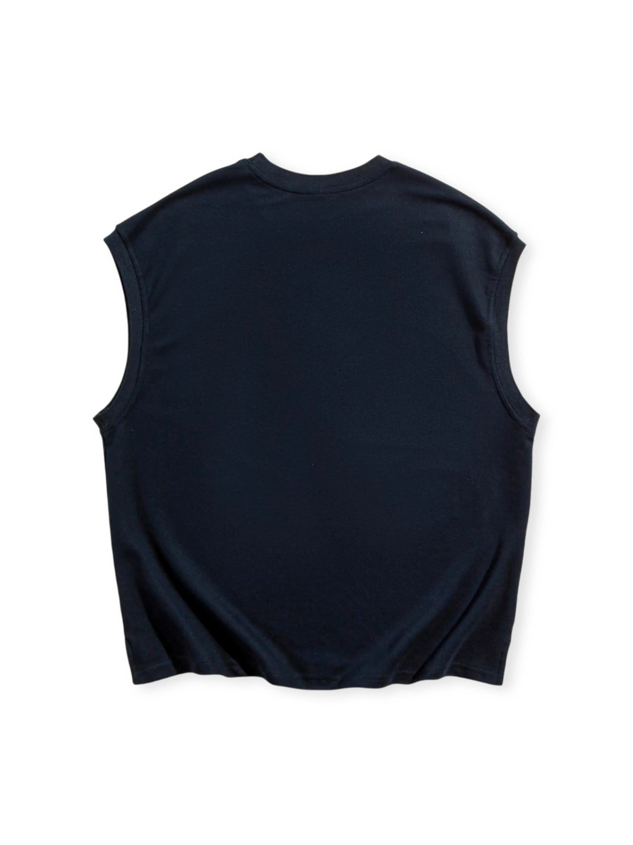 快適な混紡素材とシンプルなノースリーブデザインに、パズル風刺繍がアクセントとなり、どんなシーンにも合わせやすい洗練されたカジュアルスタイルを実現する一着です。
