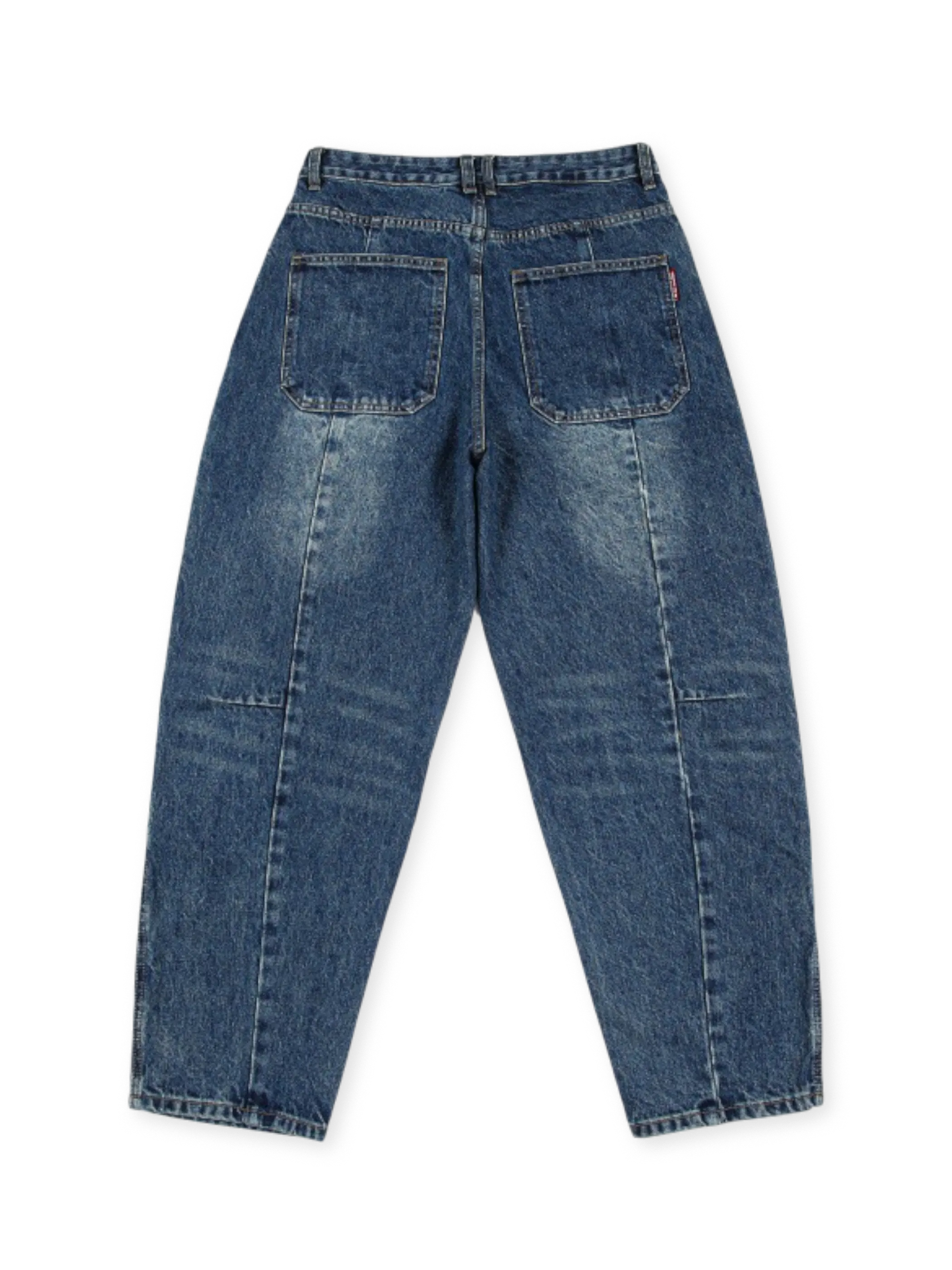加工を組み合わせた、ルーズなストレートシルエットで個性を際立たせるストリートスタイルのデニムパンツです。