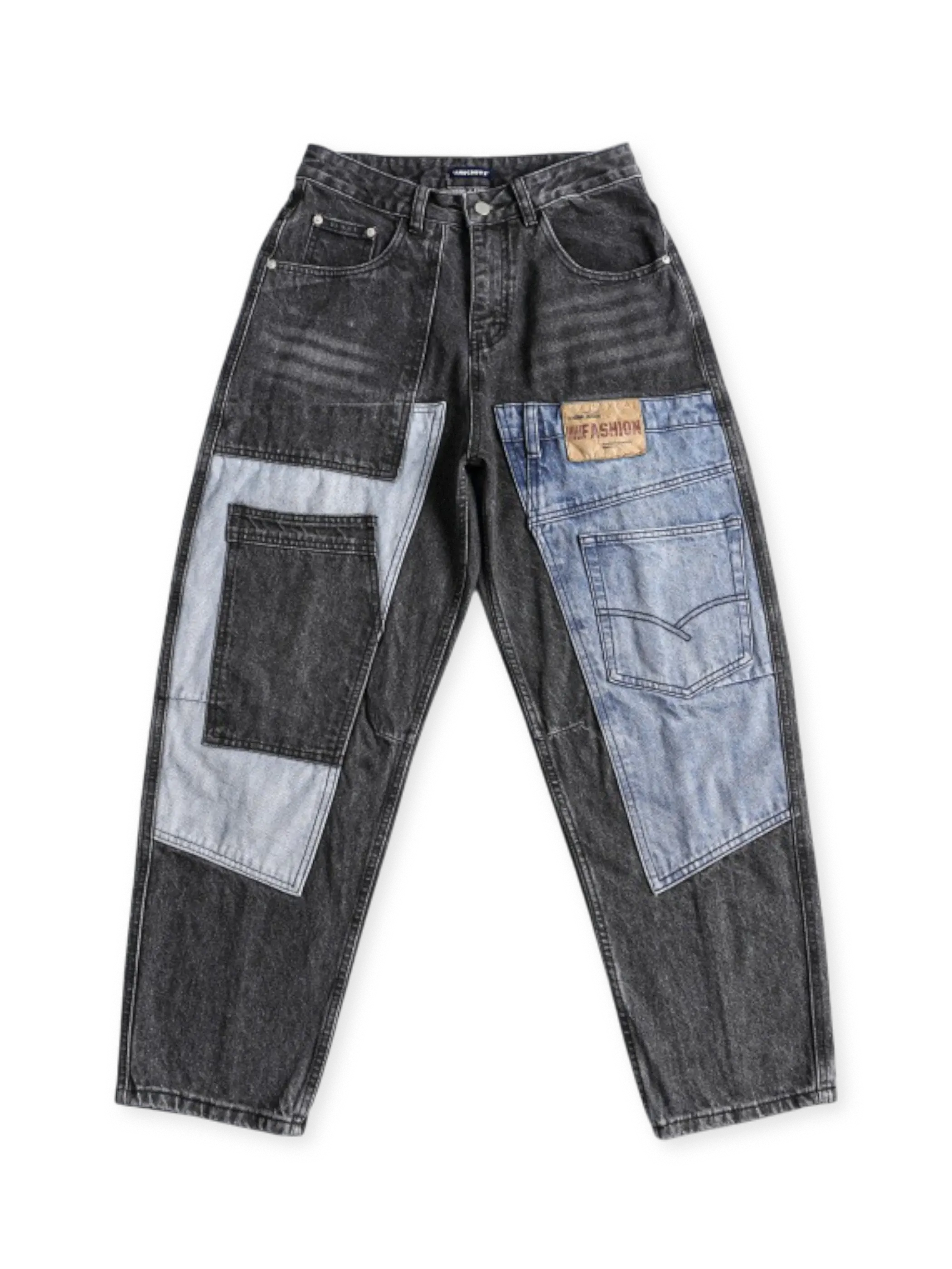 このデニムパンツは、複数のデニム生地をパッチワーク状に組み合わせ、ヴィンテージ感あふれるウォッシュ加工で仕上げた、まさに補修風デザインが特徴の一本です。ストレートワイドなシルエットが脚まわりのラインを美しくカバーしつつ、動きやすさを確保。素材は主にコットンを中心とした再生繊維混紡で、柔らかな肌触りと適度な耐久性を兼ね備えています。シンプルなトップス、例えばオーバーサイズのスウェットやヴィンテージシャツと合わせるだけで、ストリートテイストの個性的なコーディネートが完成するため、通勤から週末のお出かけまで幅広いシーンで活躍します。