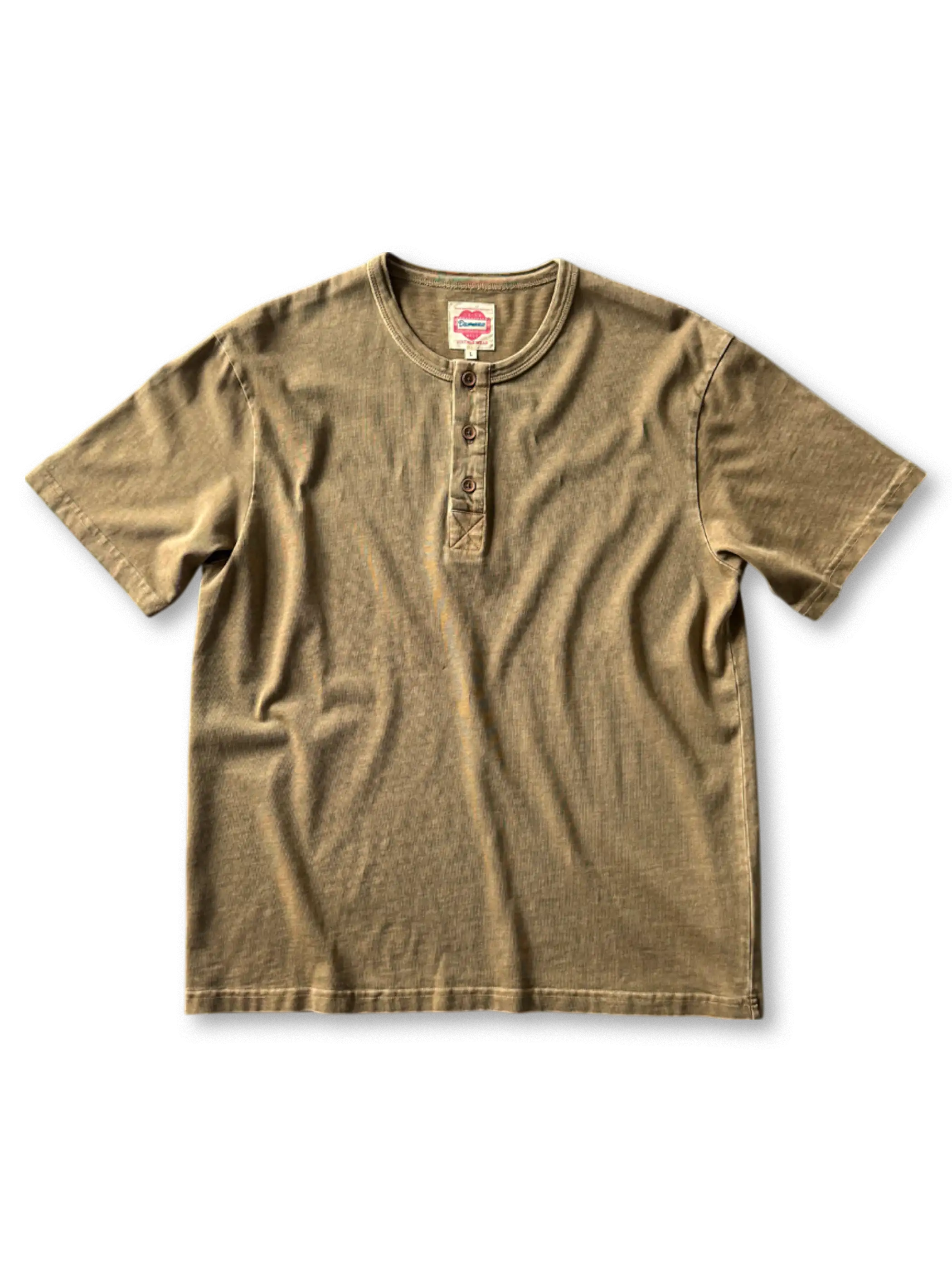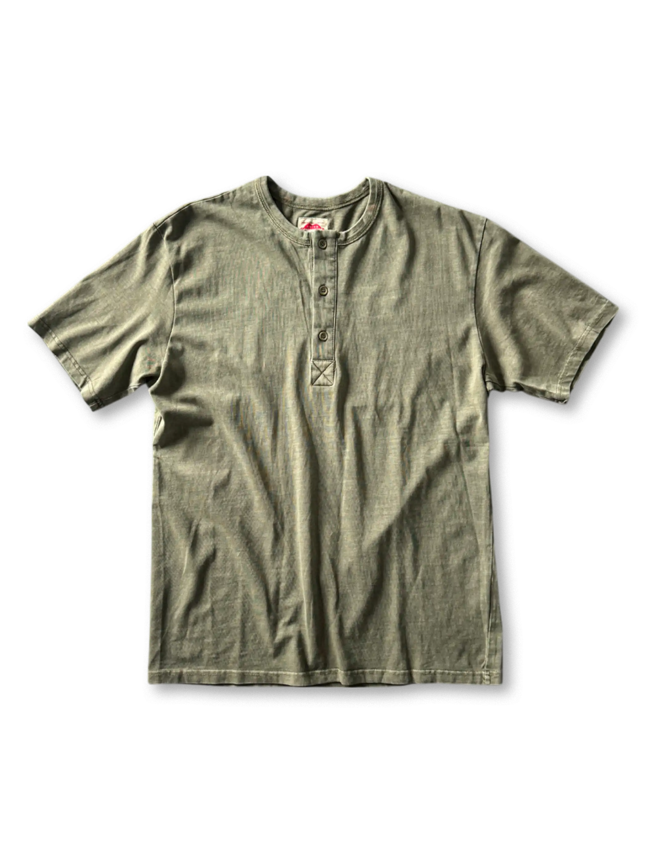 ワークウェア由来のヘンリーネックが米国古着の無骨な男らしさを体現するスリムフィットTシャツ。