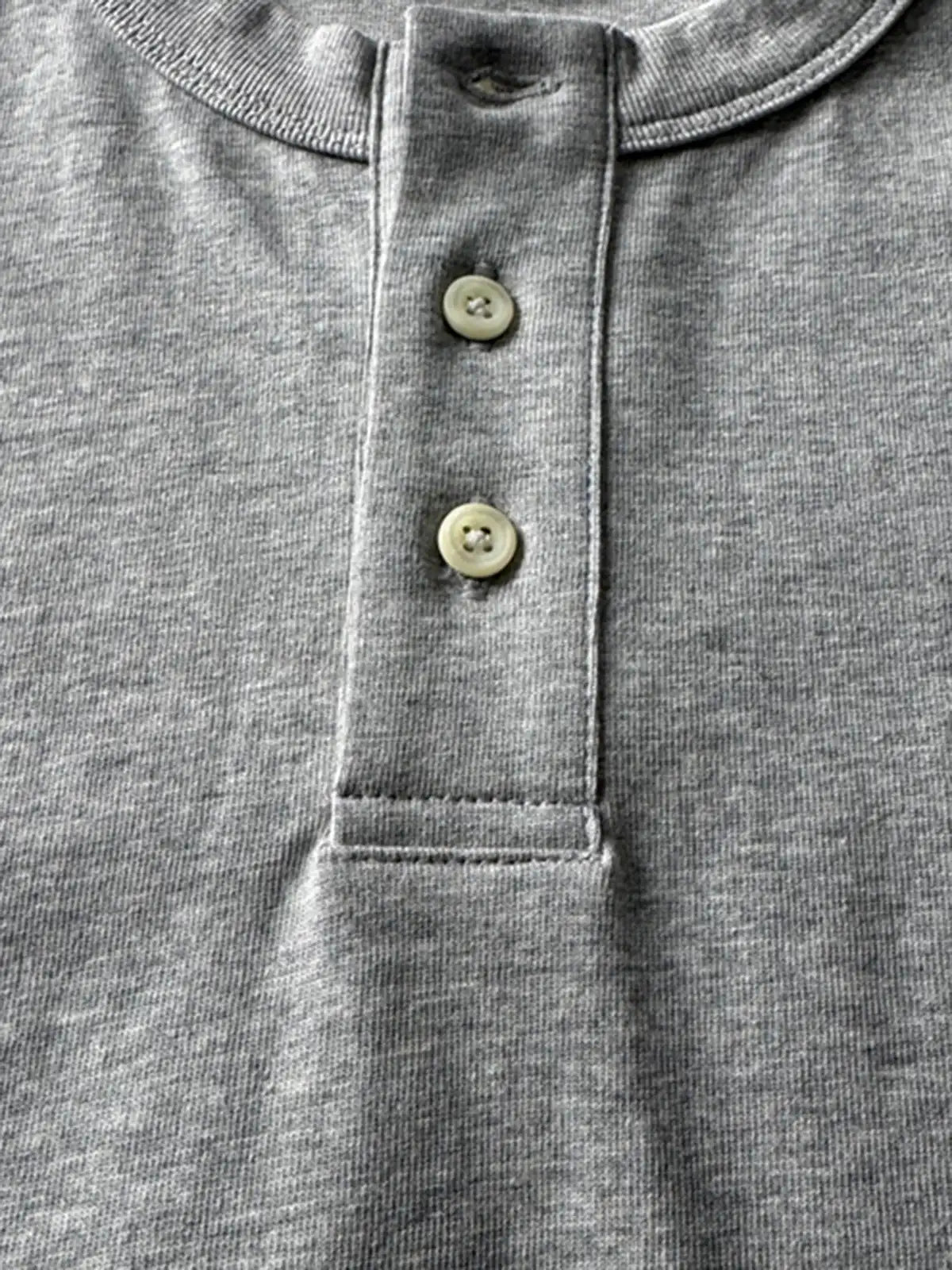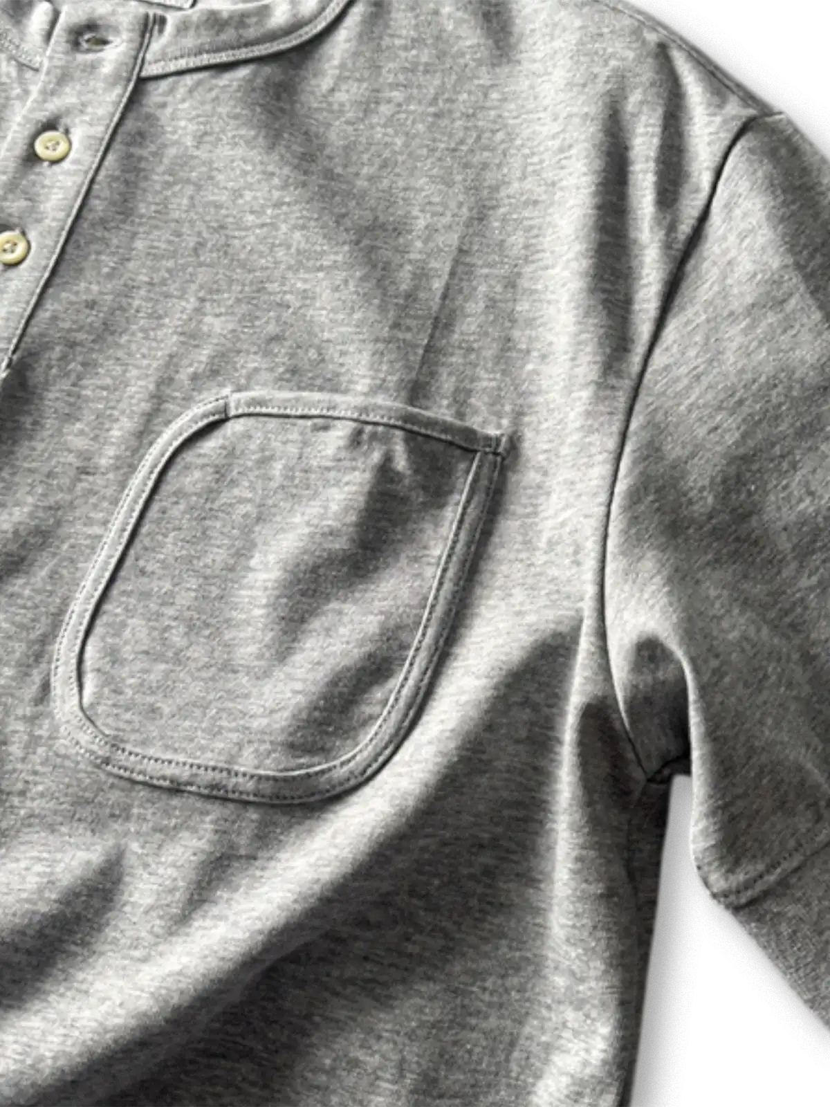 ミニマルなヘンリーネックとリブ袖口が洗練された、真夏の定番100%コットンTシャツ。