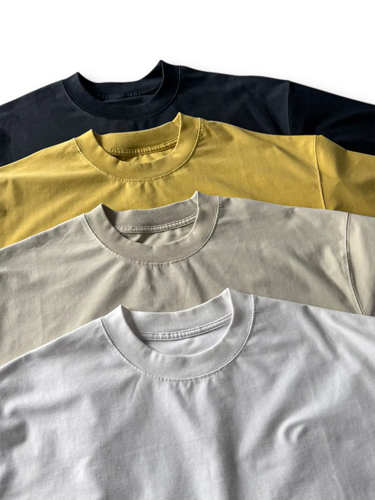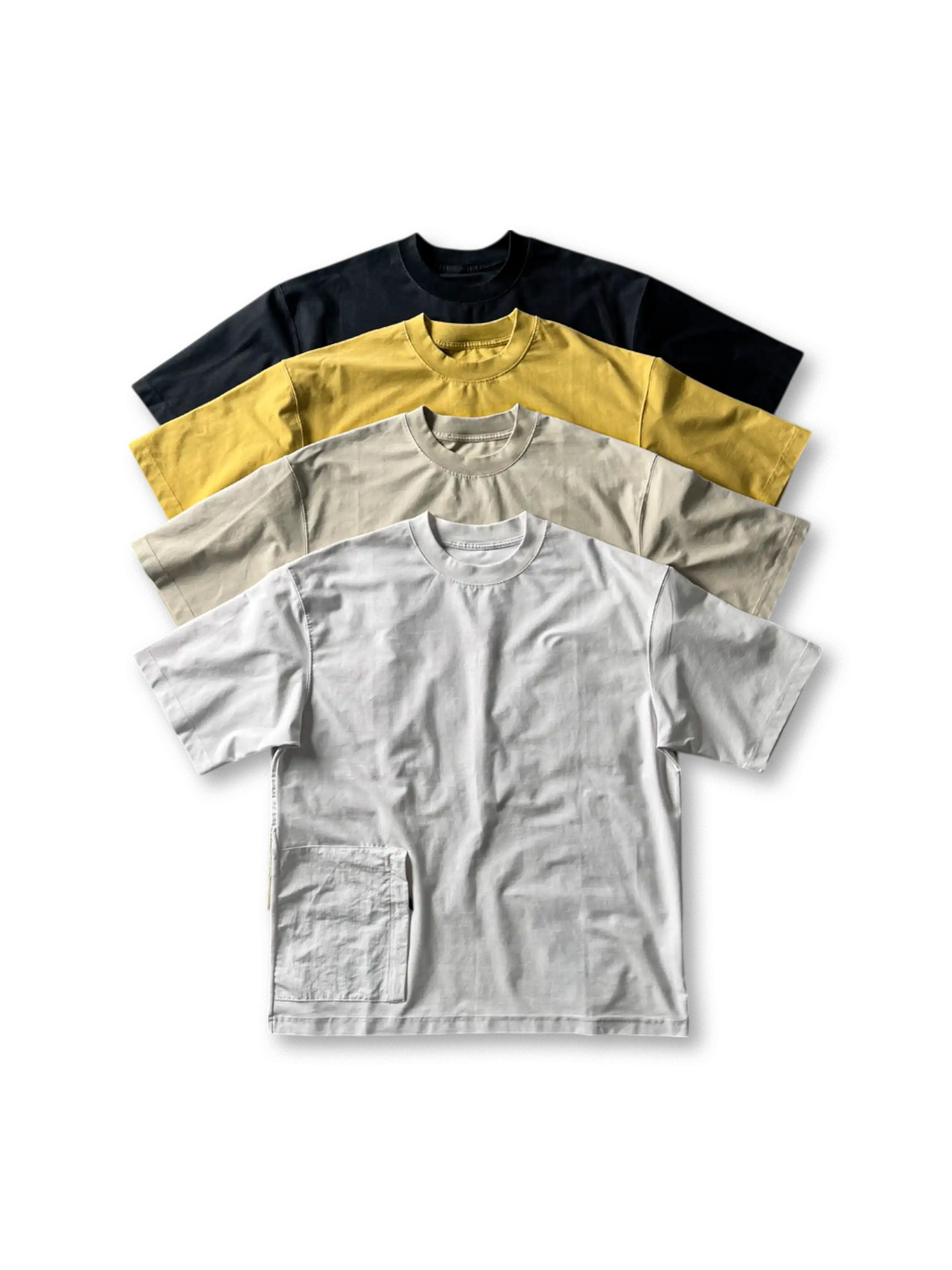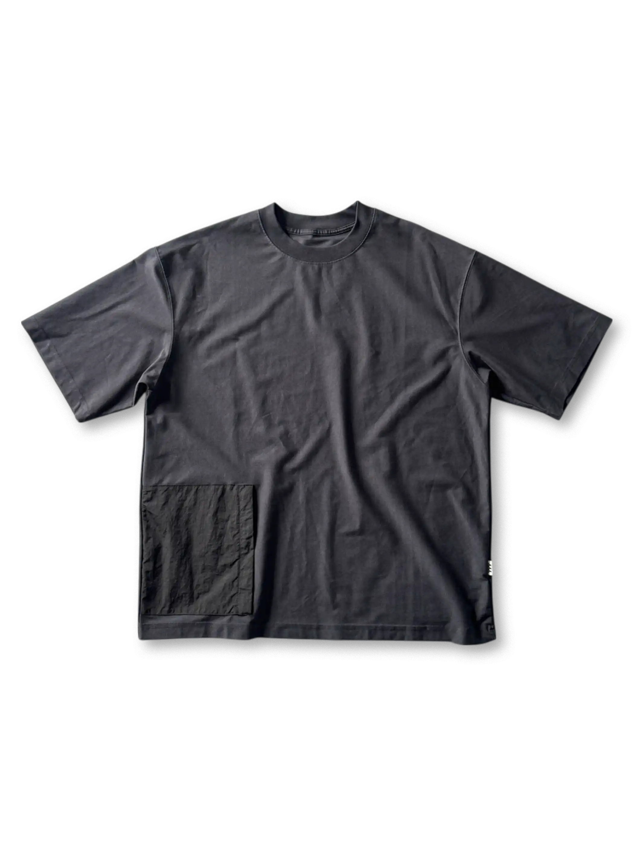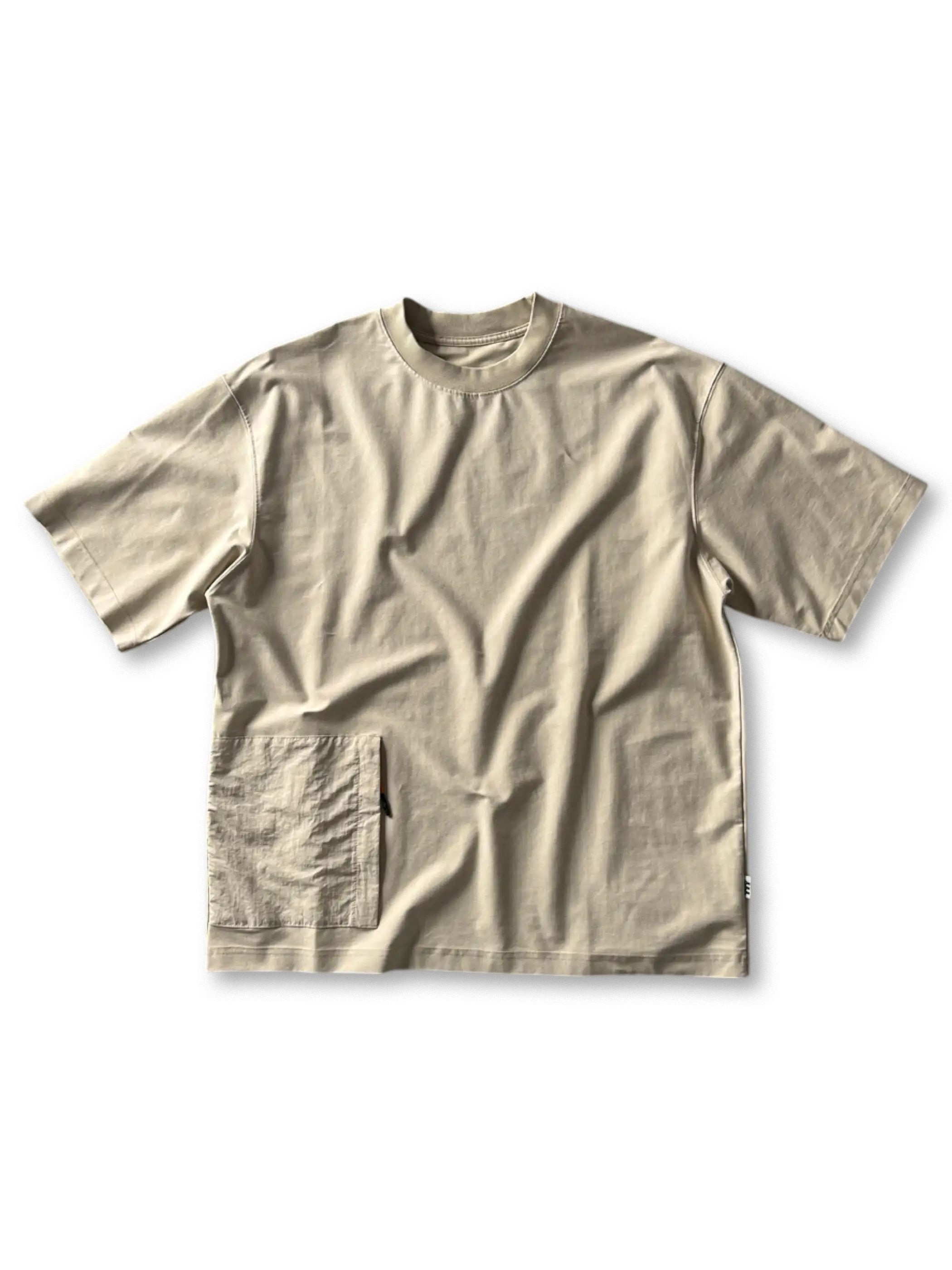 二段階ウォッシュ加工と機能的サイドポケットが都会と山岳をつなぐ、重厚感あふれるワイドTシャツ。