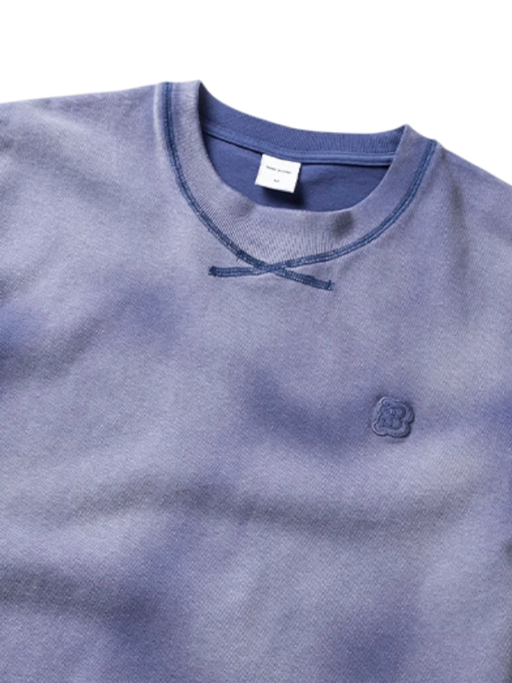 100%コットンのミディアムライト生地に、ガーメントダイ加工と碧紋ウォッシュ、さらに炒雪花ウォッシュ加工を組み合わせることで、柔らかさと独特な色ムラを生み出しています。ルーズフィットのシルエットはリラックスした着心地を提供し、シンプルなクルーネックデザインがカジュアルなコーディネートに最適。春夏のデイリーウェアやレイヤードスタイルとしても使いやすい、万能な一着です。