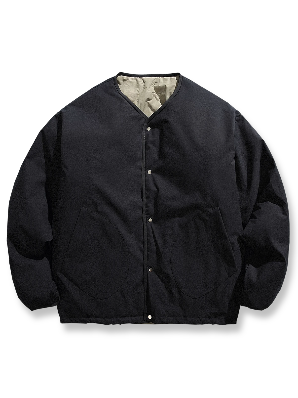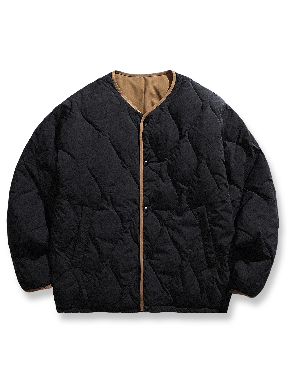 レトロなデザインと実用性を両立した、冬にぴったりのリバーシブルVネックダウン。