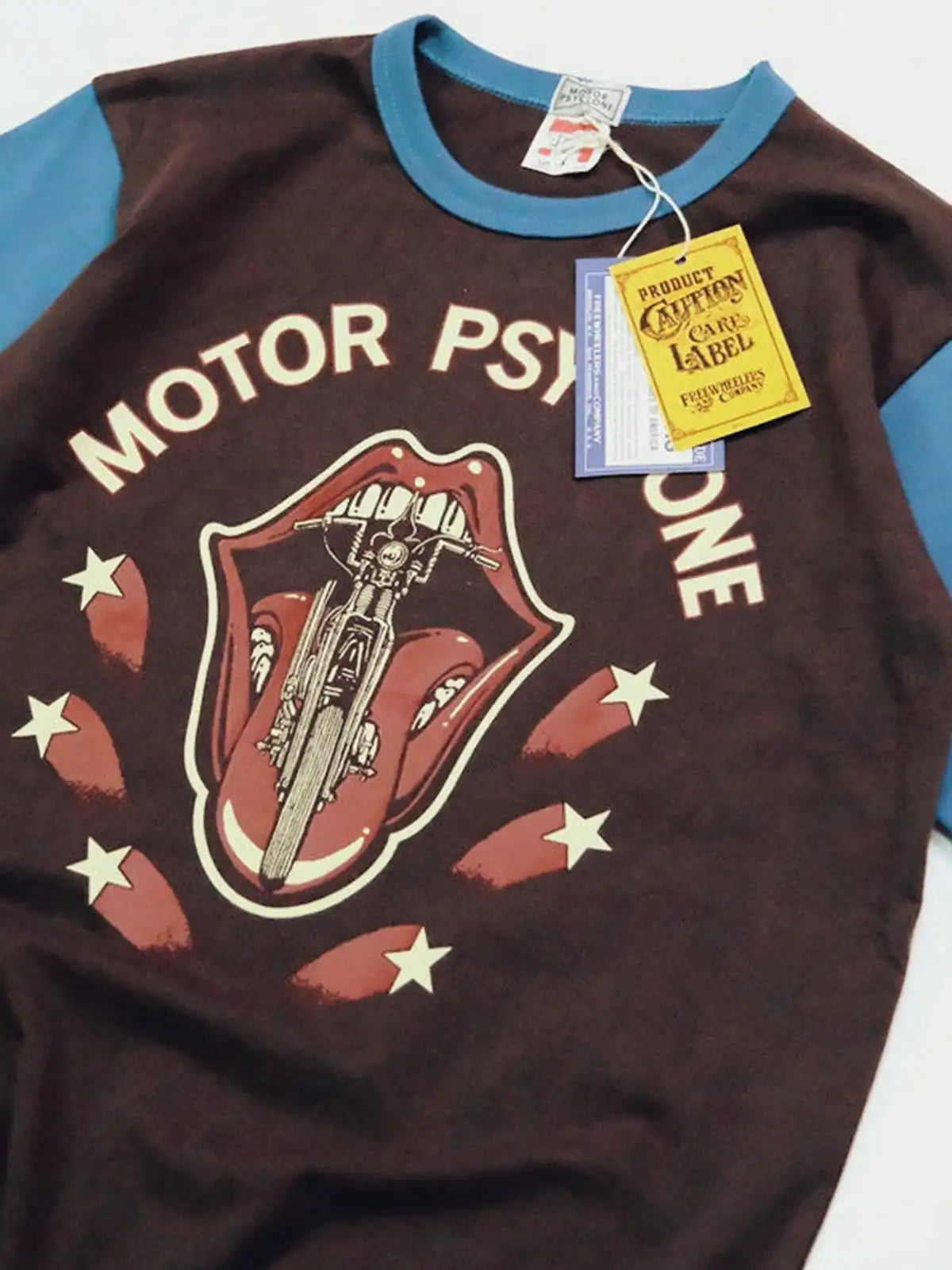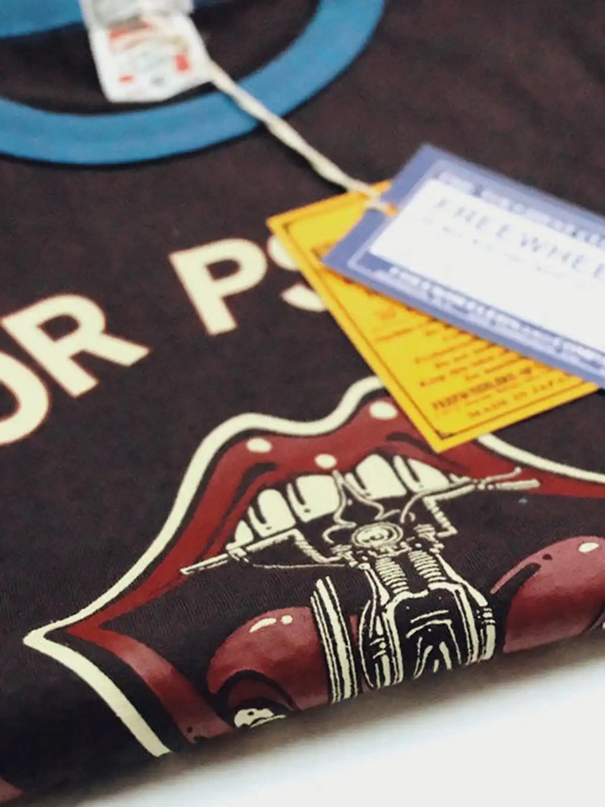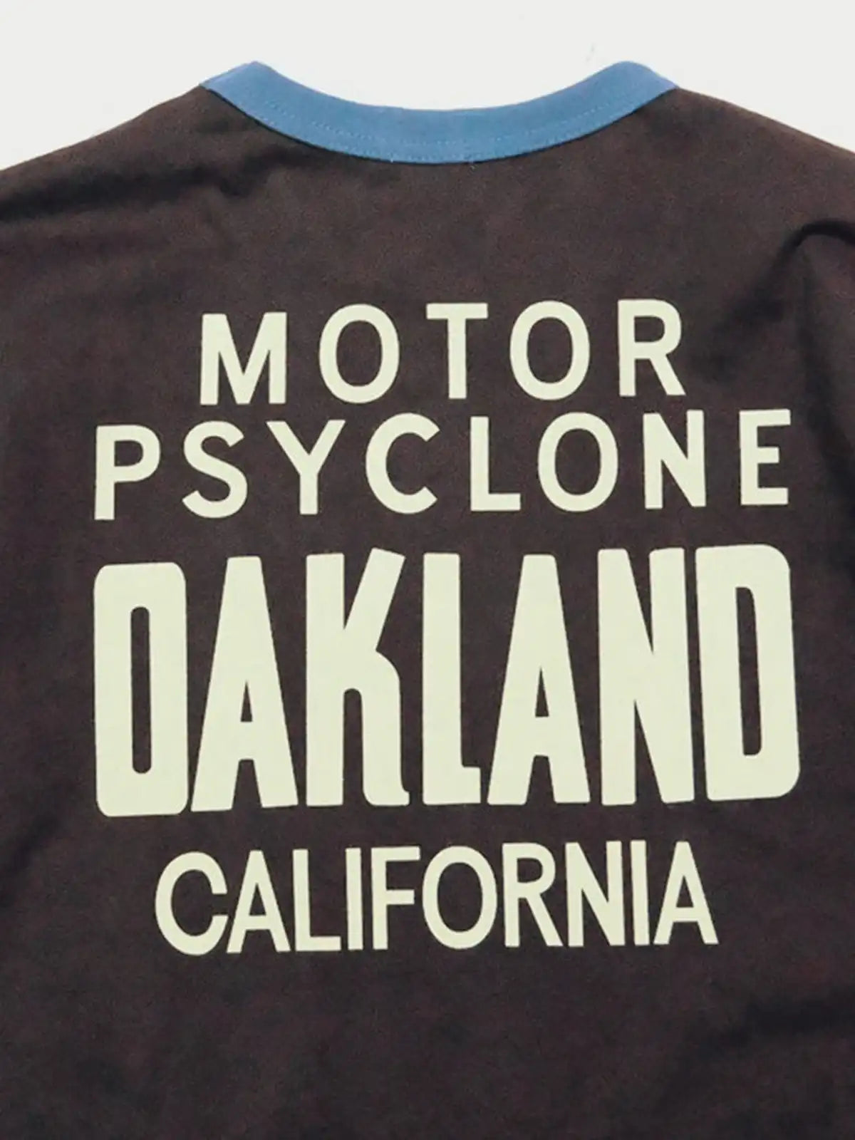 1969年12月6日のオルタモントスピードウェイで起きたロックコンサートの悲劇を背景に、モーターサイクロンのロゴとバイクを組み合わせたフロントデザインは当時の熱狂と衝撃を表現し、背面の“OAKLAND CALIFORNIA”プリントが歴史性を強調。軽量でサラリとしたドライタッチの100%コットン生地は夏の着用に最適で、ラバープリントはあえてひび割れやすい仕様とすることで、着込むほどにヴィンテージの深みが増す。シンプルなボトムスと合わせれば、ストリートにもフェスシーンにも映える一着。