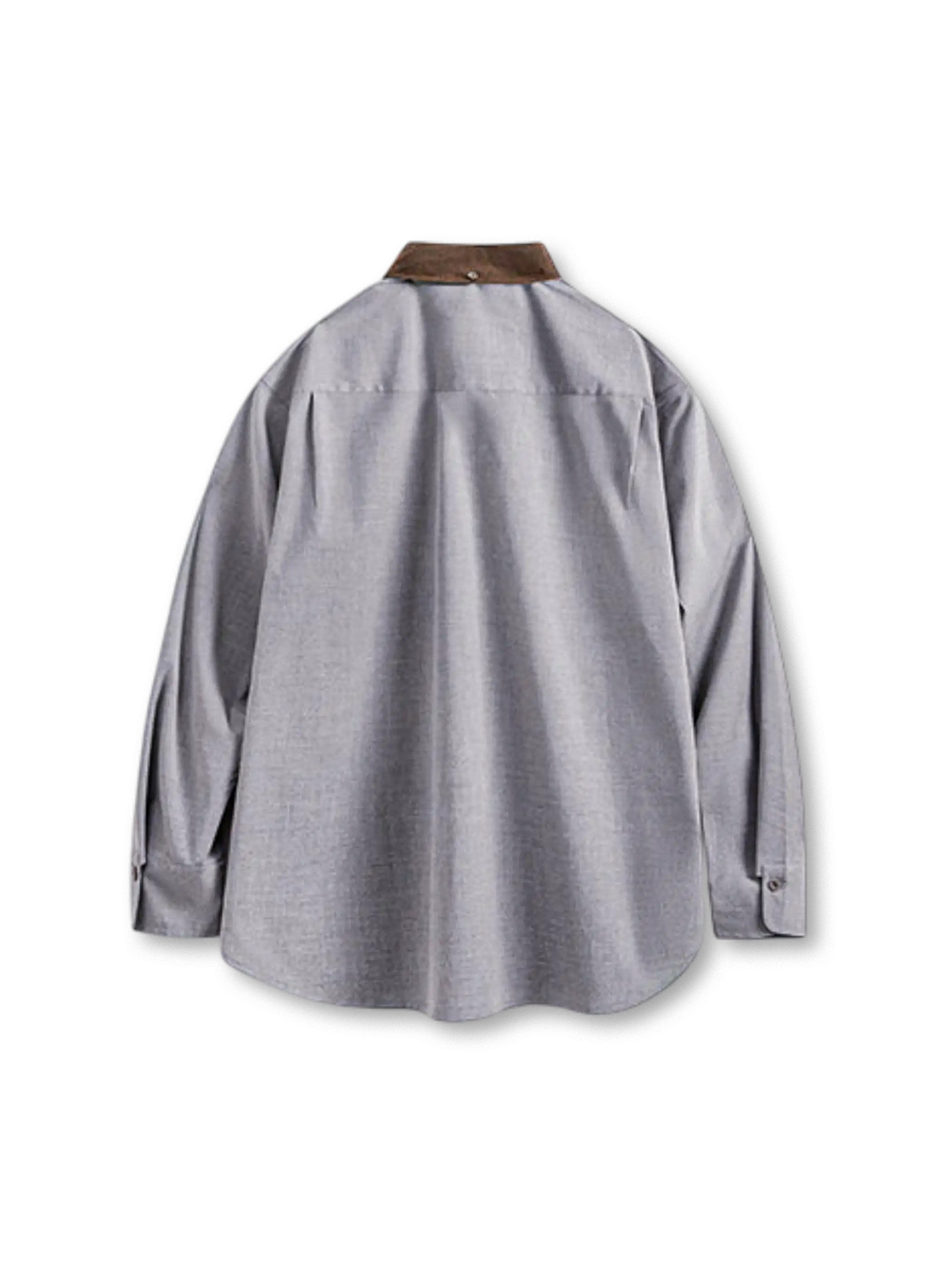 コーデュロイの切替襟と低彩度グレーの面で、品の良さと扱いやすさを両立した長袖シャツです。