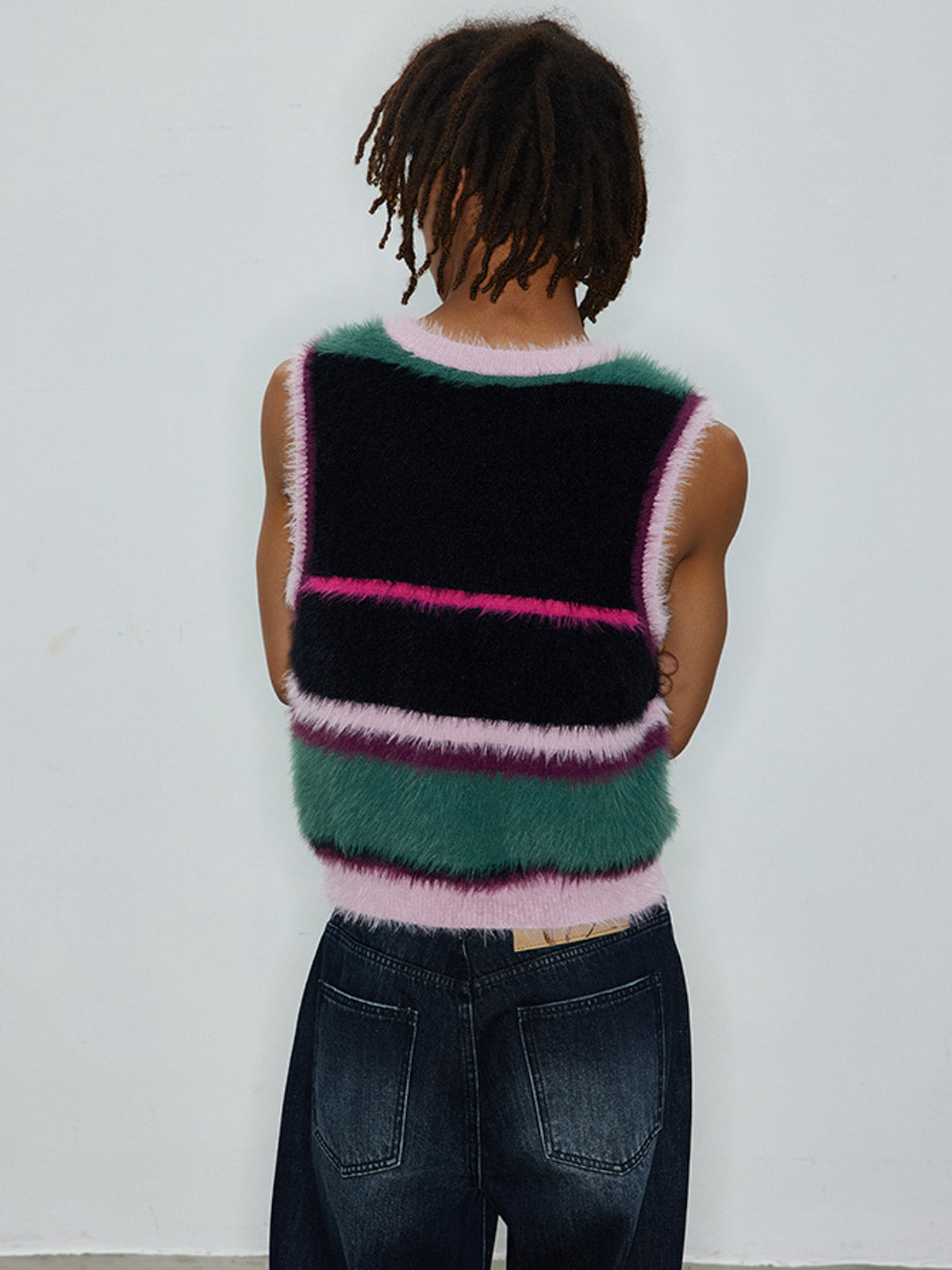 このフェイクミンクベストは、カラーブロックストライプデザインで、柔らかく快適な肌触りが特徴です。肌に優しく、チクチクしないため、寒い冬から春夏まで、さまざまな季節に対応します。冬には暖かいインナーとして、春夏にはスタイルアップのためのアウターとして活用できます。Vネックデザインがエレガントでモダンな印象を与え、このベストを欠かせないファッションアイテムにしています。
