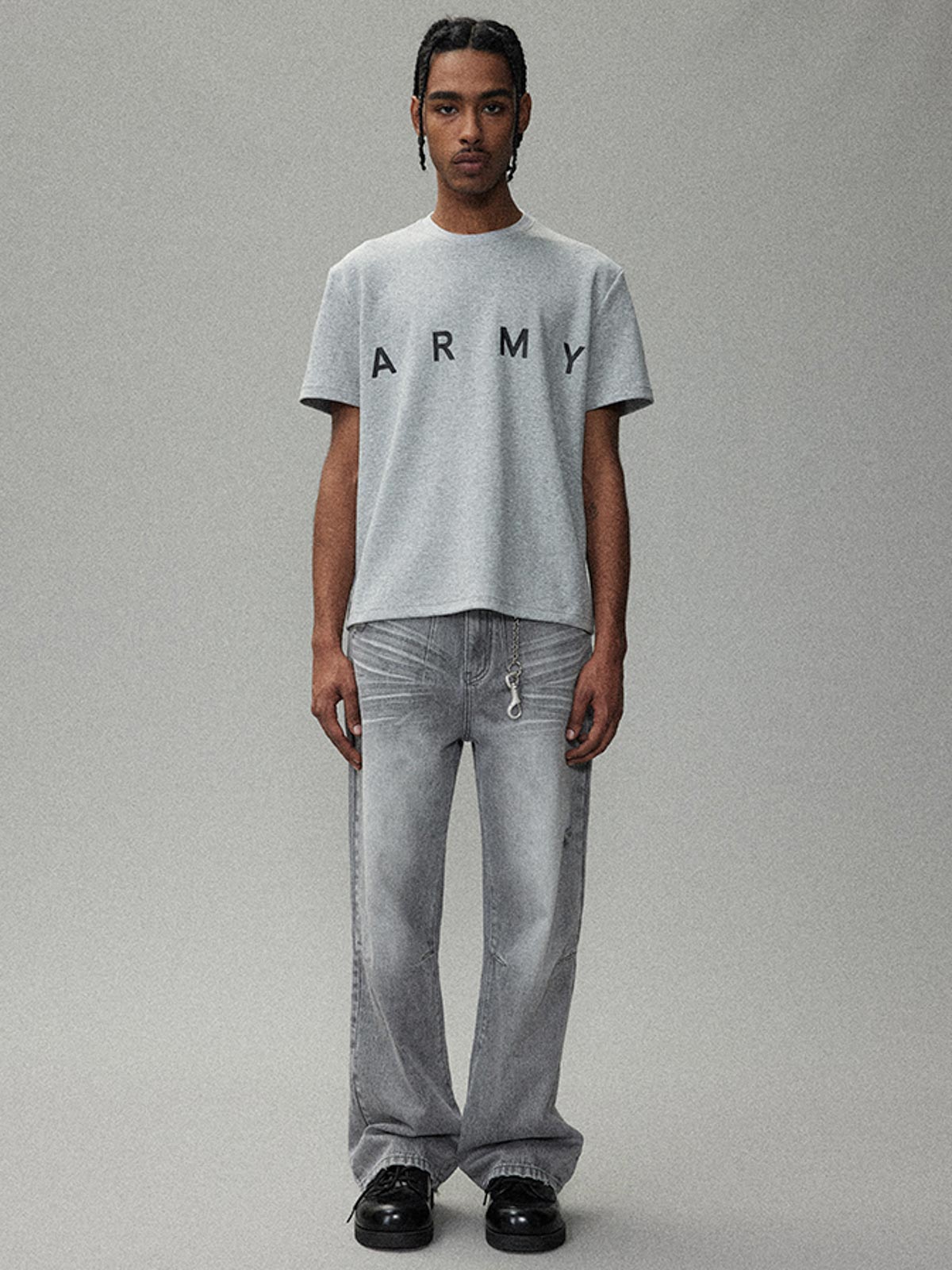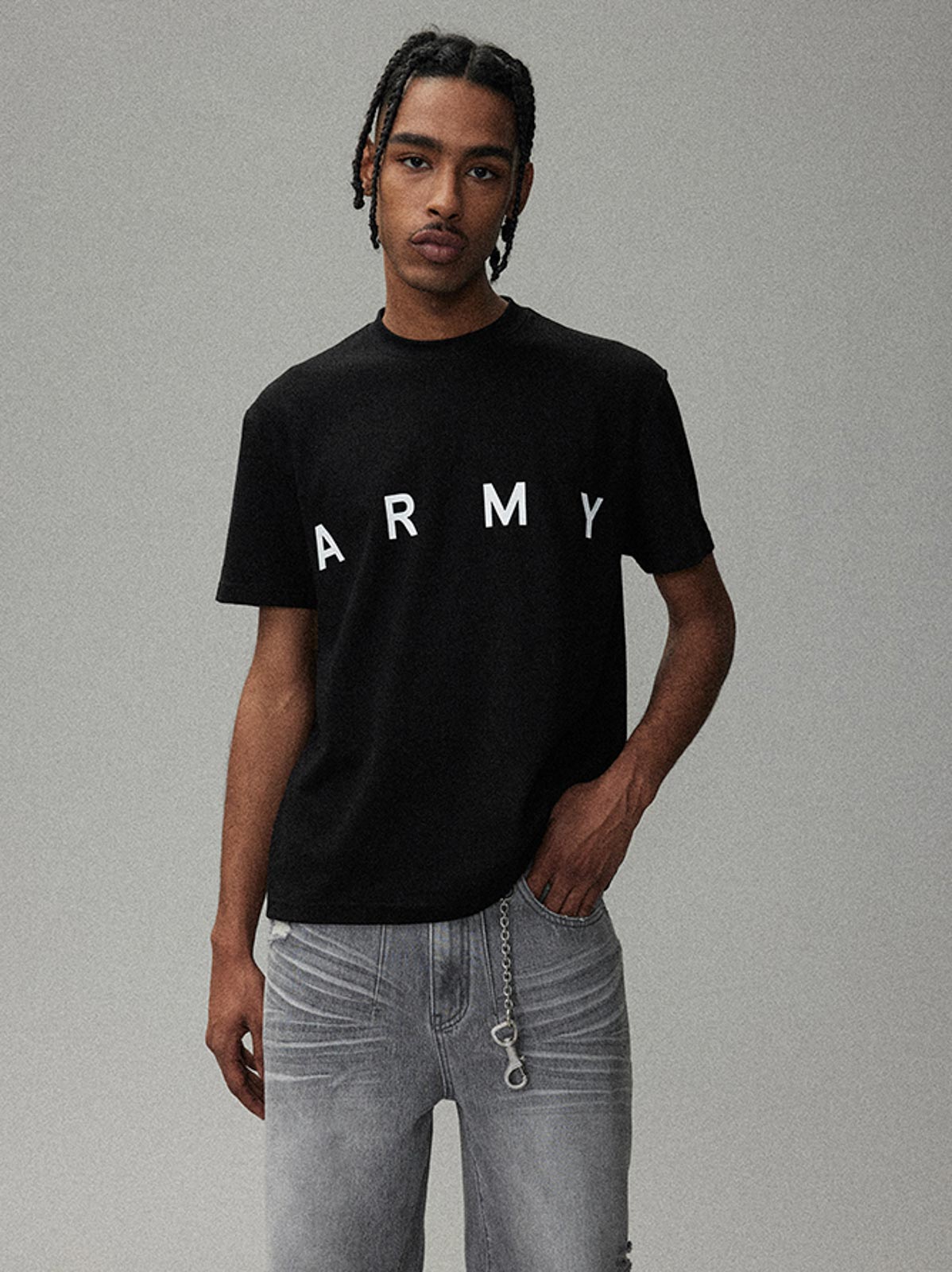 ARMYロゴデザイン、ルーズで快適、日常通勤やストリートスタイルに最適。