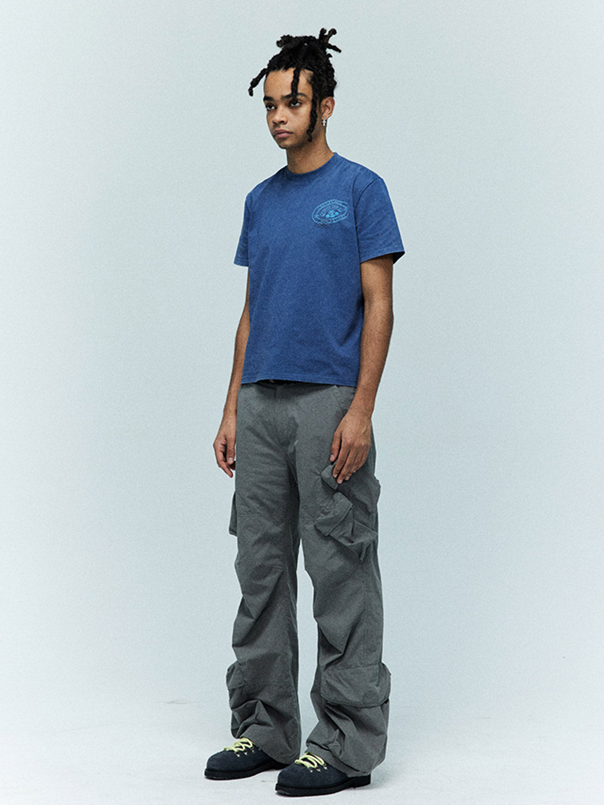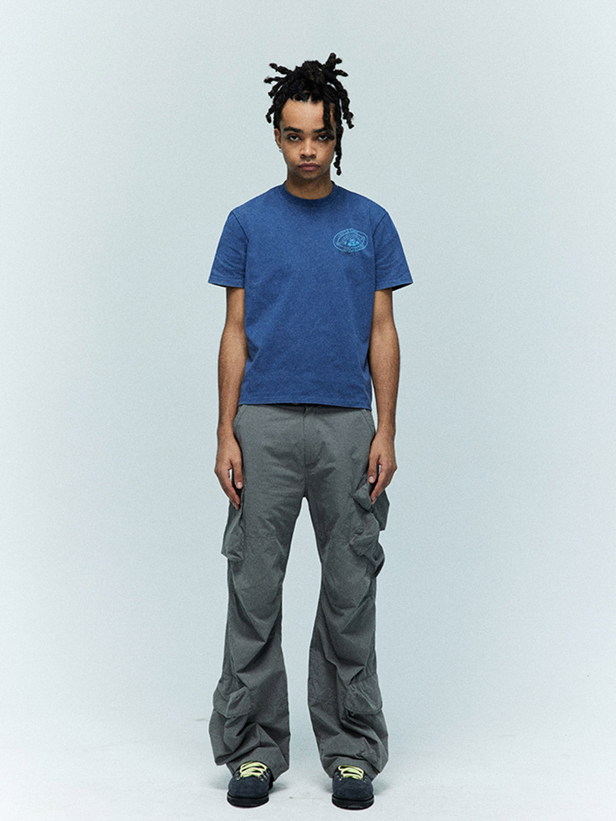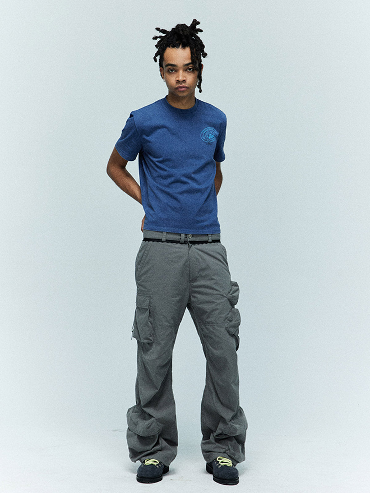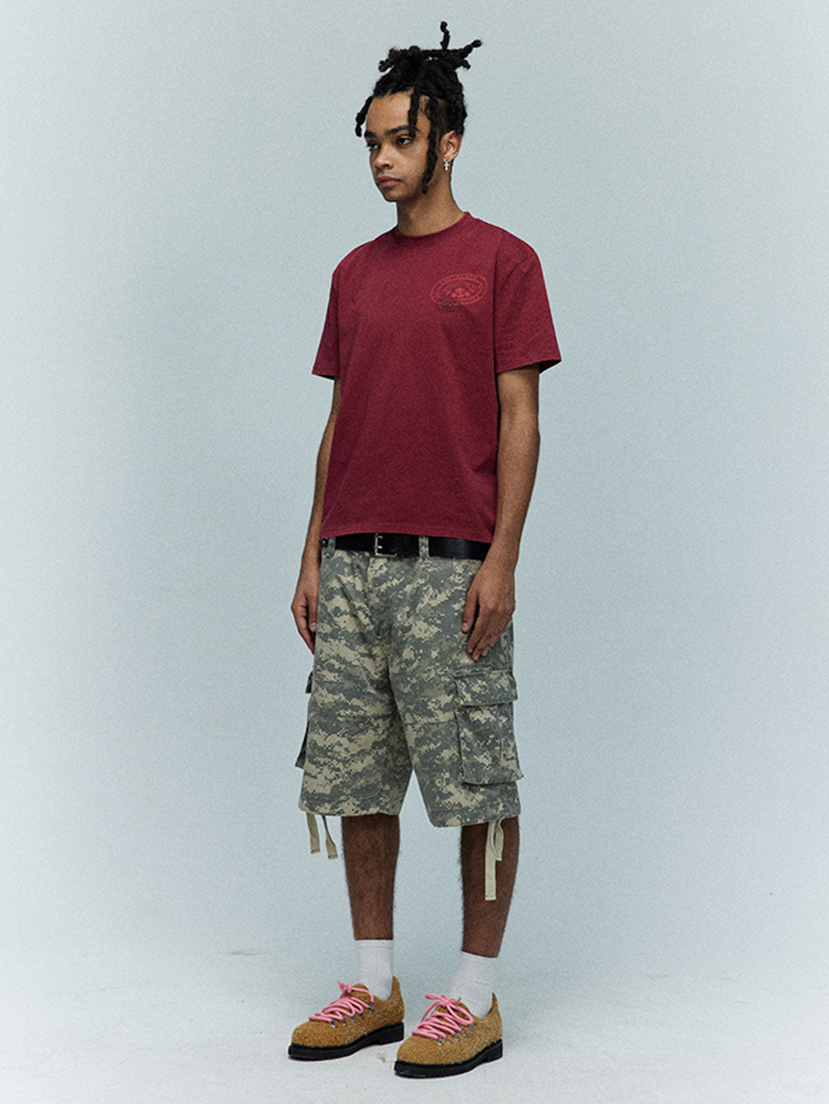 このTシャツは、260gのコットンニット生地を使用しており、滑らかでしなやか、しっかりとした形状でシワになりにくく、お手入れが簡単です。ベーシックなボックスフィットで、通勤や日常の着用に適しています。シルクスクリーン印刷技術を使用しており、プリントが剥がれにくいです。正肩カッティングで肩幅が広く見えます。エンブレムと重なった文字のプリントデザインが、独特のアメリカンストリートスタイルを演出します。特にジーンズやワークパンツと合わせやすく、カジュアルかつスタイリッシュなスタイルを提供します。夏のラウンドネック半袖として理想的な選択です。