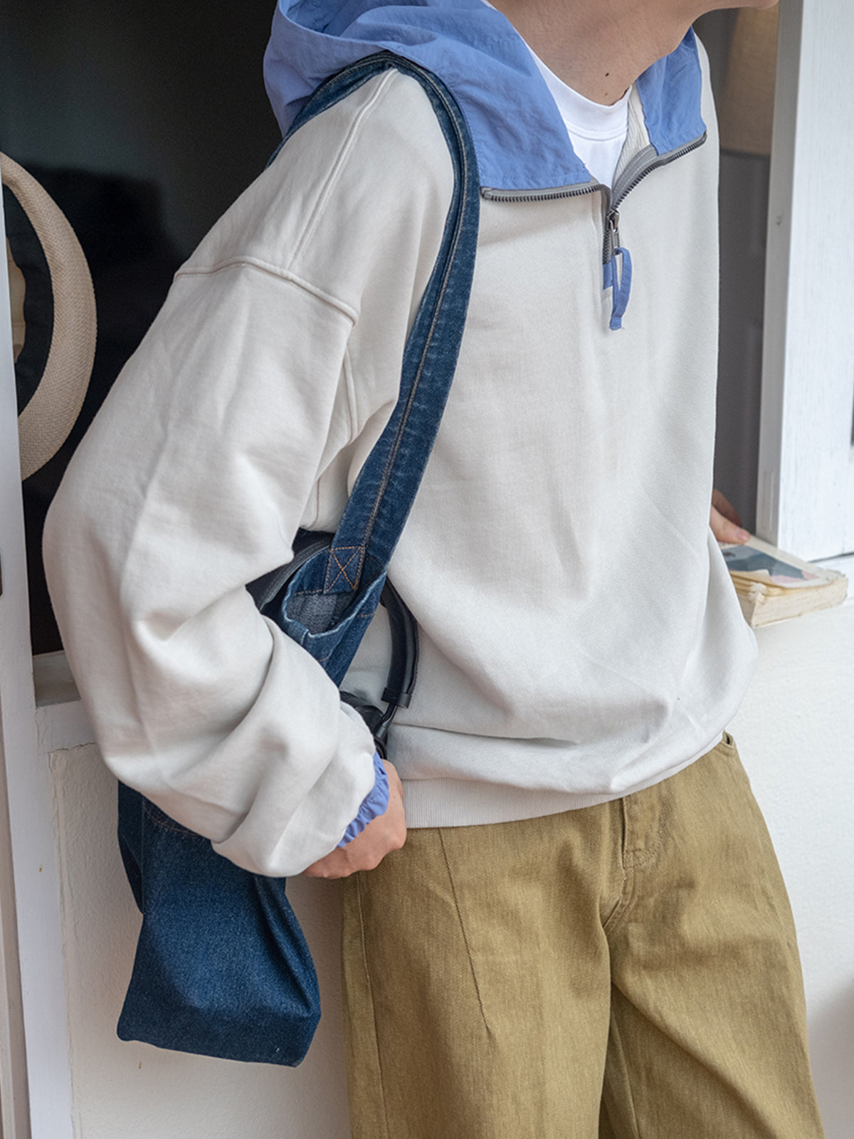 柔らかなループ生地とナイロンのコンビネーションで、クリーム系の爽やかカラーとルーズな着心地を実現。