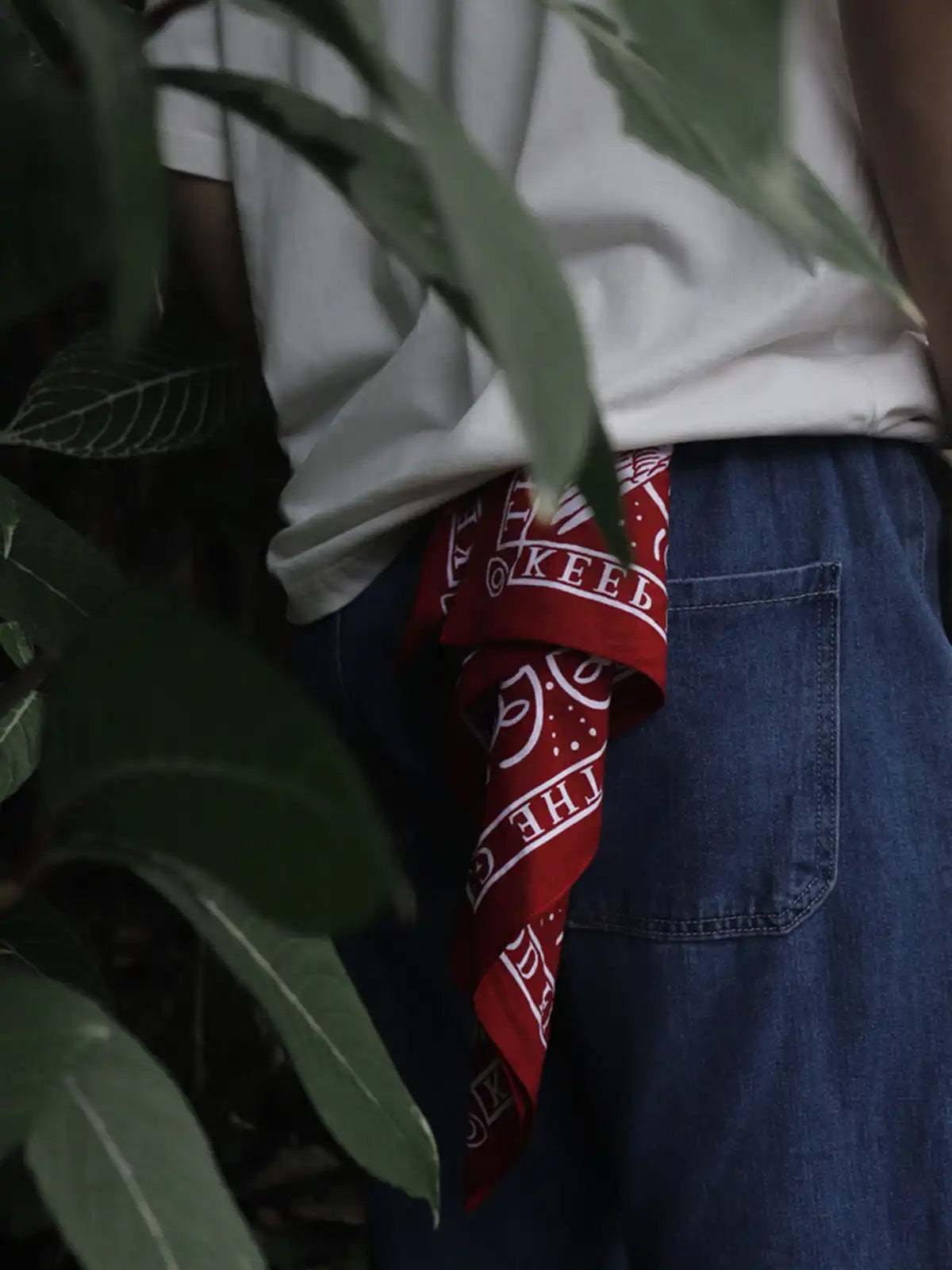 アメカジやワークスタイルにも使いやすい、汎用性の高いコットン製バンダナ。