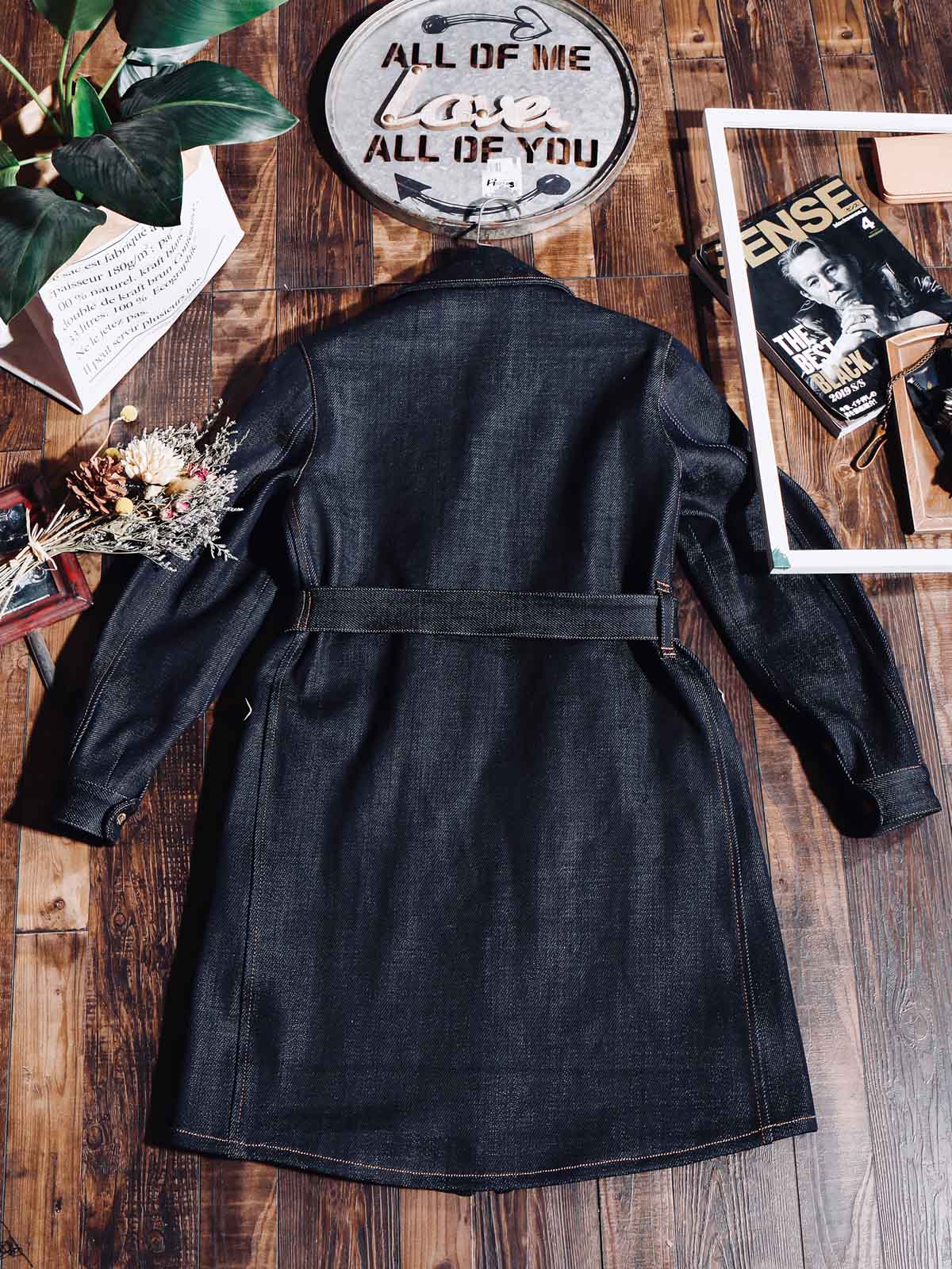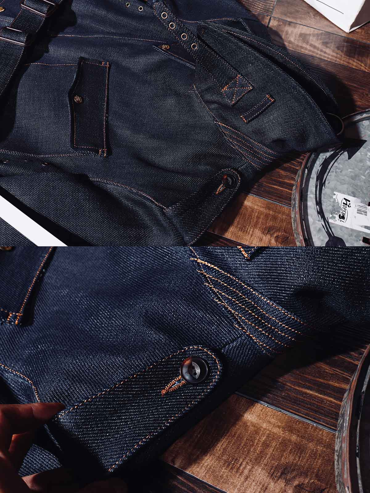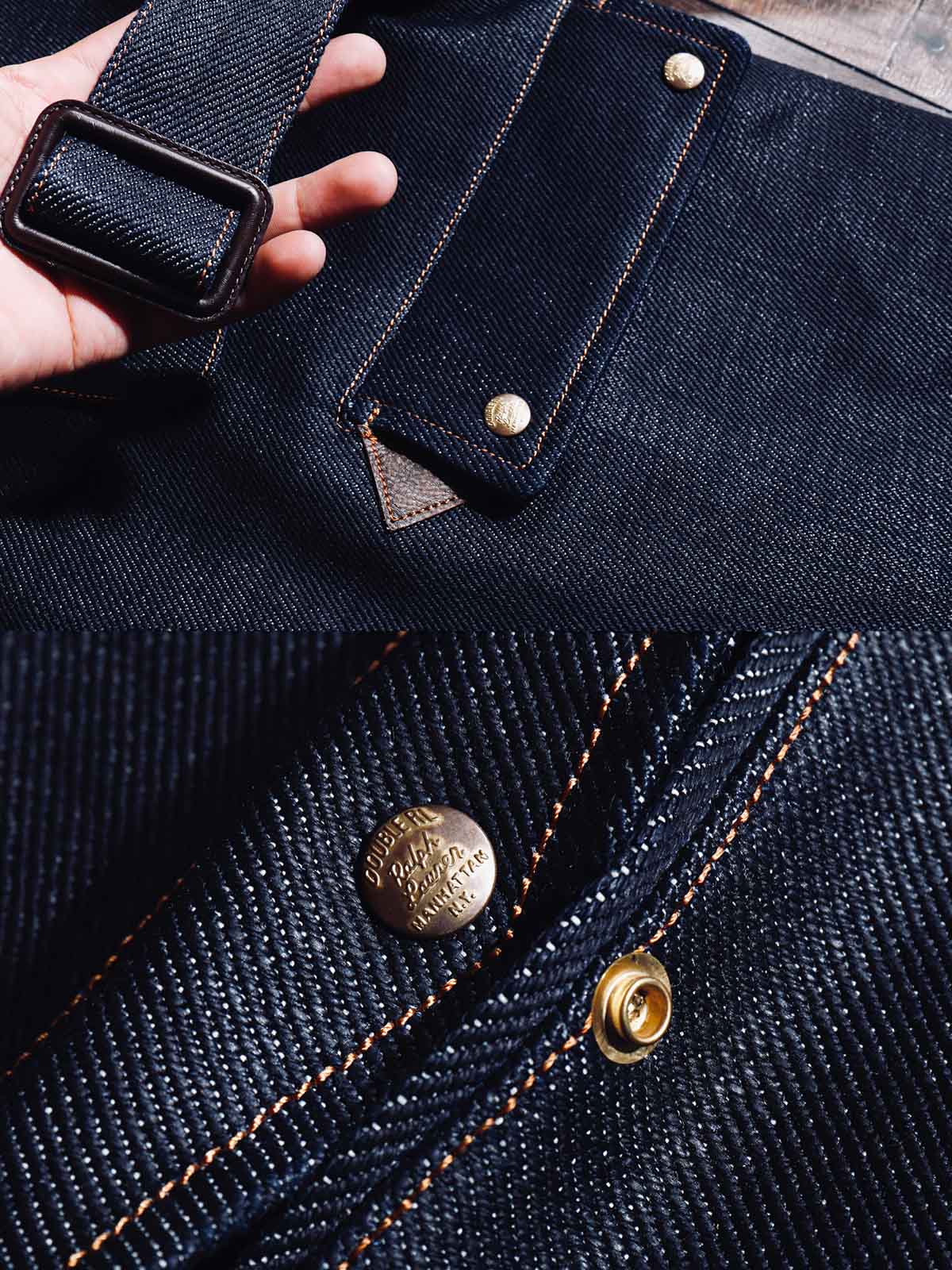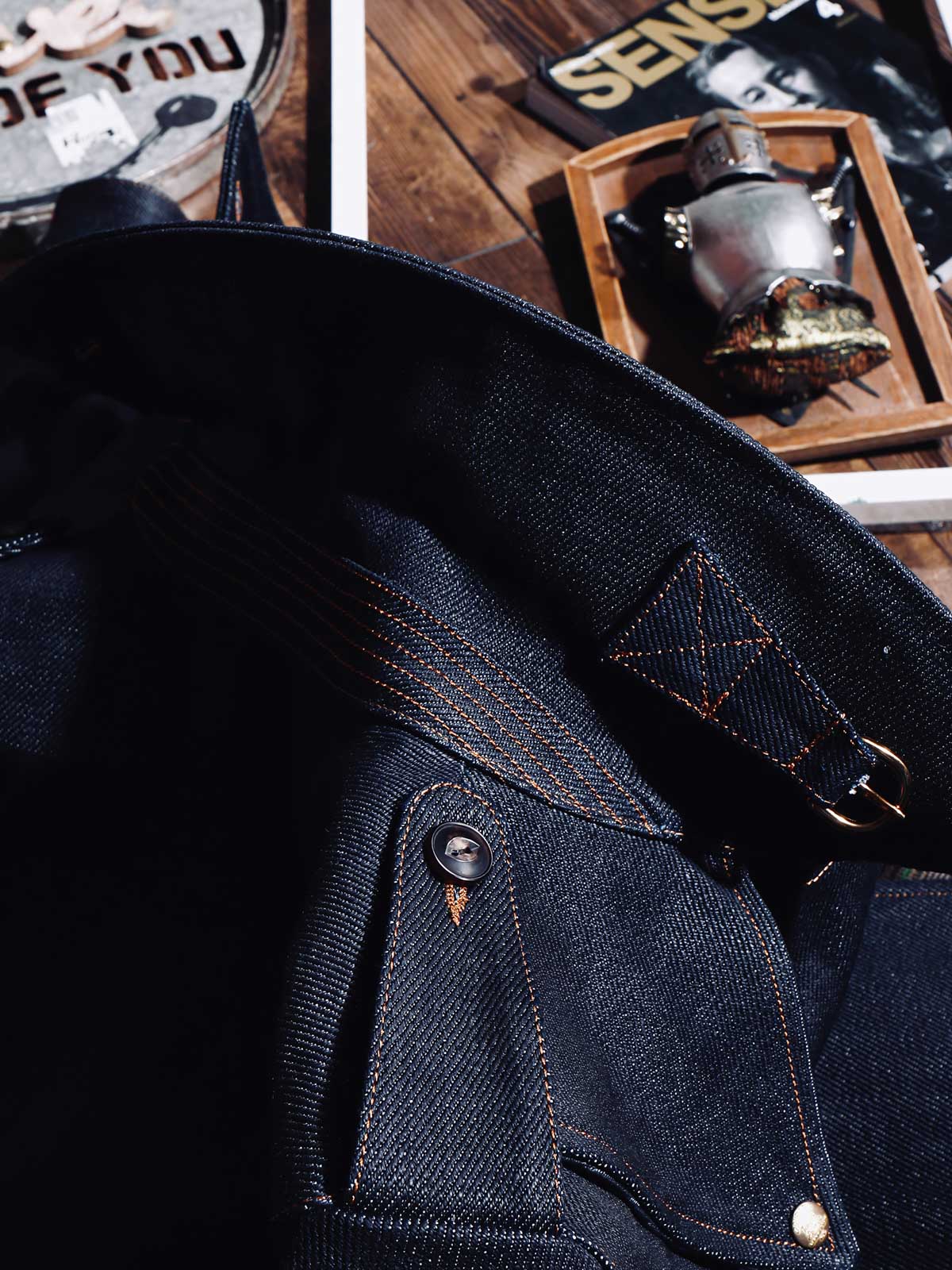 22オンスのセルビッジデニムは、高密度で厚手の生地で、冬の着用に非常に適しています。この生地は保温性があり、着用するほどにユーザーの体型に合わせて形成され、ユニークな個人的な着用体験を提供します。独特のセルビッジエッジは、コートに洗練されたディテールを加えます。