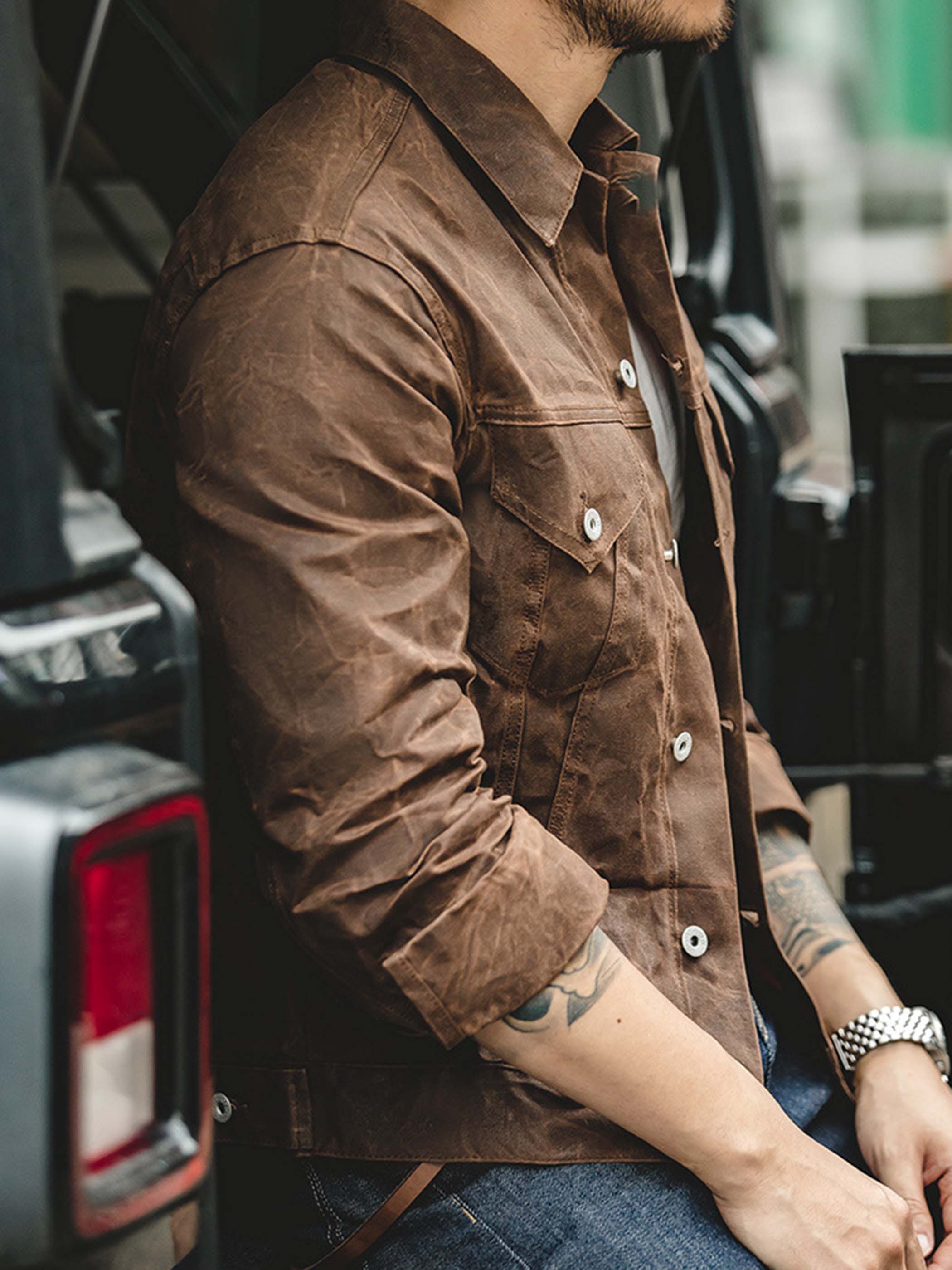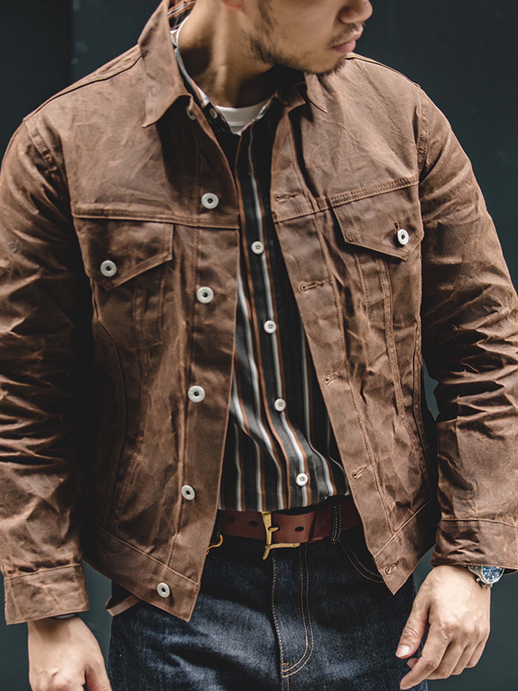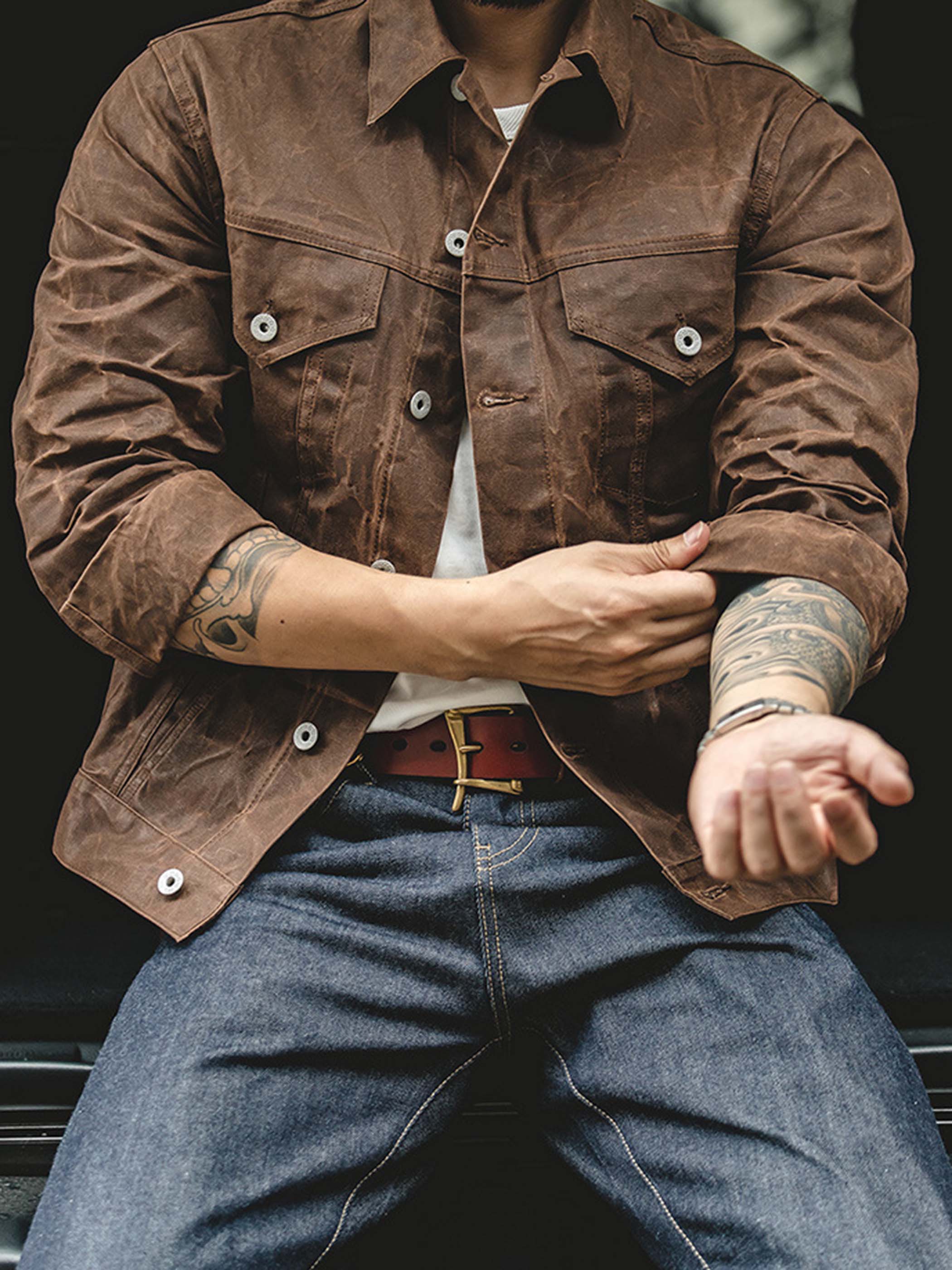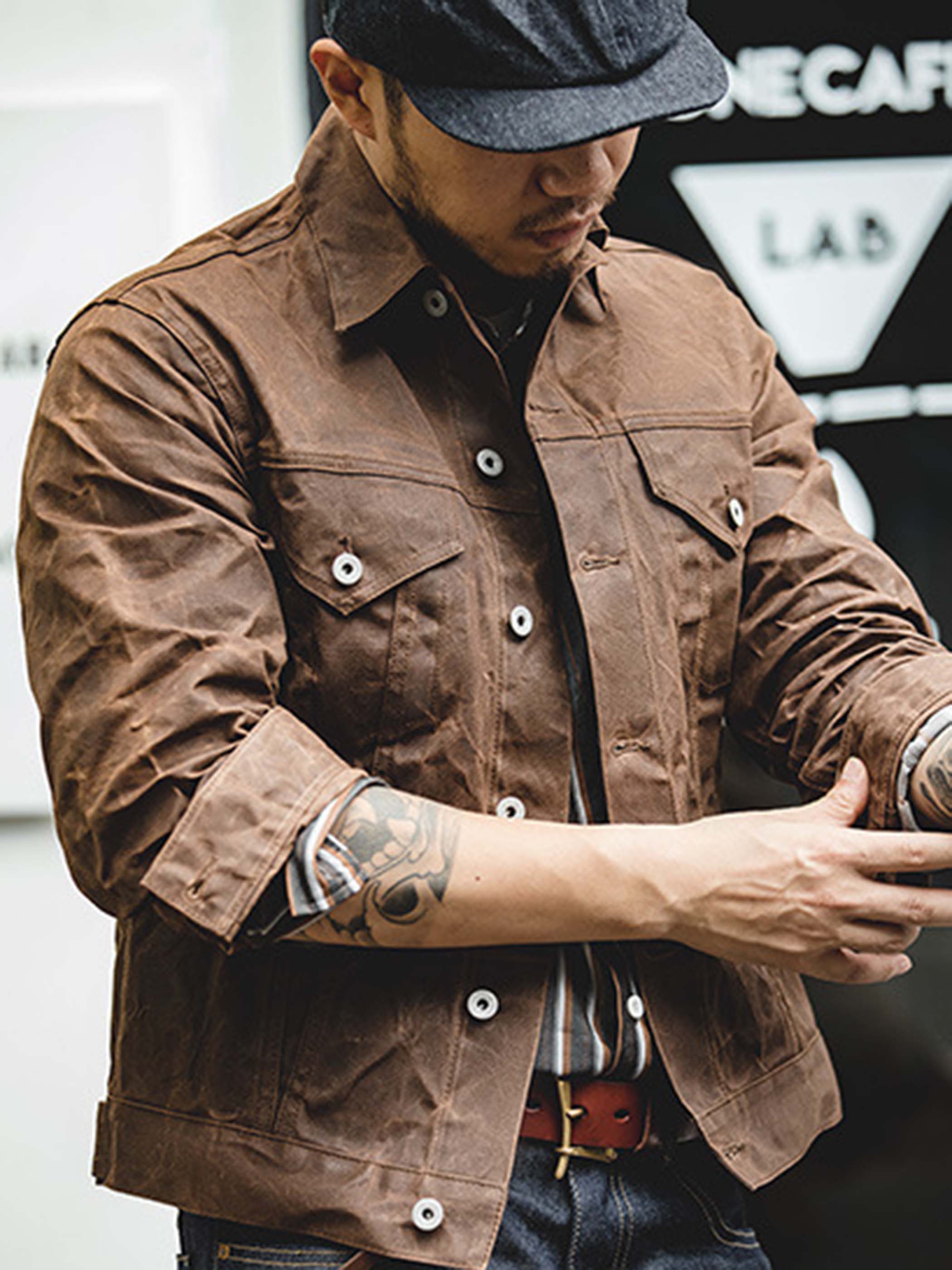 クラシックなオイルドキャンバス仕様、使い込むほどに風合いが増す本格ワークジャケット。