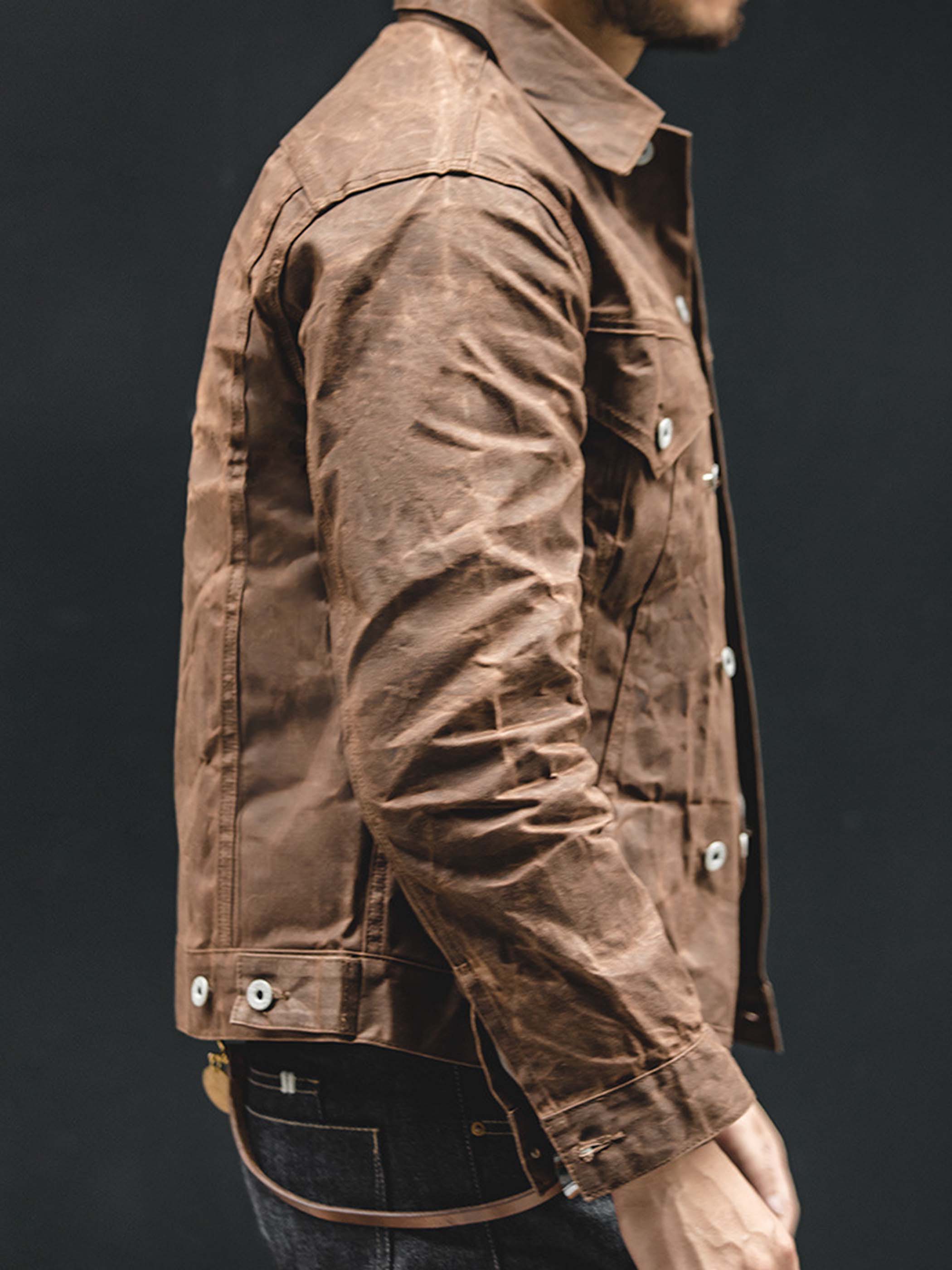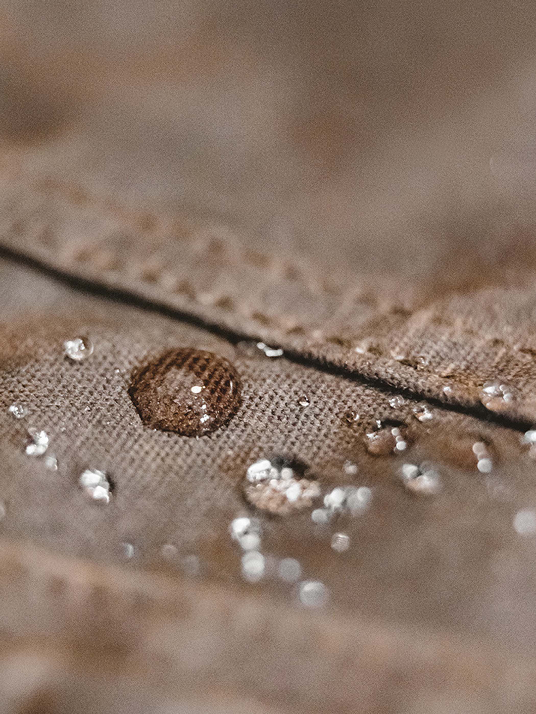 高密度の100%コットンキャンバス生地を採用し、伝統的なオイルド加工を施すことで、防風・防水性を向上。タフな環境にも対応する耐久性と、使い込むほどに深まるヴィンテージの風合いが魅力。
