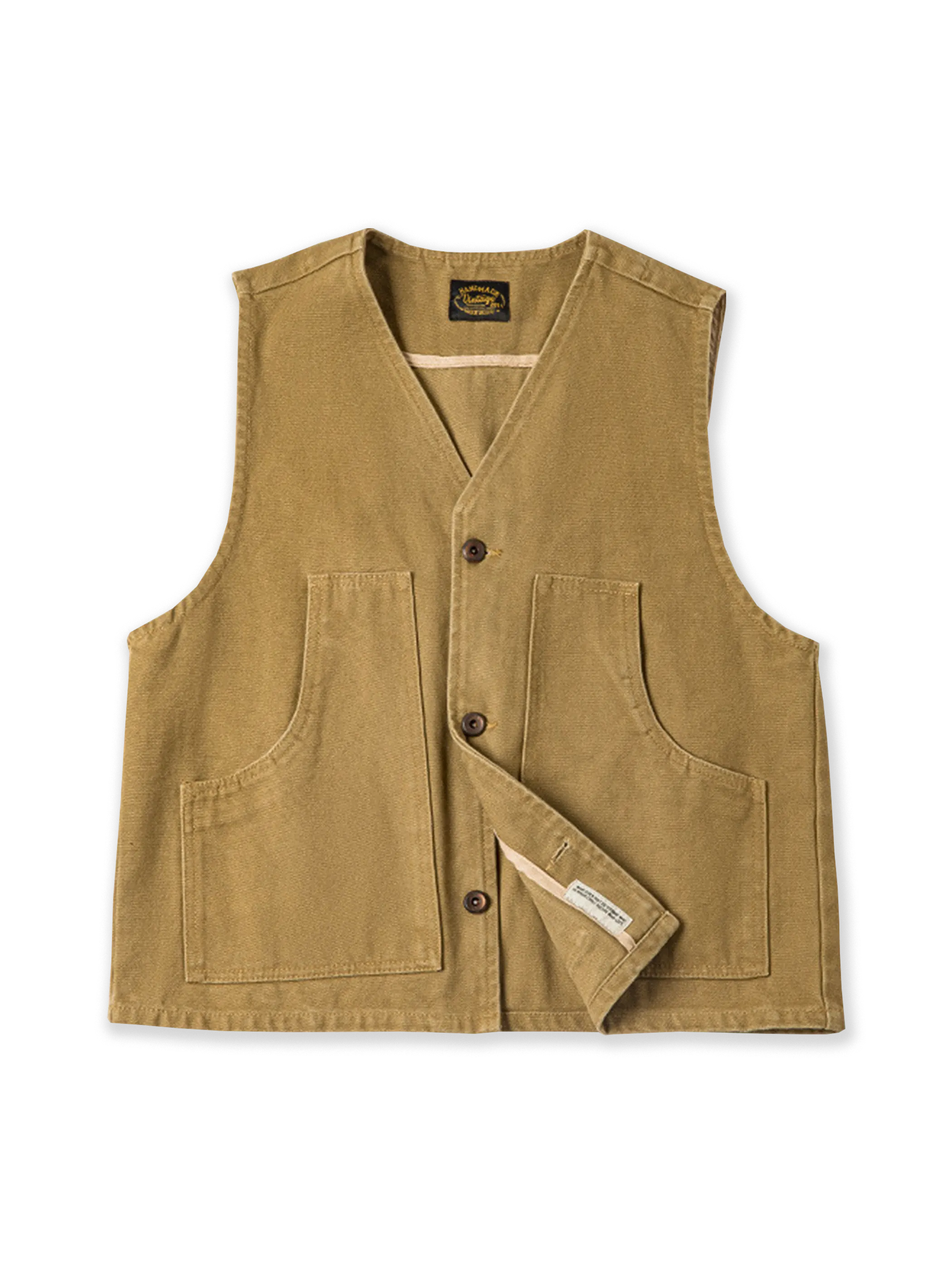 耐久性の高いワークファブリックを使用し、ラギッドなアメリカンヴィンテージテイストを演出。ツインレイヤーバックデザイン(亀背構造)を採用し、耐久性を強化しながら、立体的なシルエットを実現。コントラストの効いたパイピングディテールがヴィジュアルの奥行きをプラスし、こなれた印象に。クラシックなワークラベル&カスタムジンク合金ボタンを搭載し、ヴィンテージ感漂うディテールへのこだわりが感じられる。左右対称の大容量ポケットデザインにより、実用性と装飾性を兼ね備え、日常の収納力も確保。ジャケットの上に重ねるスタイルや、インナーとしての活用も可能で、さまざまなアメリカンヴィンテージ&ワークスタイルにマッチ。