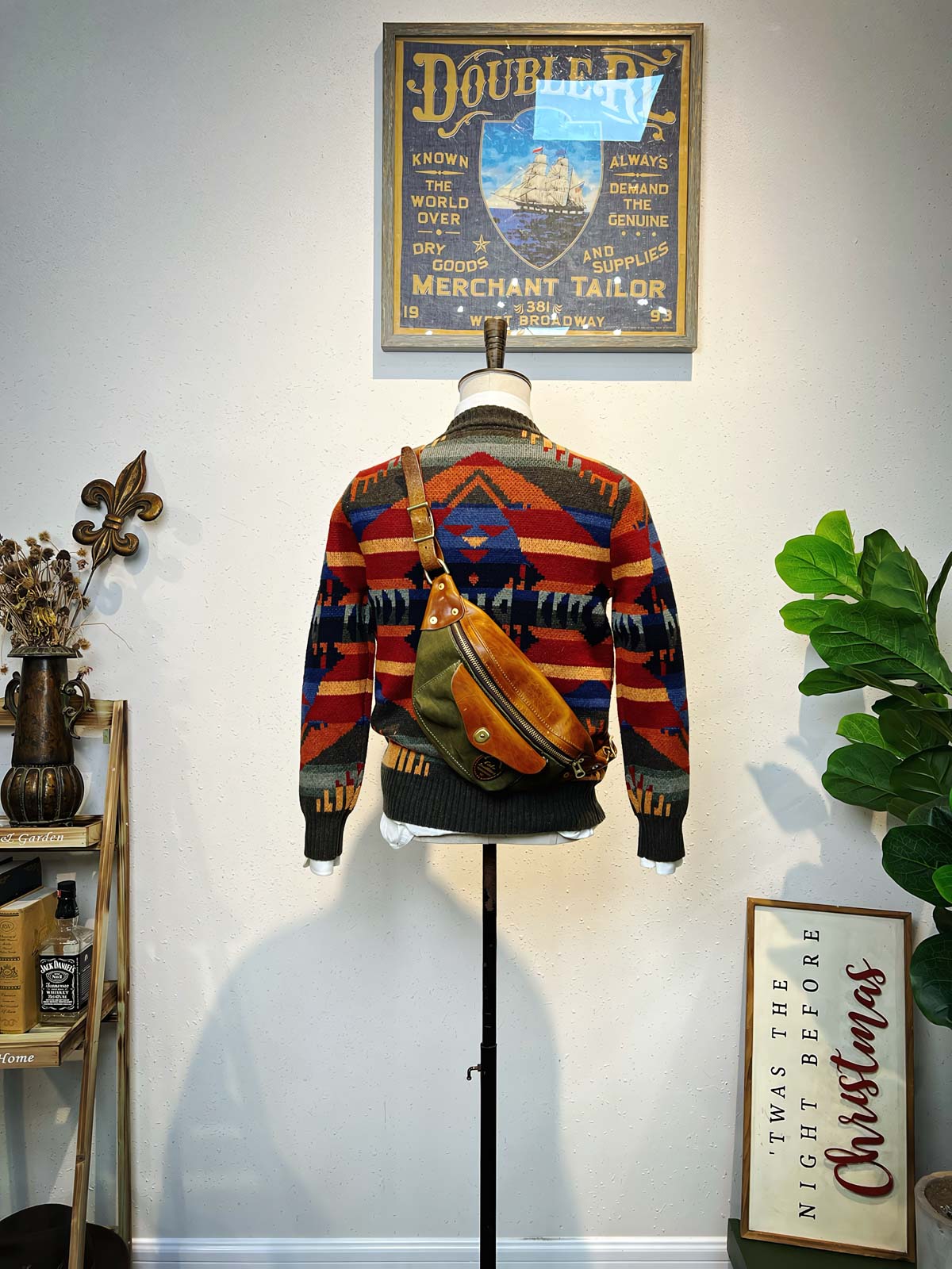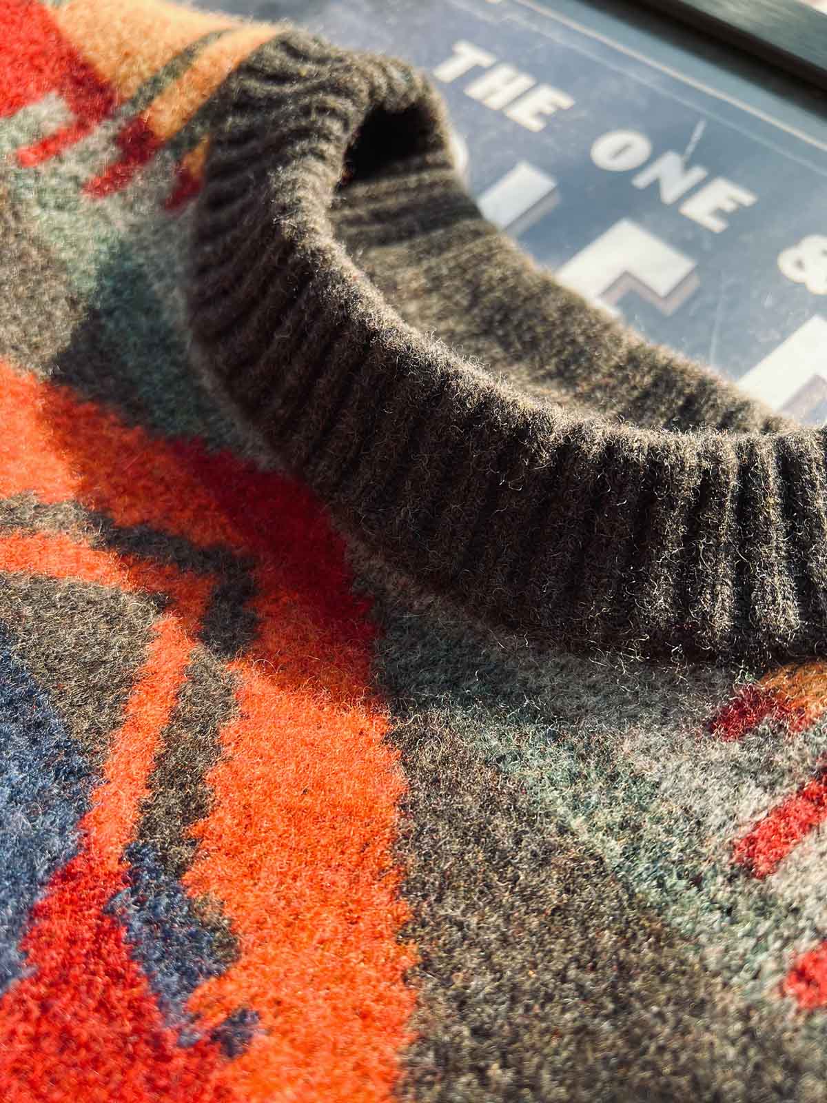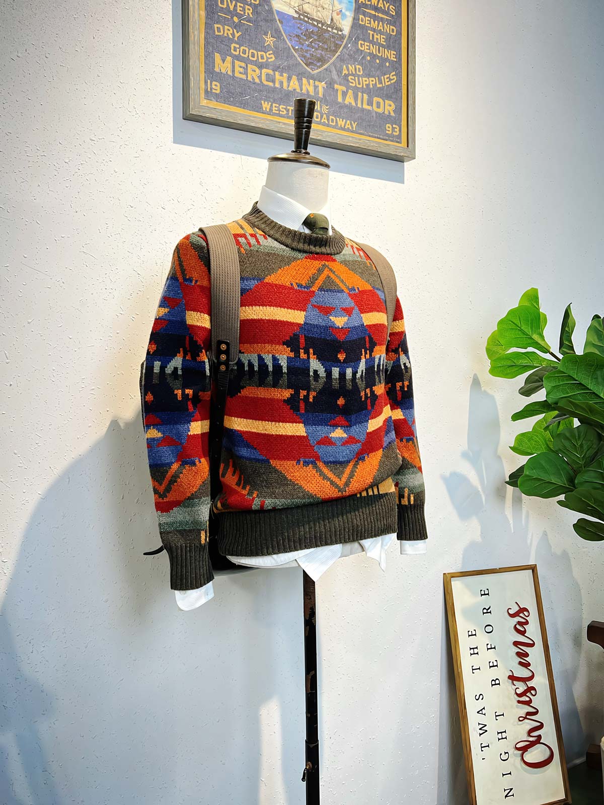 このウールセーターは、アメリカ南西部のナバホ族のトーテムからインスピレーションを得ています。そのユニークな幾何学模様と鮮やかな色の組み合わせは、この先住民族の文化芸術を反映しています。