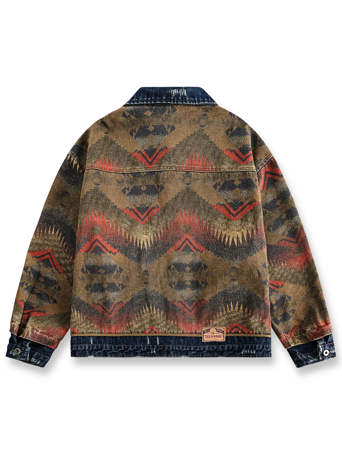 クラシックなアメリカンワークスタイルとウェスタンジャカードデザインの融合、レトロとトレンドが一体となった一着。