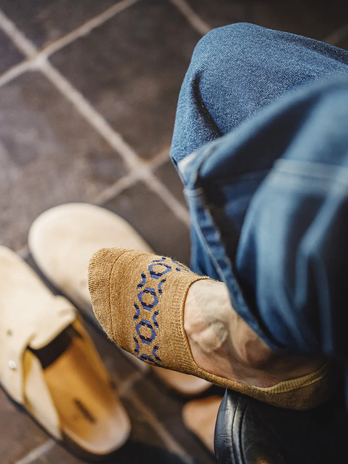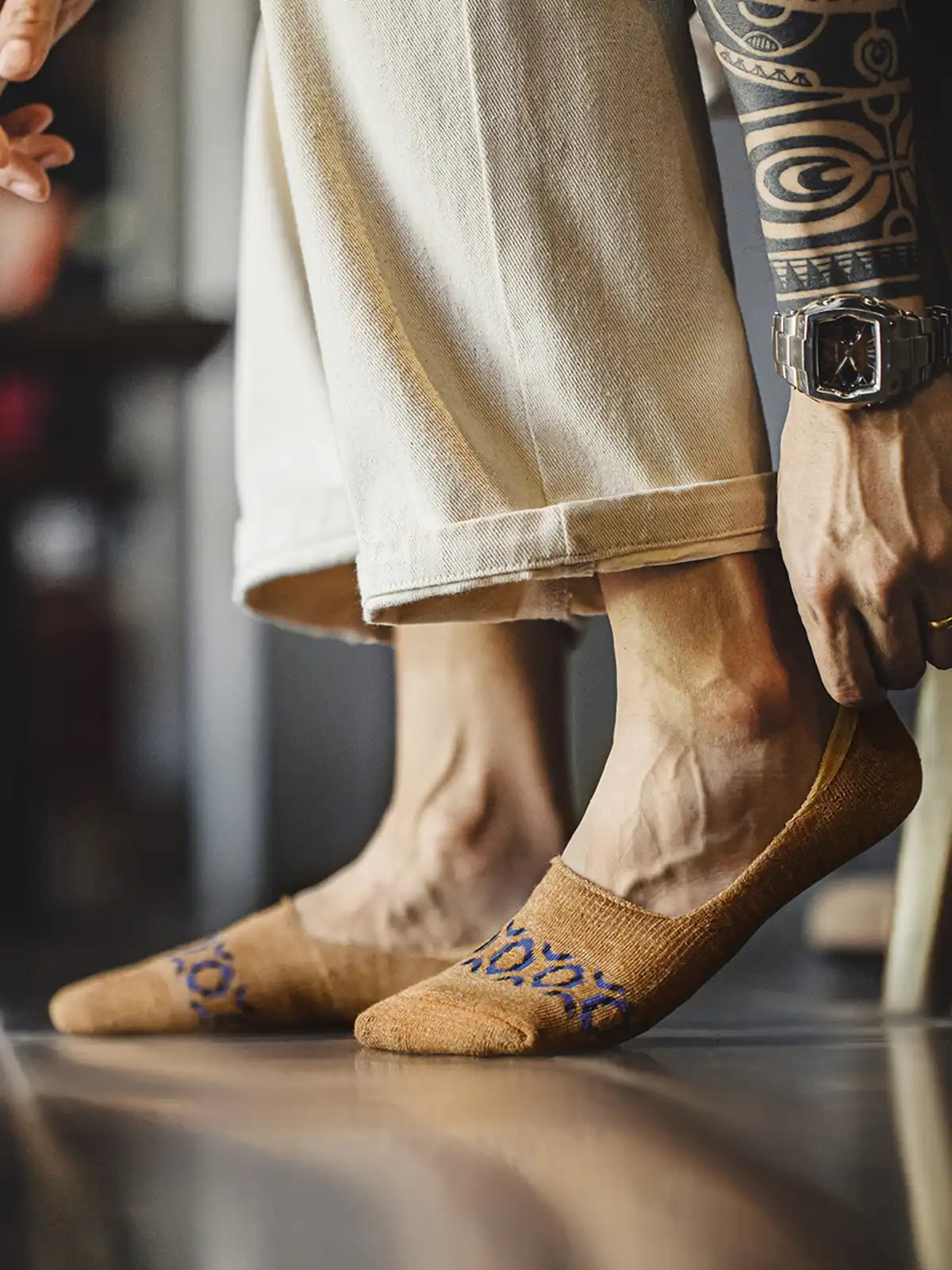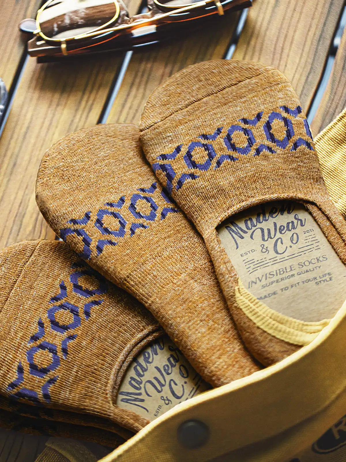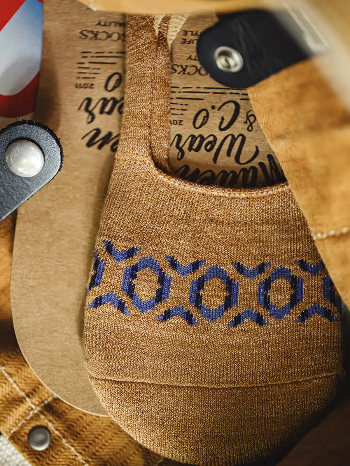 ナバホ族モチーフをあしらった浅口デザイン、シリコーン滑り止め付きの2足組インビジブルソックス。