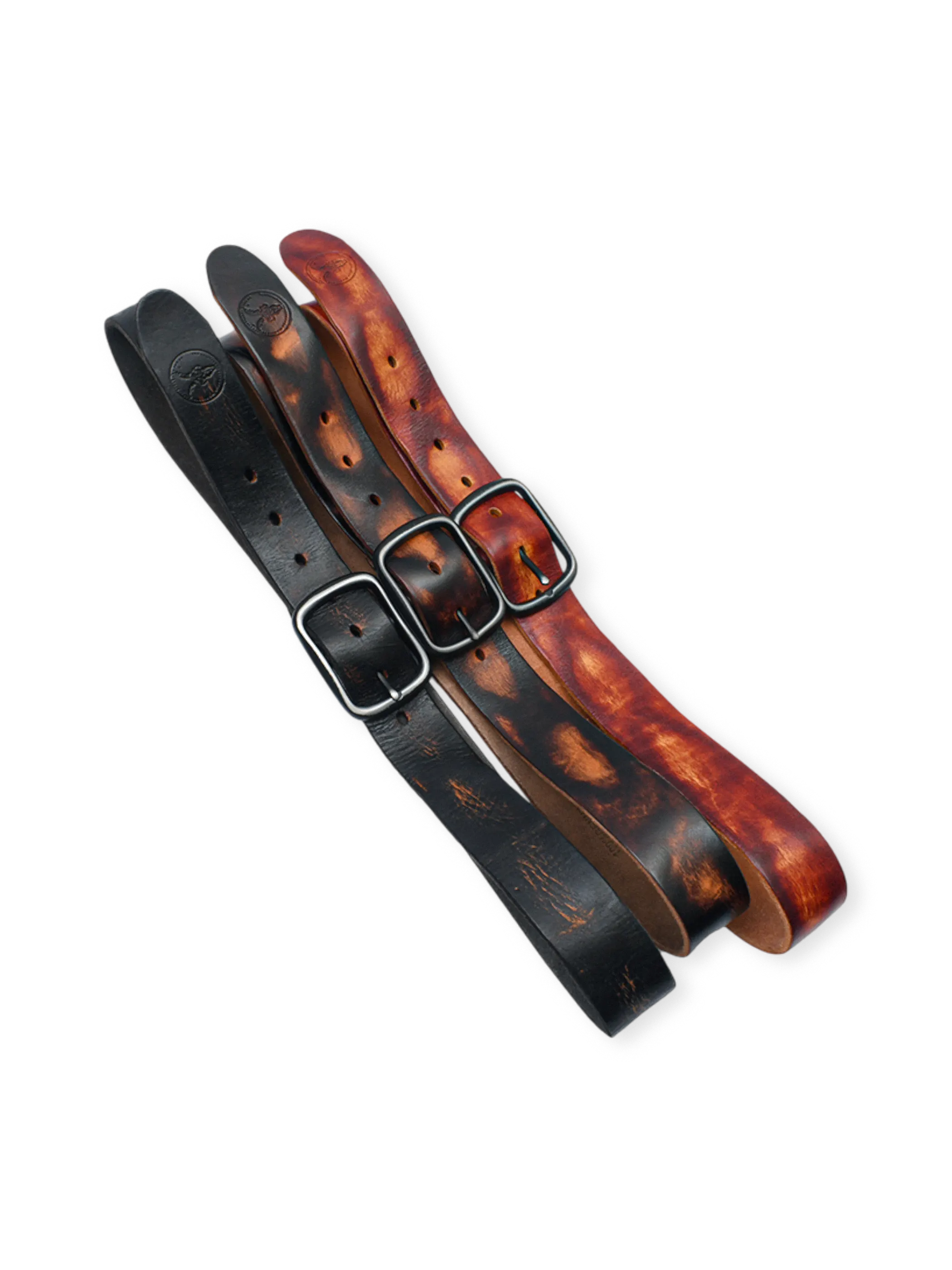 本ベルトは頭層植鞣牛革を使用し、ウォッシュ加工により独自のヴィンテージな質感を実現。幅3.4cmのデザインは視覚的に重厚かつスタイリッシュな印象を与え、各種長さの選択が可能なため、さまざまな体型にフィットします。クラシックなスナップバックルと丁寧なステッチ加工が、英国風のヴィンテージスタイルとアメリカンヴィンテージのエッセンスを融合し、デニムやワークパンツなどカジュアルなアイテムと合わせることで、硬派でありながら洗練されたコーディネートを演出します。