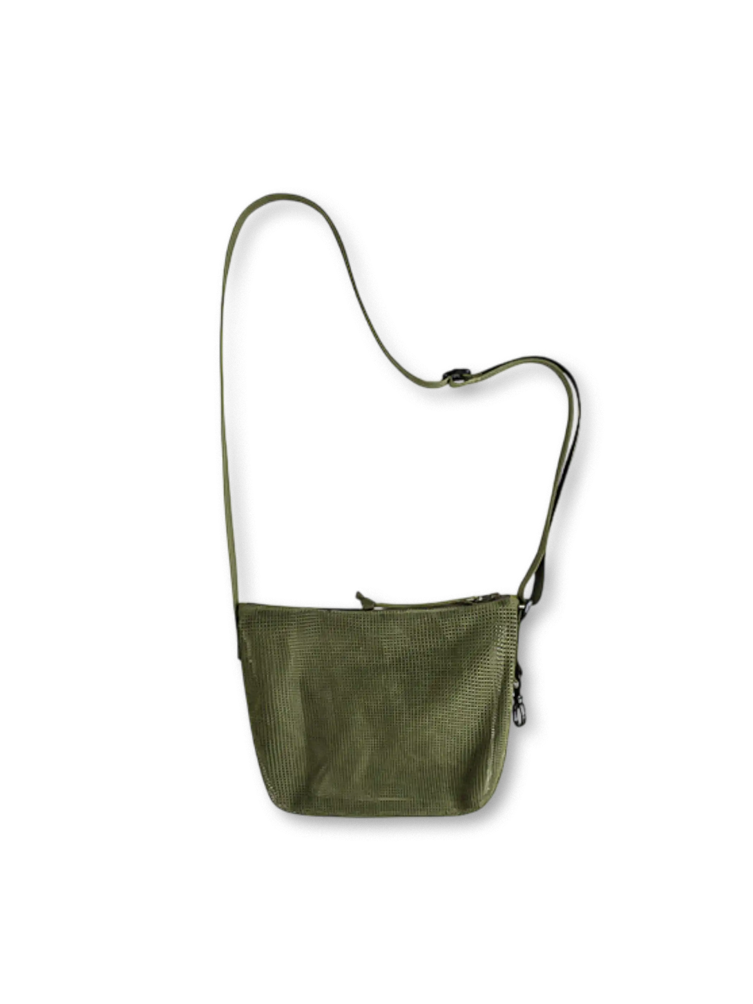 - デザイナーおすすめ:青古銅ジップと海軍式真鍮留め具が映えるタクティカルメッシュショルダーバッグは、ミリタリーテイストを洗練されたデザインに昇華しました。