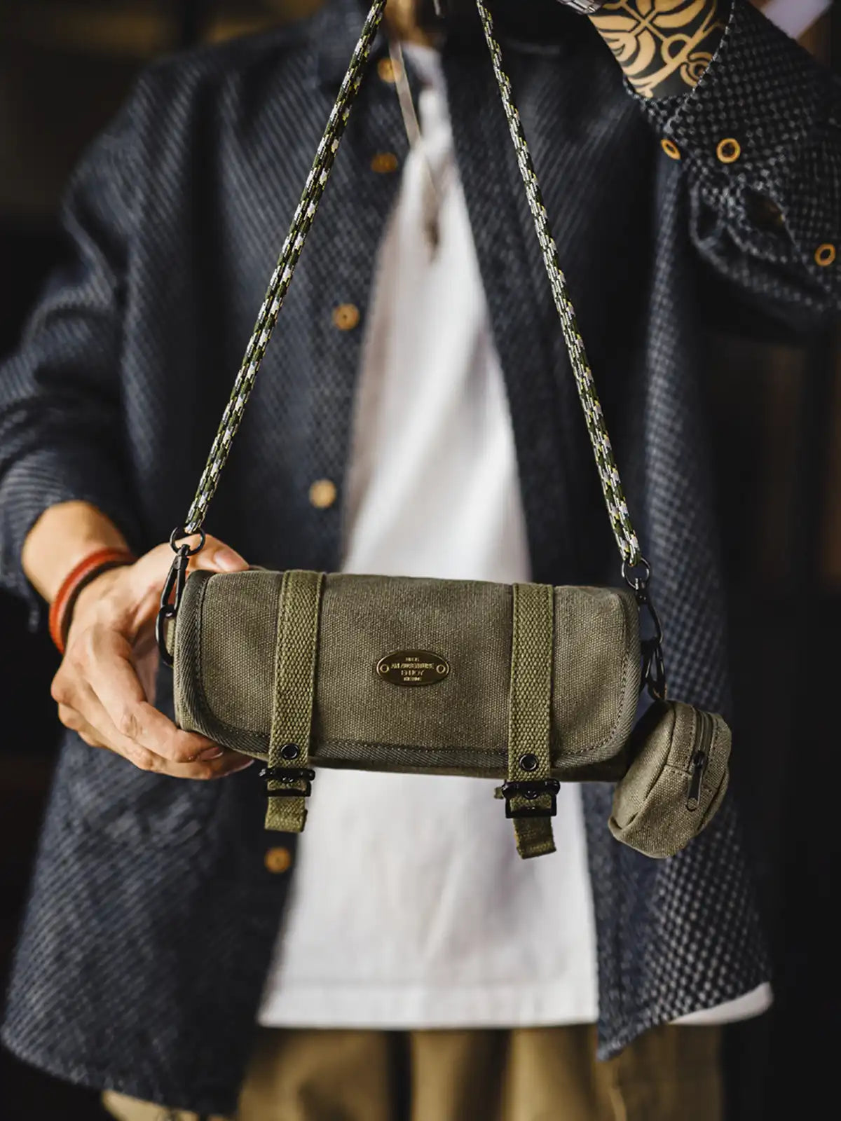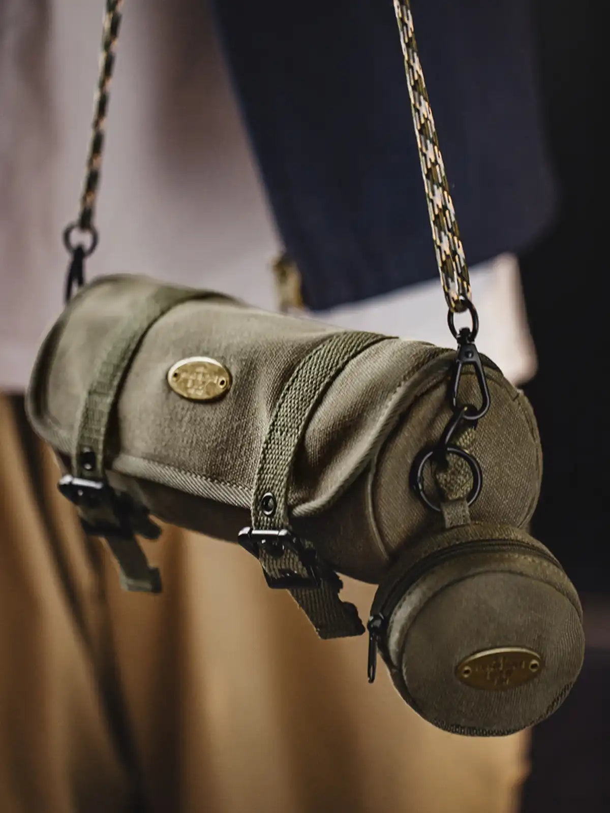 3世紀の歴史を持つ工具袋を現代風にアップデートした、機能美とヴィンテージ感が融合した丸型ショルダー。
