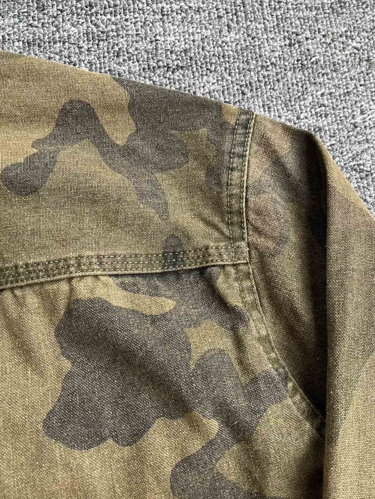 この迷彩ワークシャツは、100%コットン素材を使用し、ヴィンテージウォッシュ加工により柔らかな肌触りと自然なユーズド感を演出しています。迷彩柄がミリタリースタイルを強調し、アウトドアからデイリーカジュアルまで幅広く着用できる一着です。胸元には実用的なダブルポケットを備え、収納力とデザイン性を兼ね備えています。ルーズなシルエットがリラックス感を与え、デニムやワークパンツと合わせることで、簡単にヴィンテージスタイルを楽しむことができます。日常使いはもちろん、アウトドアシーンにも適した万能なシャツです。